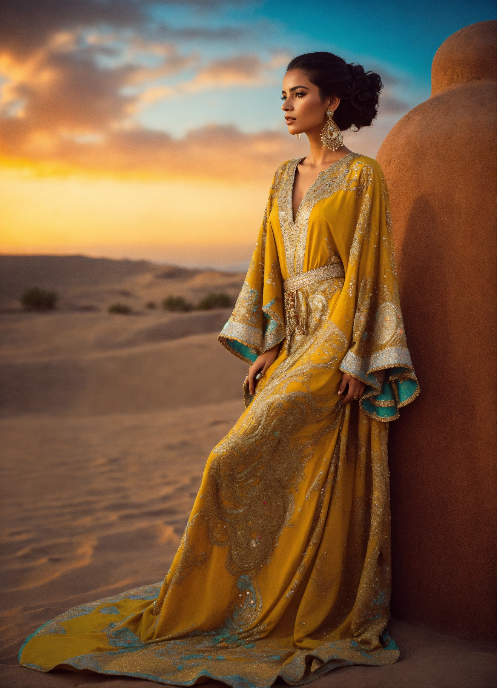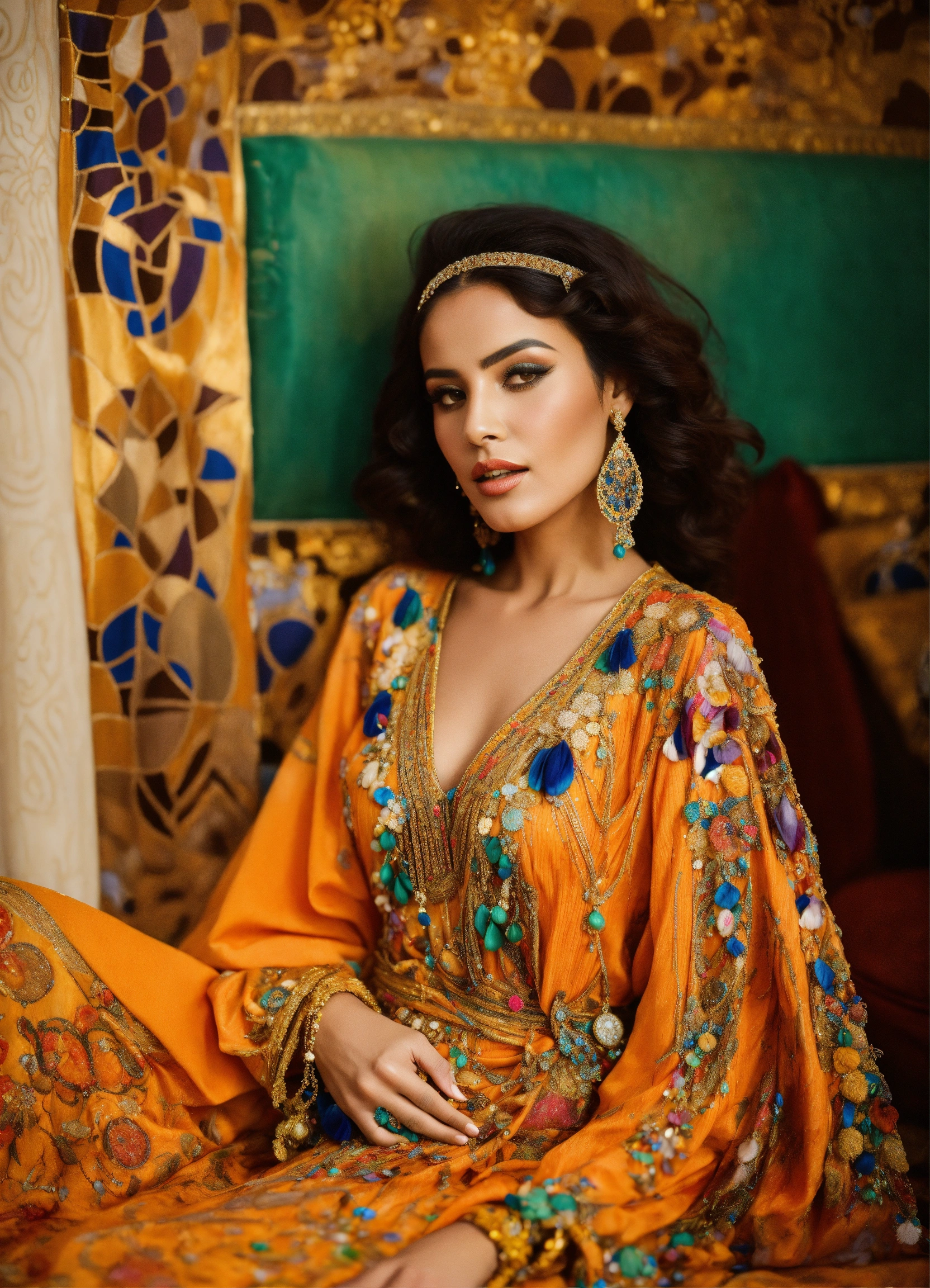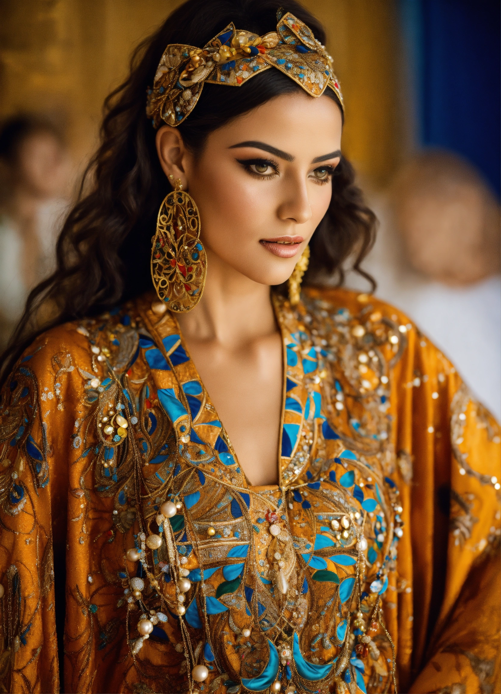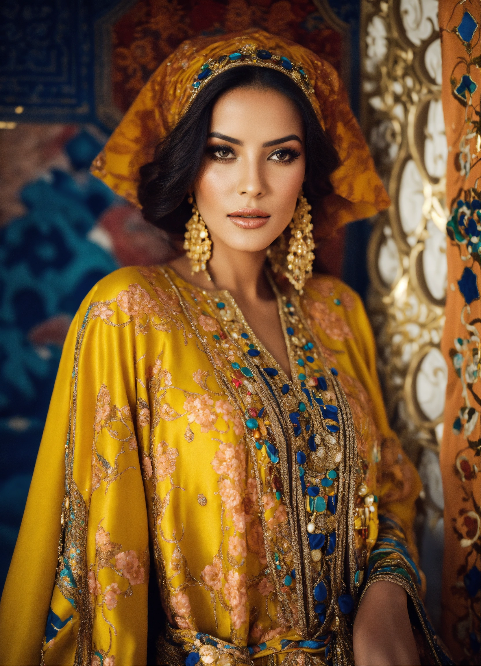 Beautiful morrocan women wearing kaftan haute couture