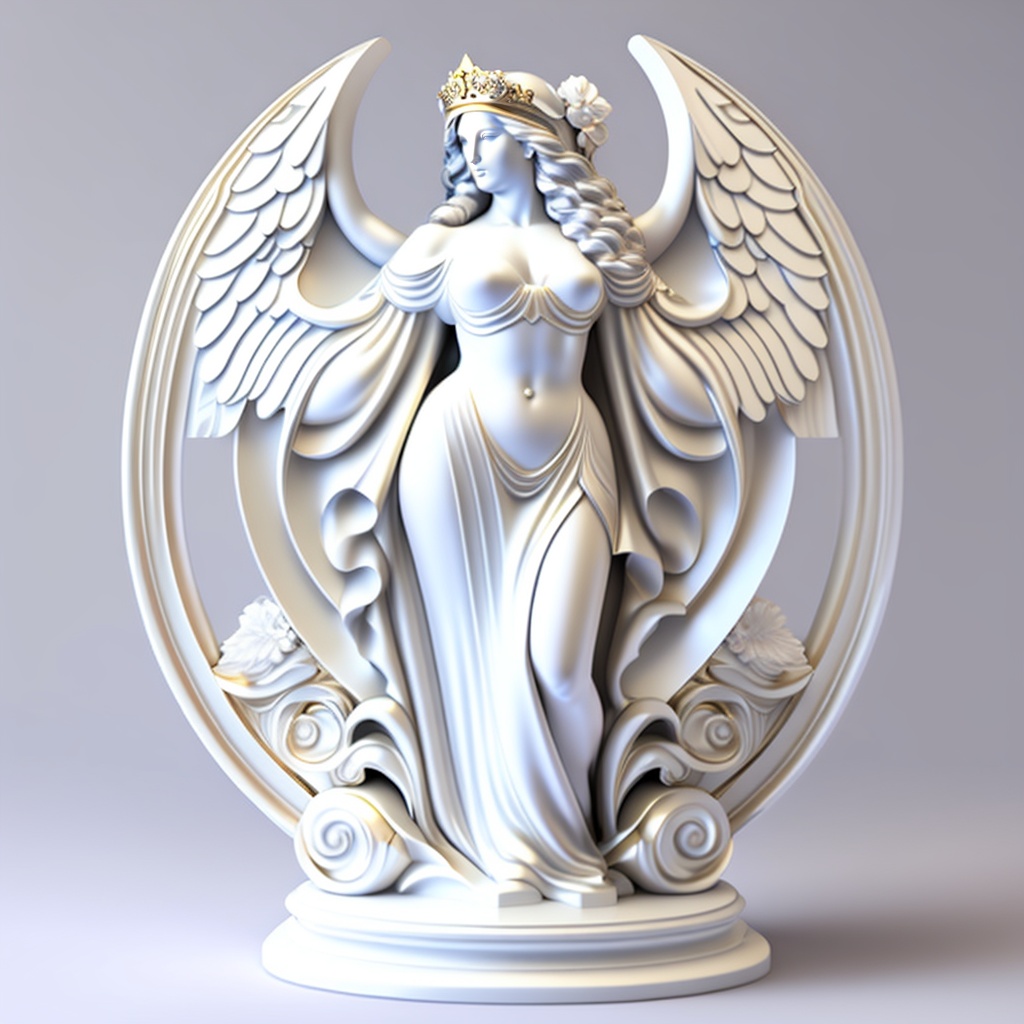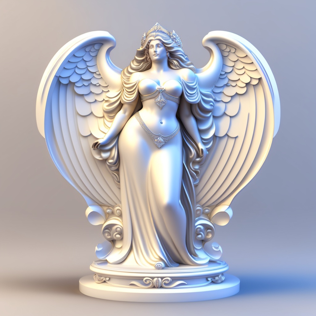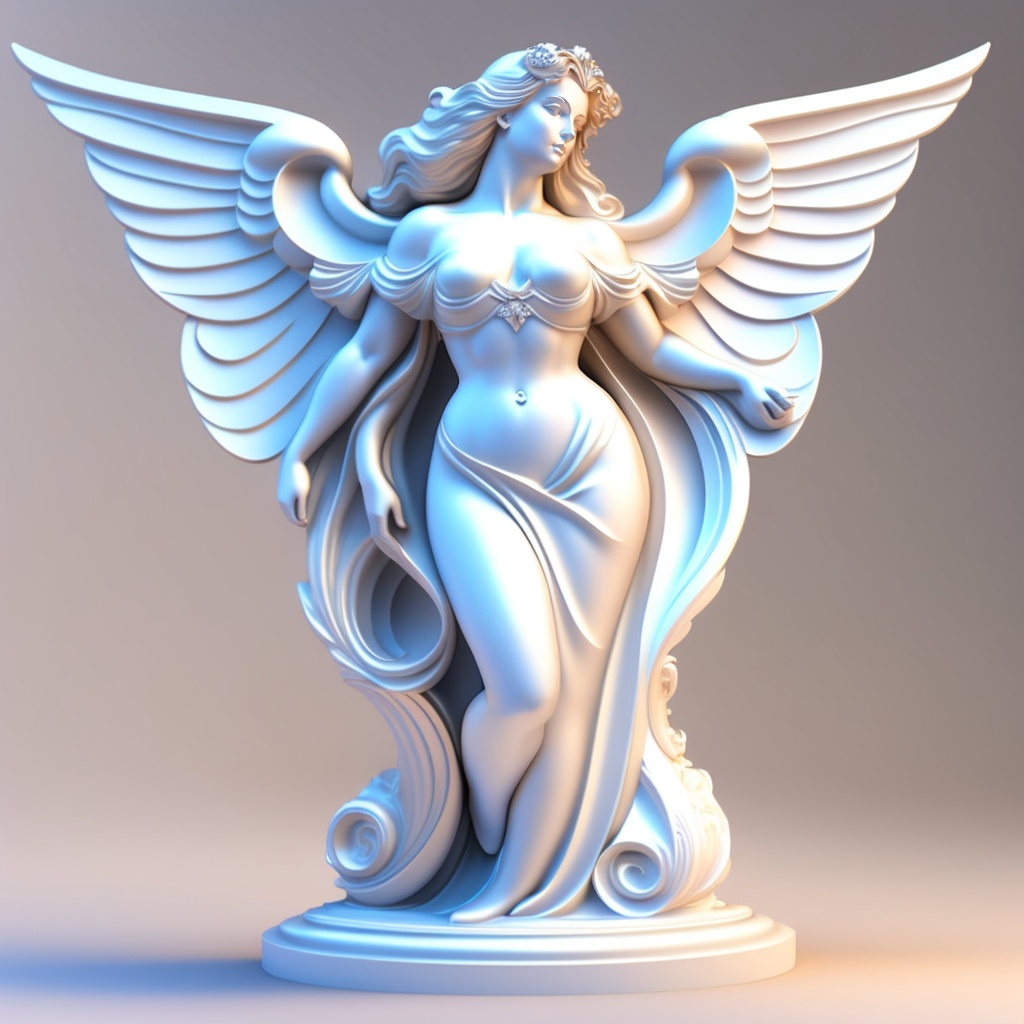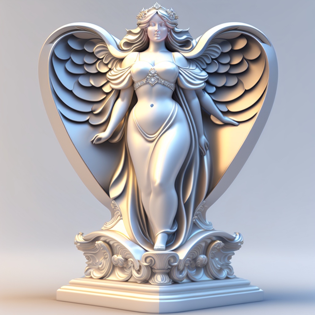 3d marble statue featuring pawg angel in an art nouveau style. picture a curvy woman with elegant, flowing lines, inspired by beauty and filled with intricate details. design an illustration that incorporates beauty, graceful curves, and motifs like love, and flowers