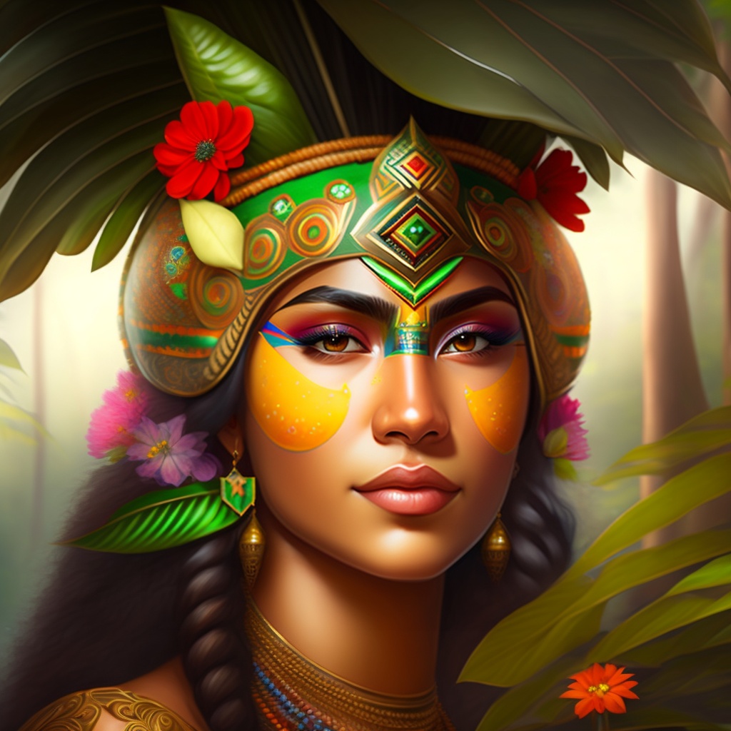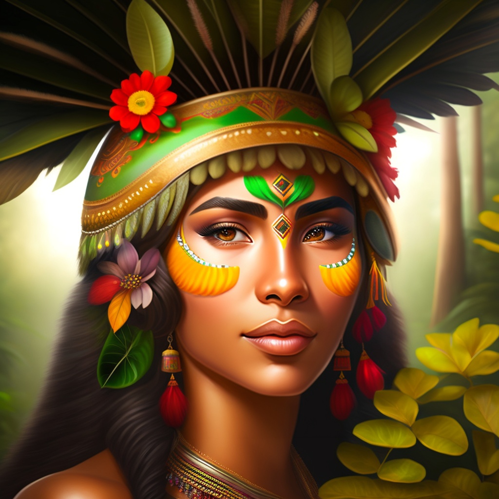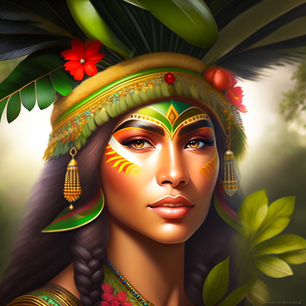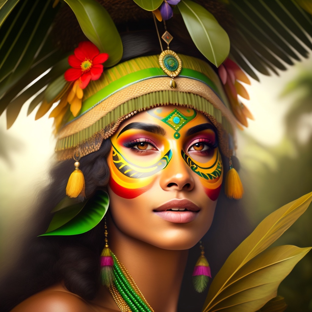 Brazilian indigenous, indigenous face painting, amazon rainforest, indian headdress, native, green, nature, flowers, animal, eye brow, forest