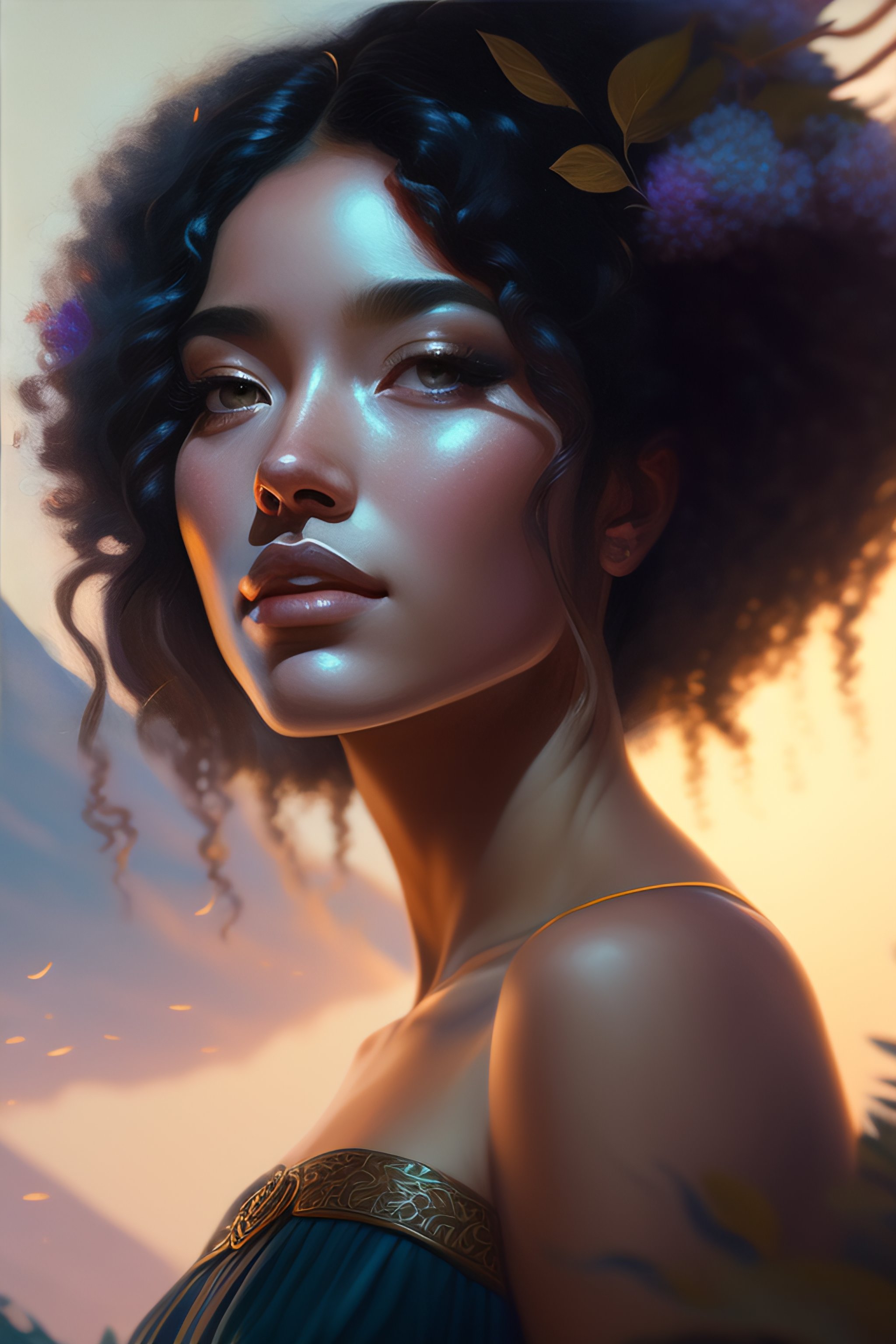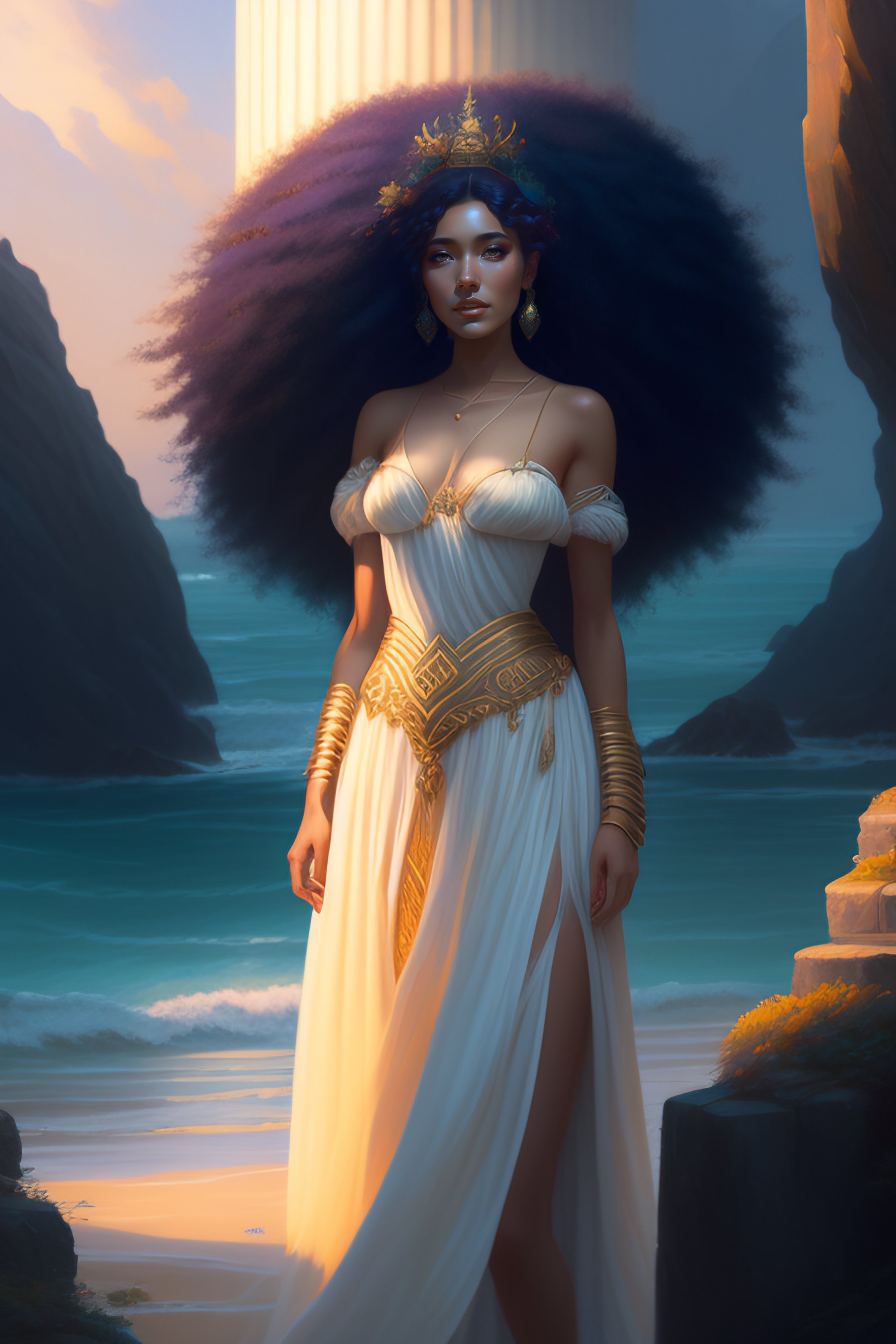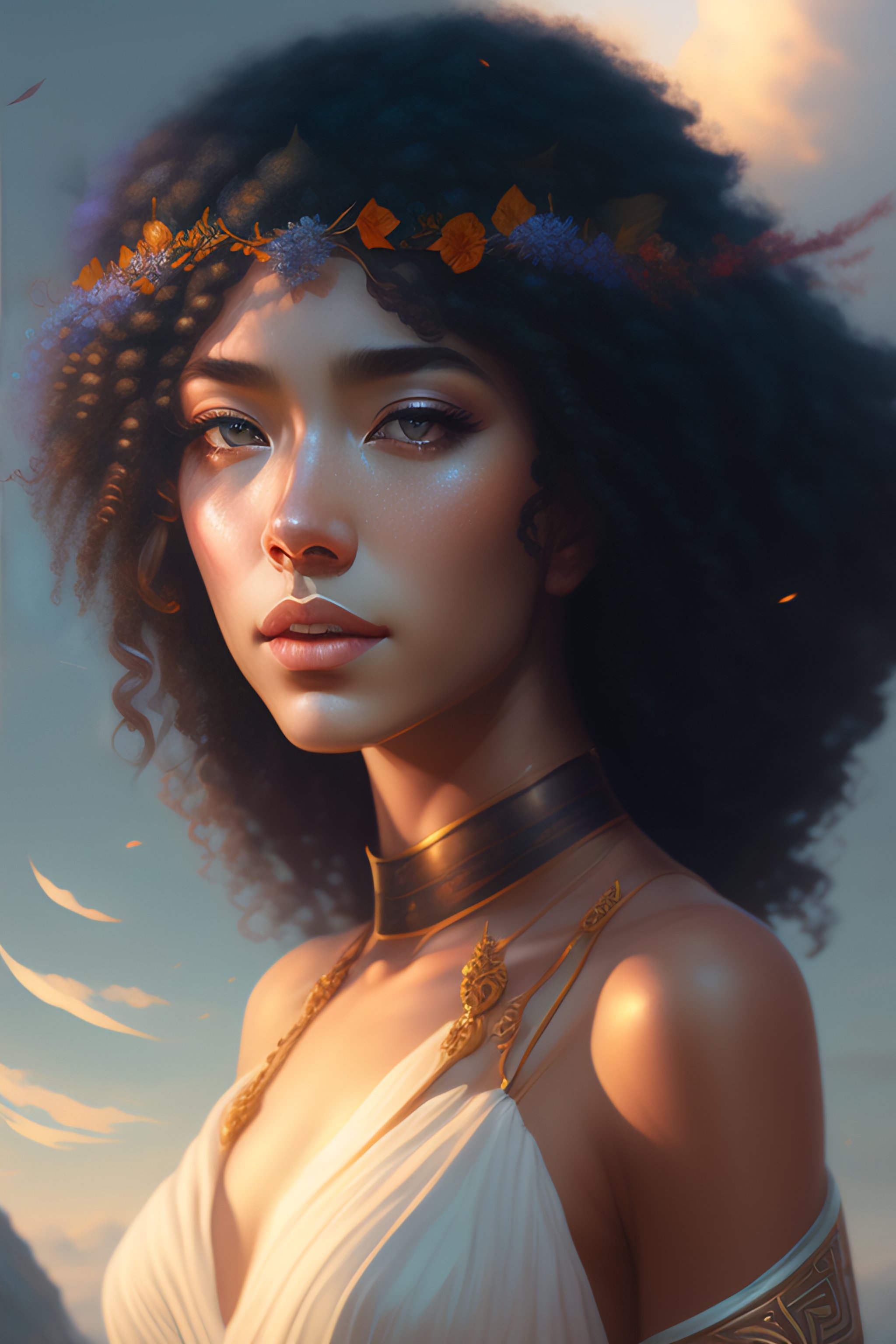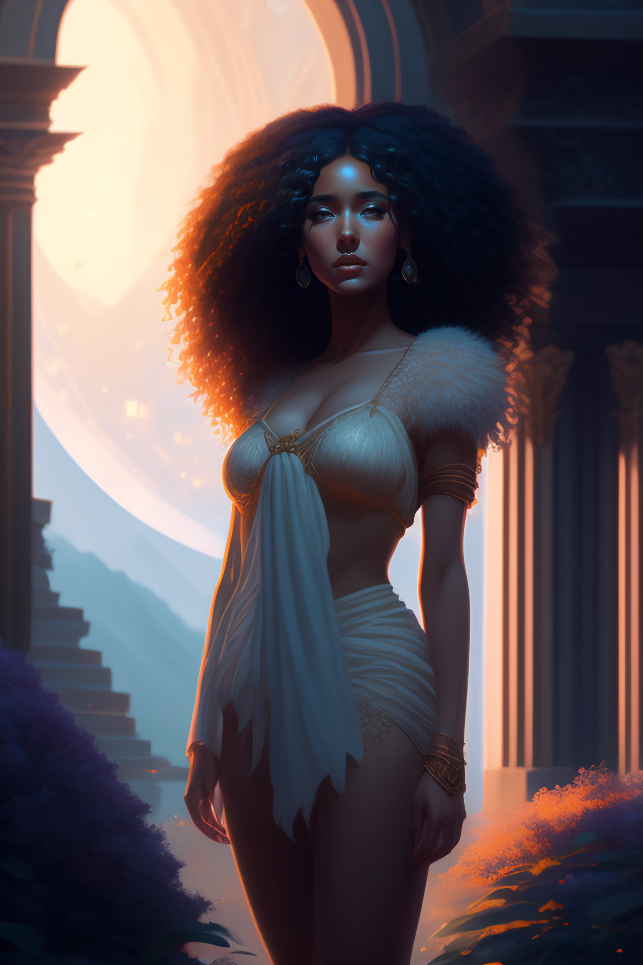 Highly detailed full body of eurydice greek mythology, stephen bliss, unreal engine, fantasy art by greg rutkowski, loish, rhads, ferdinand knab, makoto shinkai and lois van baarle, ilya kuvshinov, rossdraws, tom bagshaw, global illumination, radiant light, none environment, black women, curly hair, japanese women