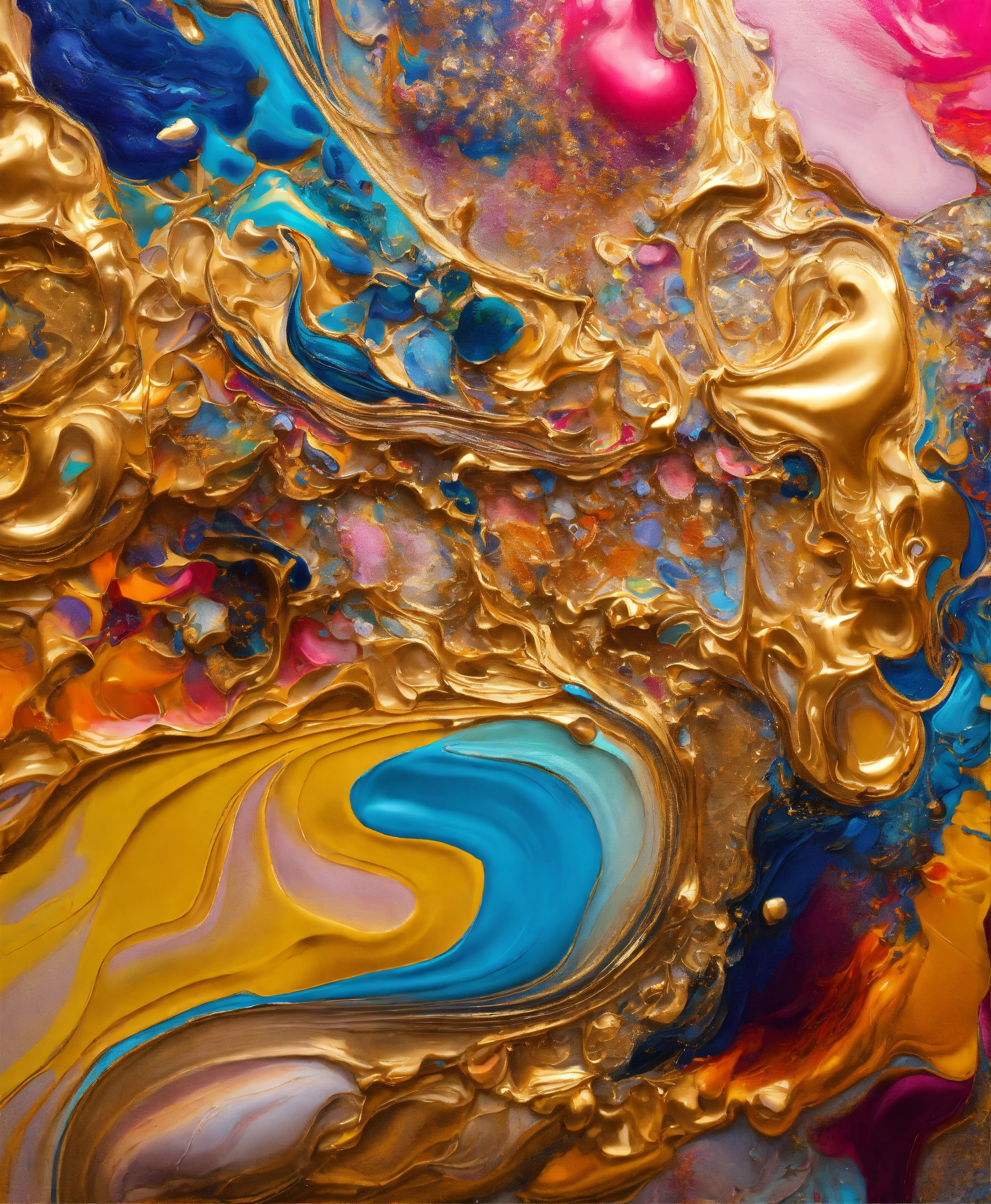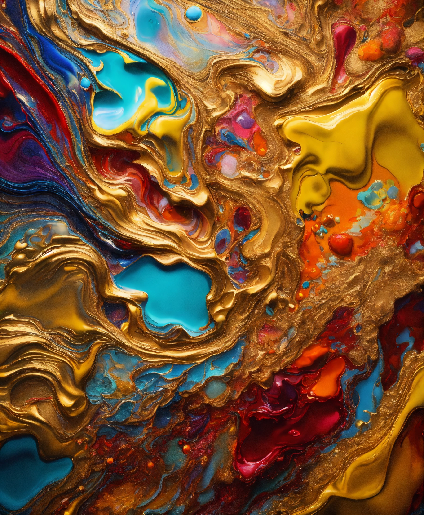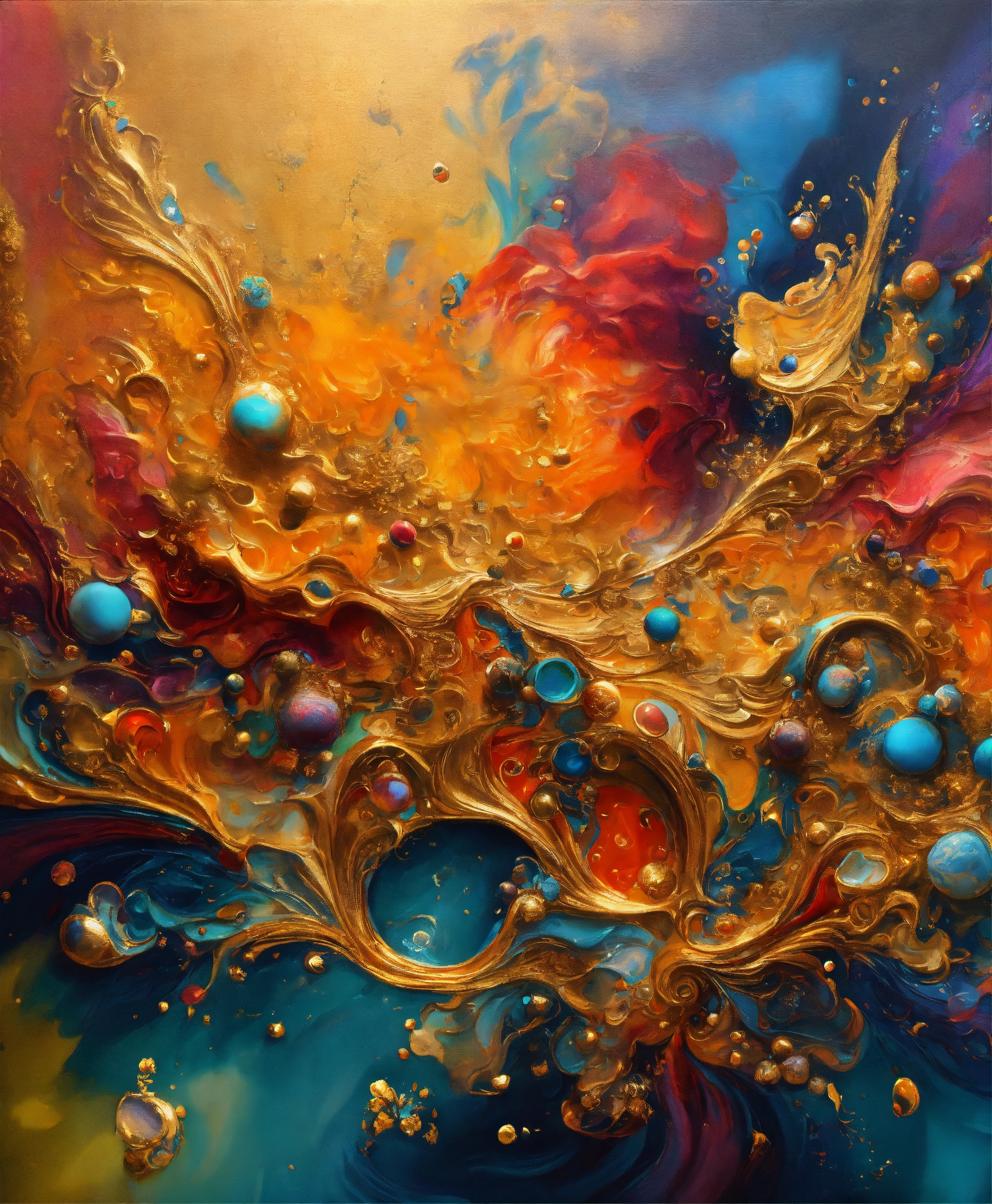 Colorful abstract painting oil and water complex complicated bright vivid colors beautiful opulent wealthy intricate hyperdetailed masterpiece awesome gold trim 8k