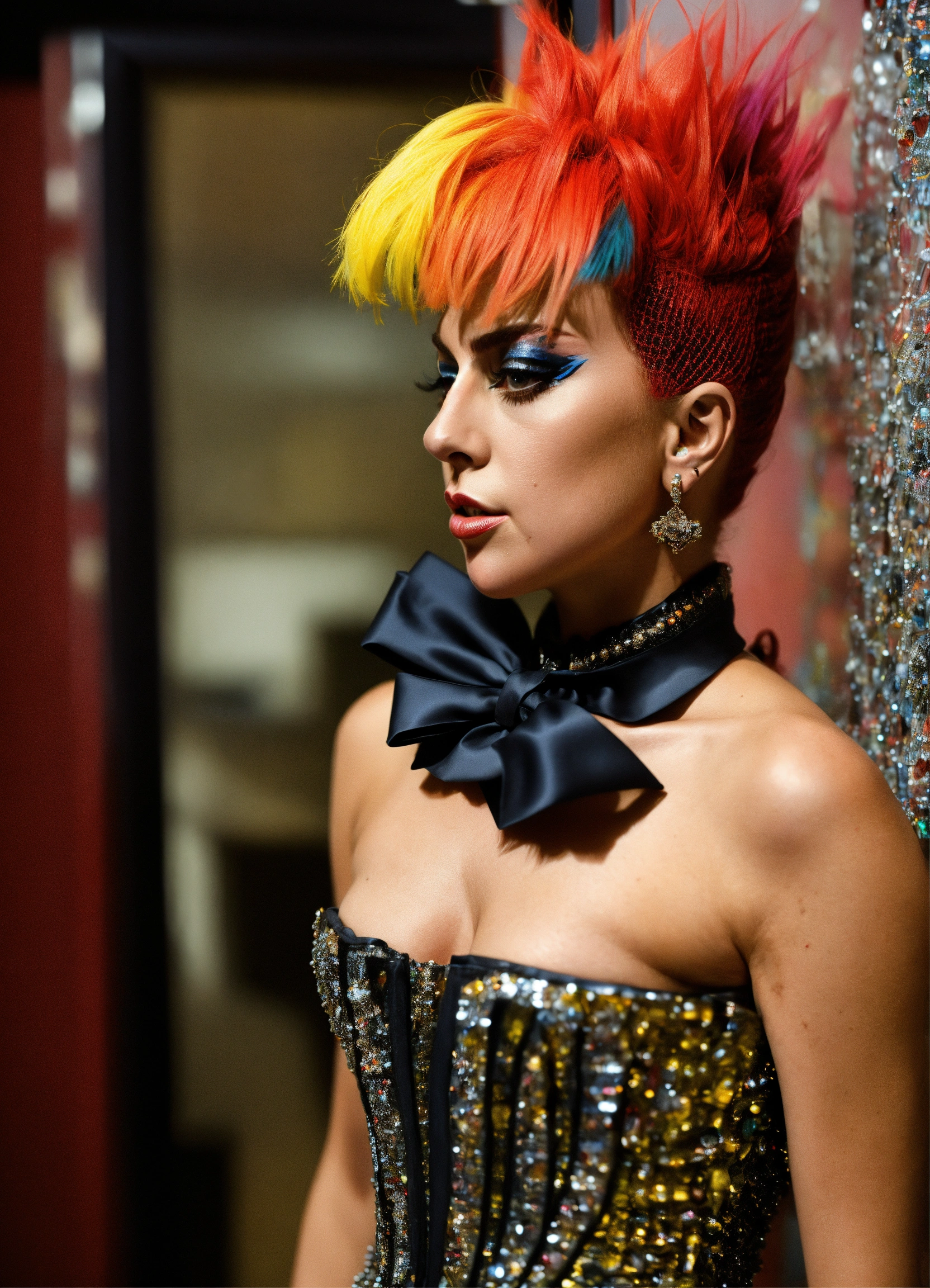 Lady gaga in hardrock rock punk dress looking in to the mirror
