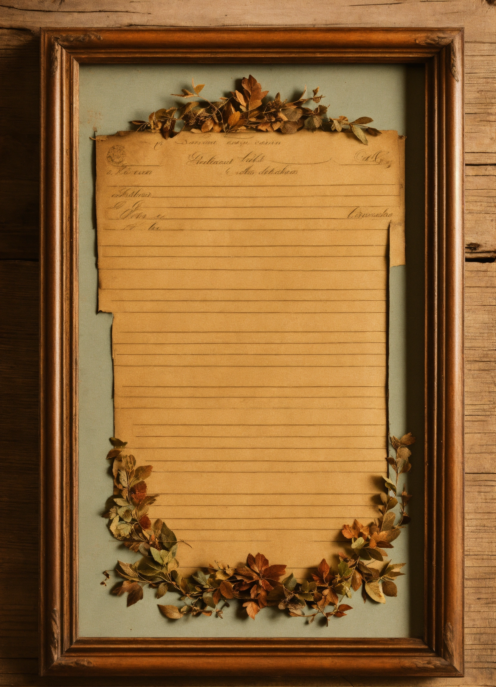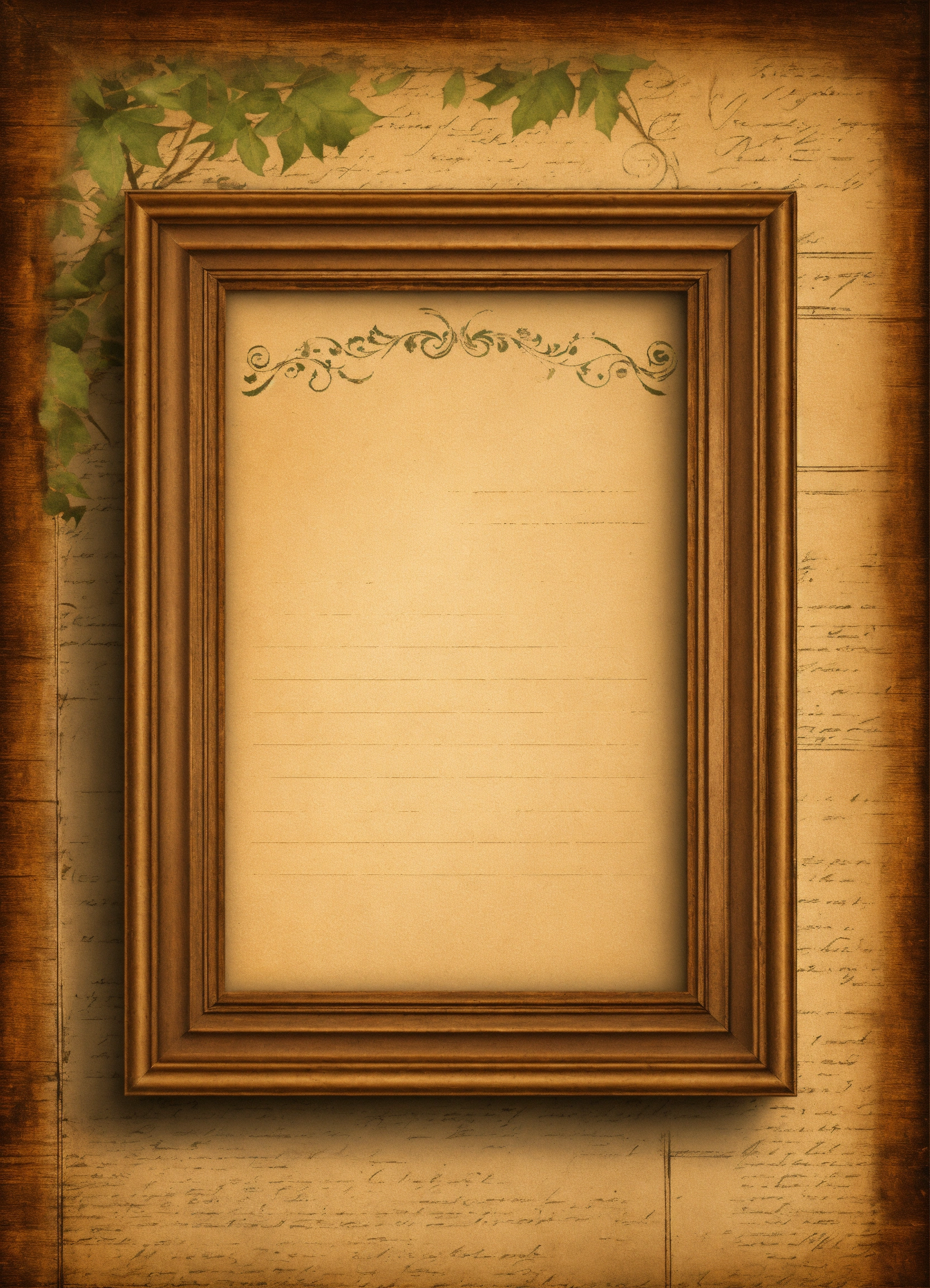 Old vintage retro letter paper in frame from tree