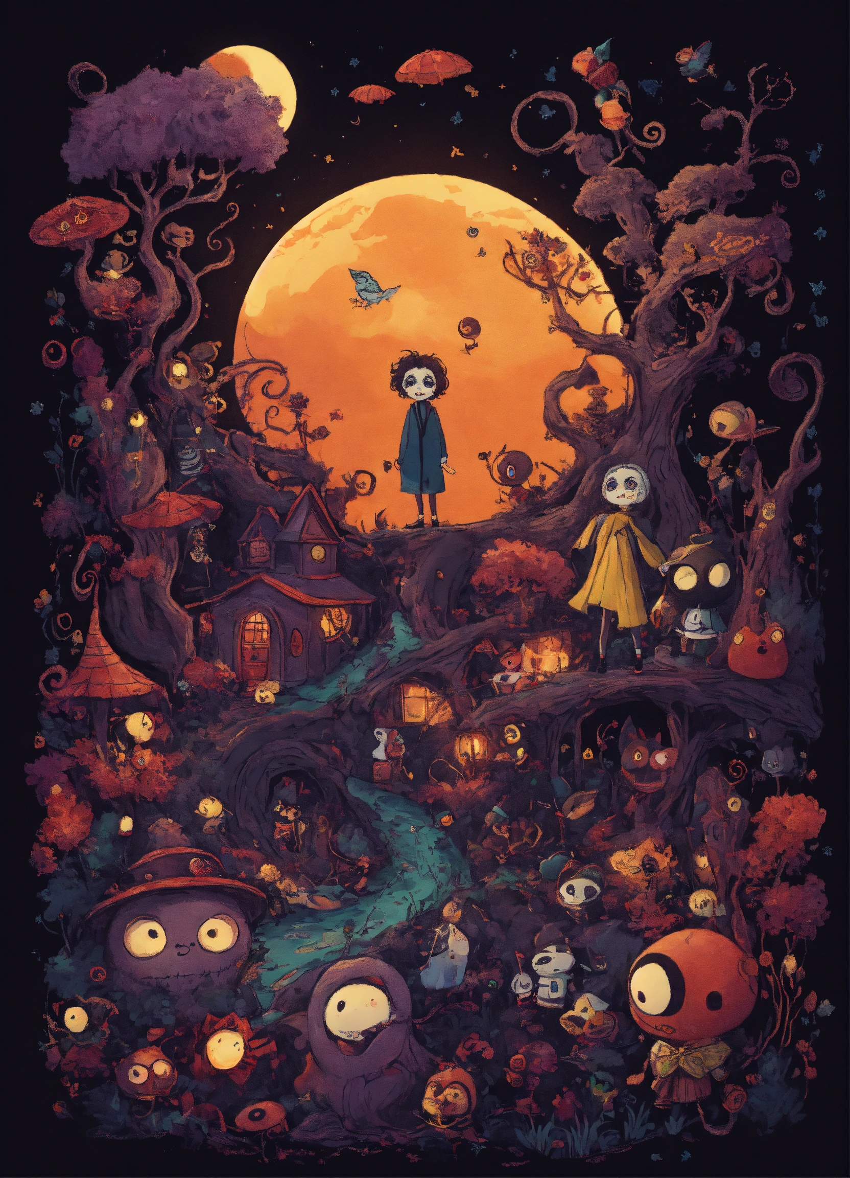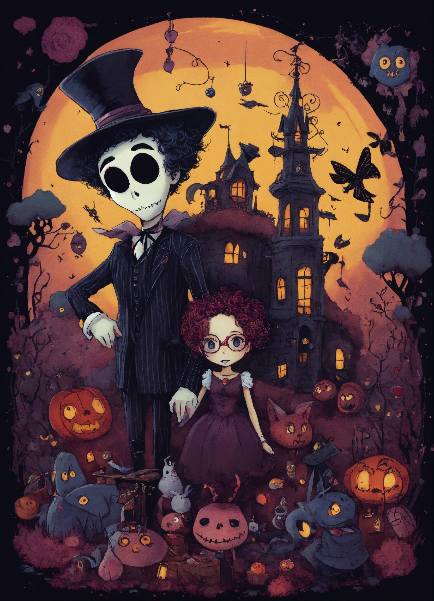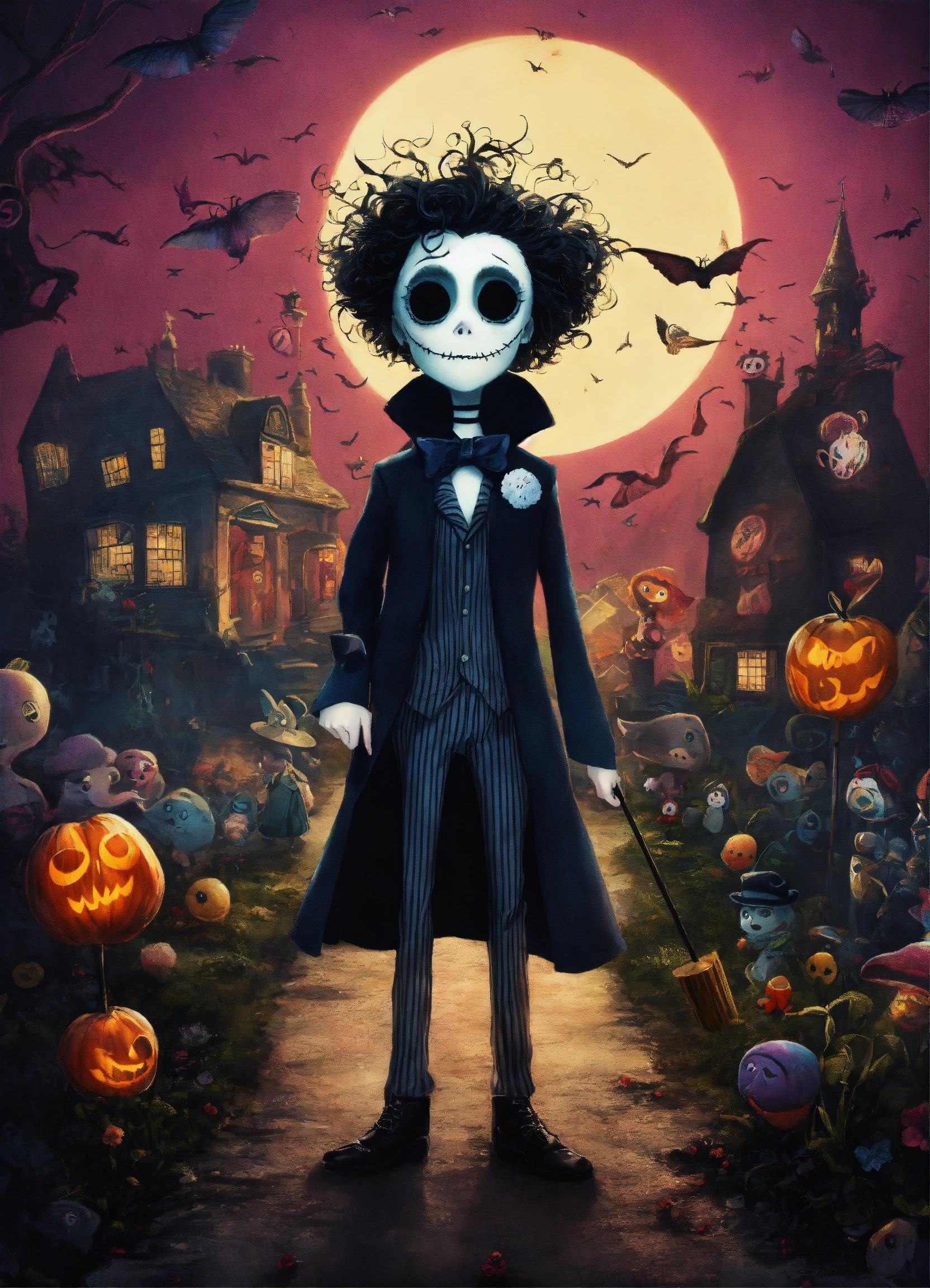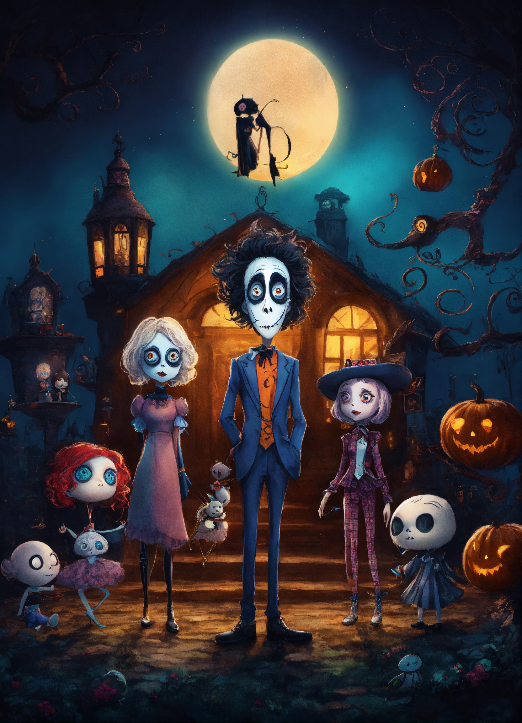 Diseño para camiseta con personajes de tim burton en 8k