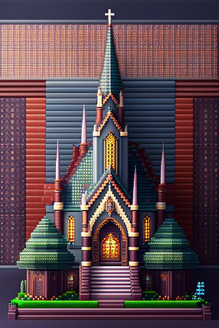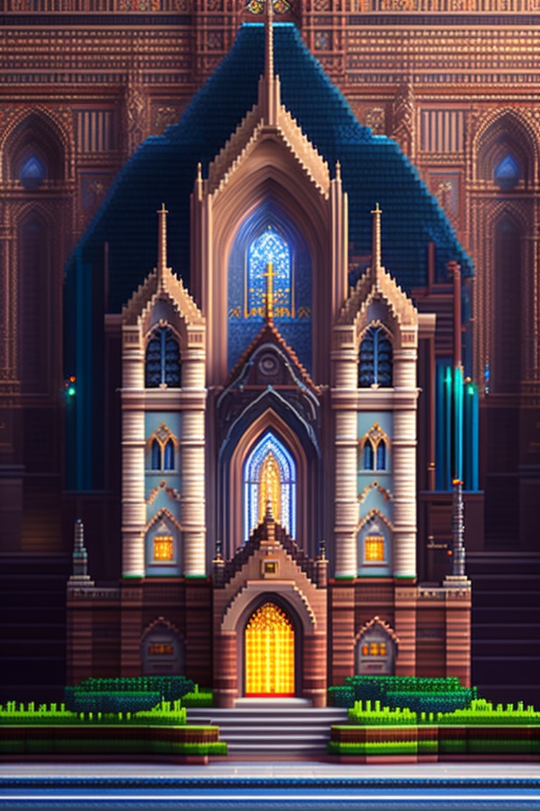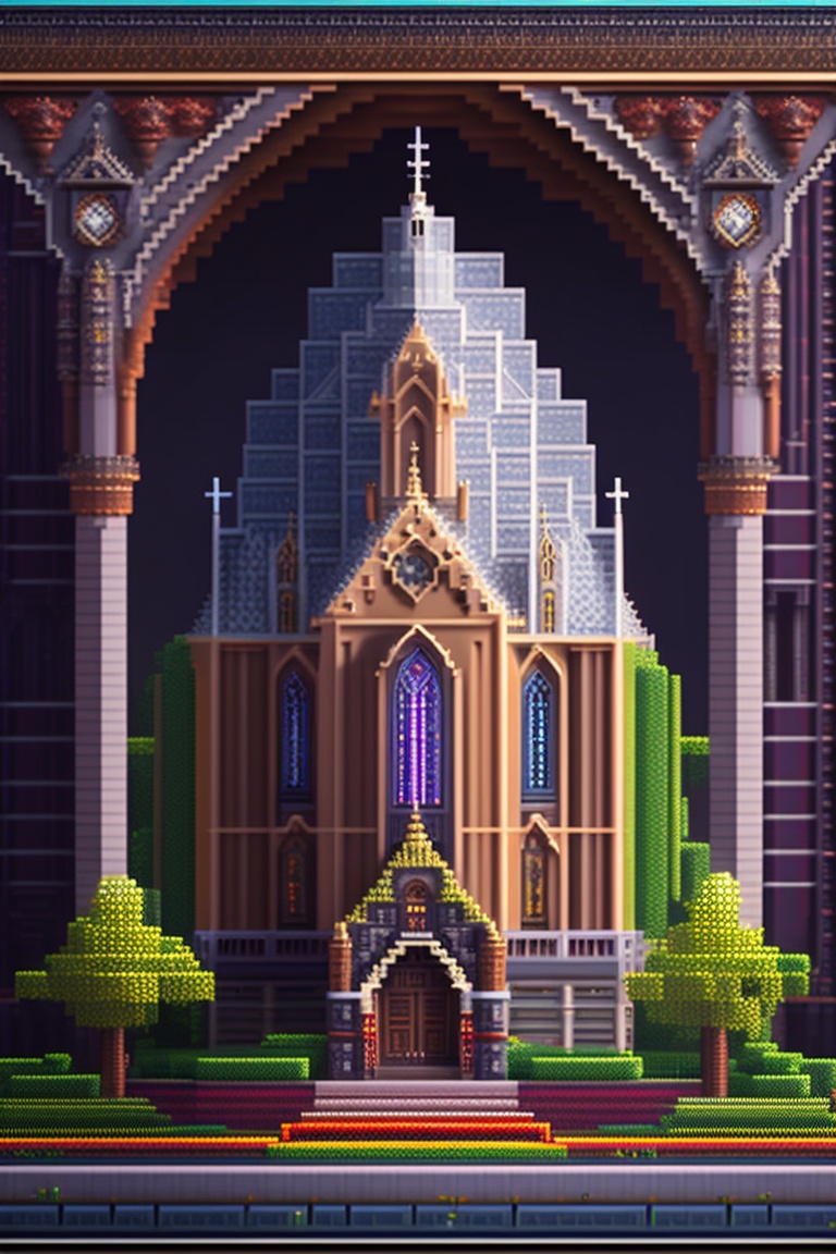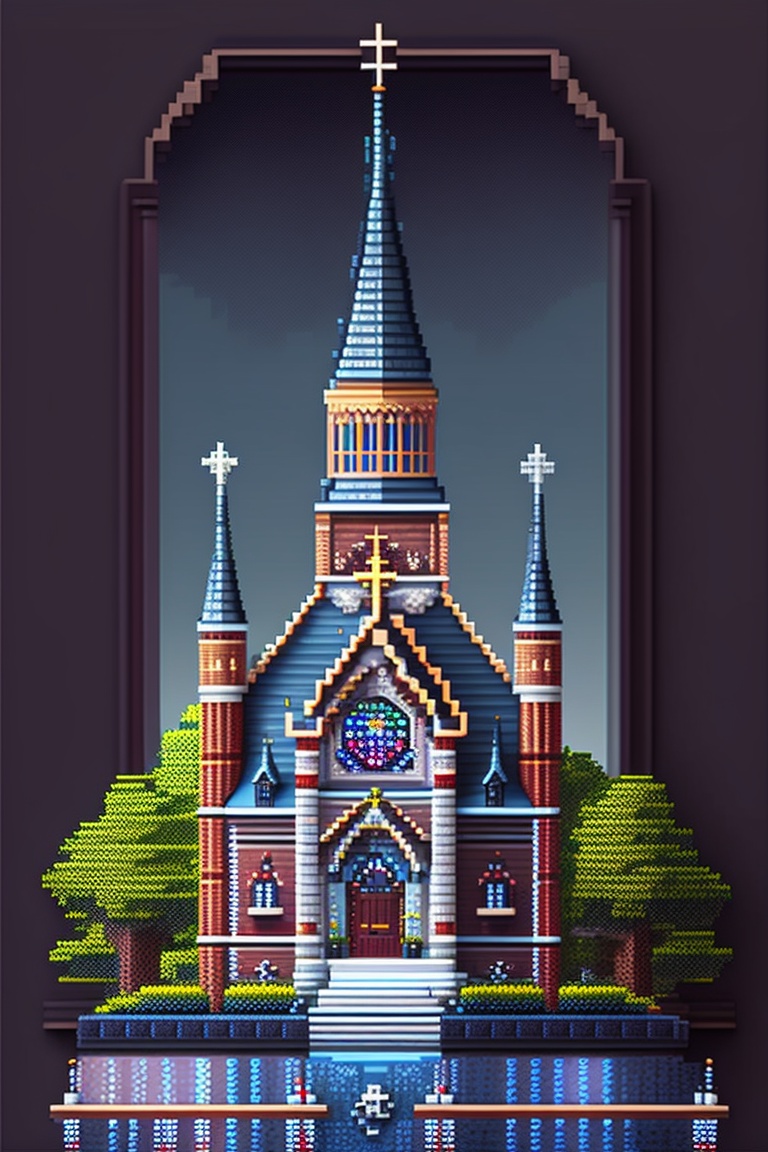 Very big and long gothic church pixel art