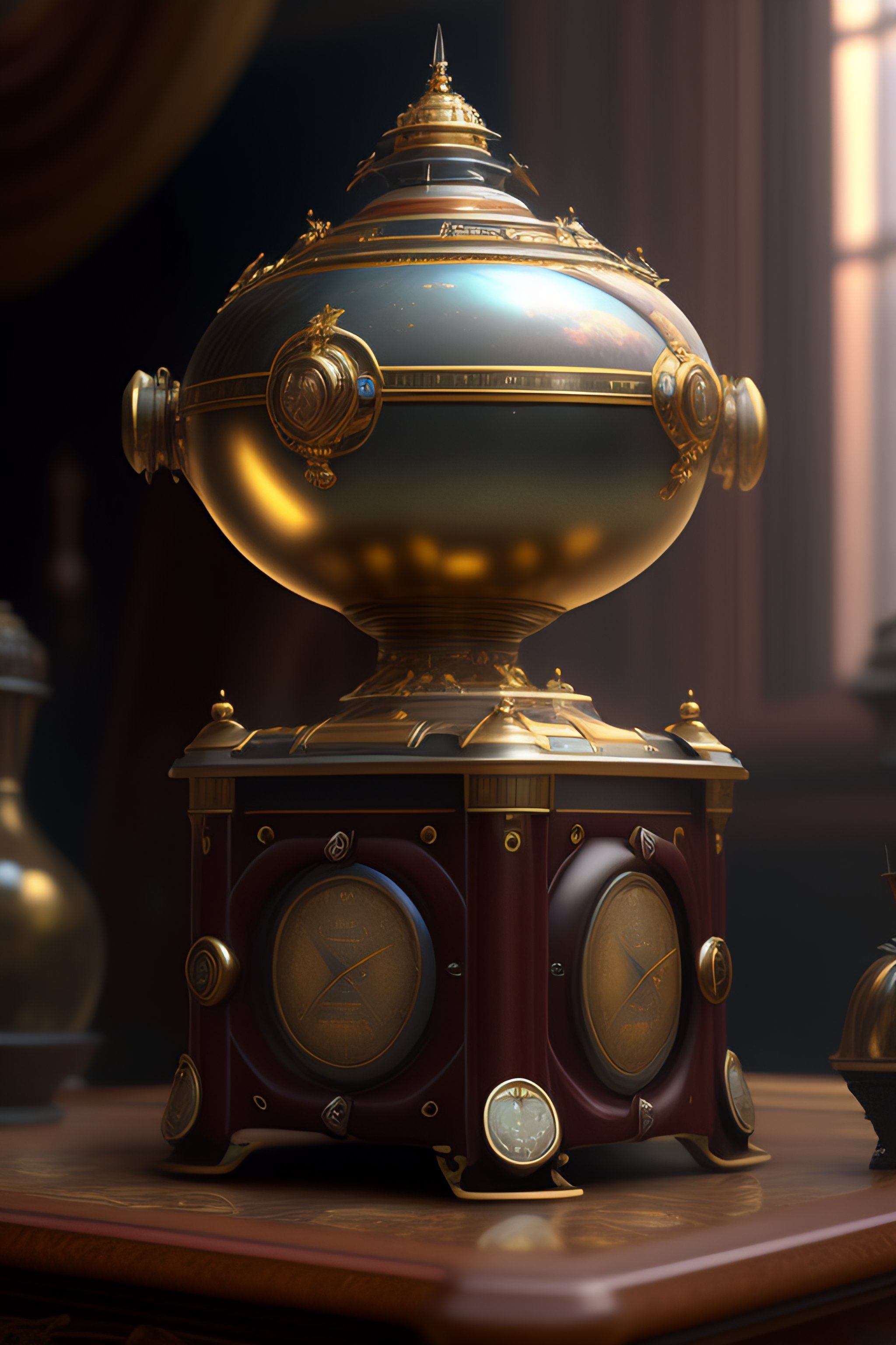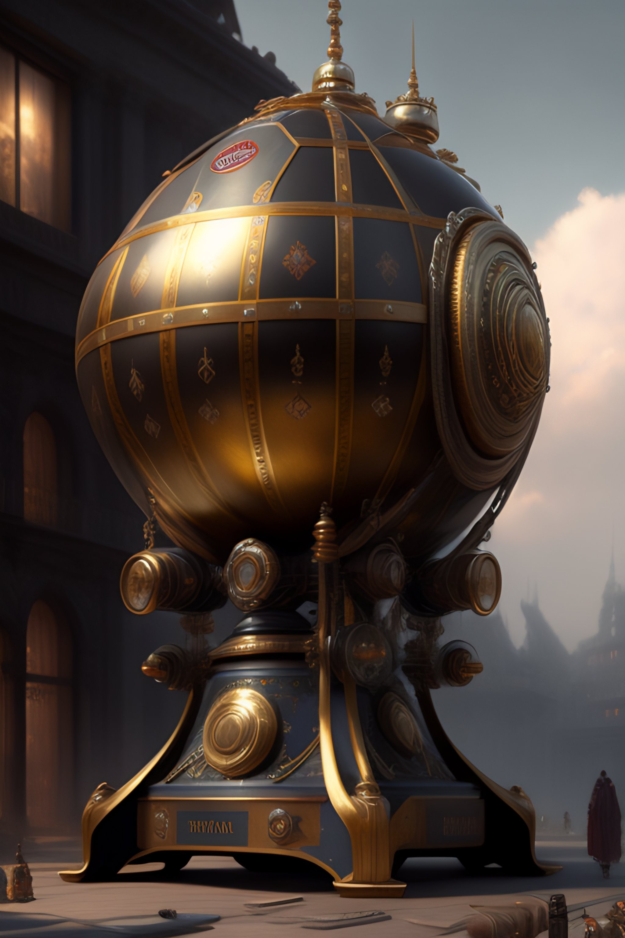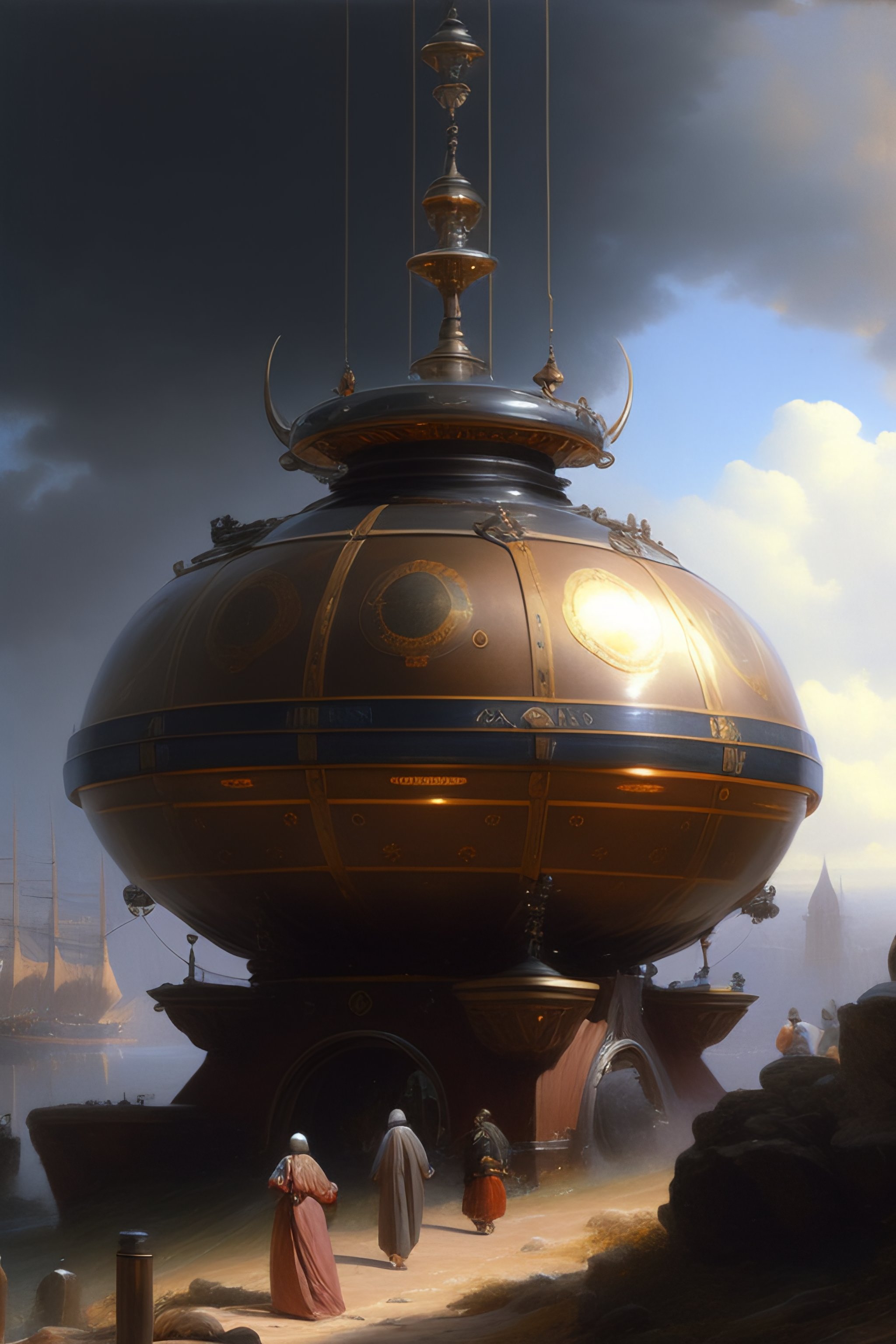 An intricate hyper realistic painting of a scifi device by andreas achenbach
