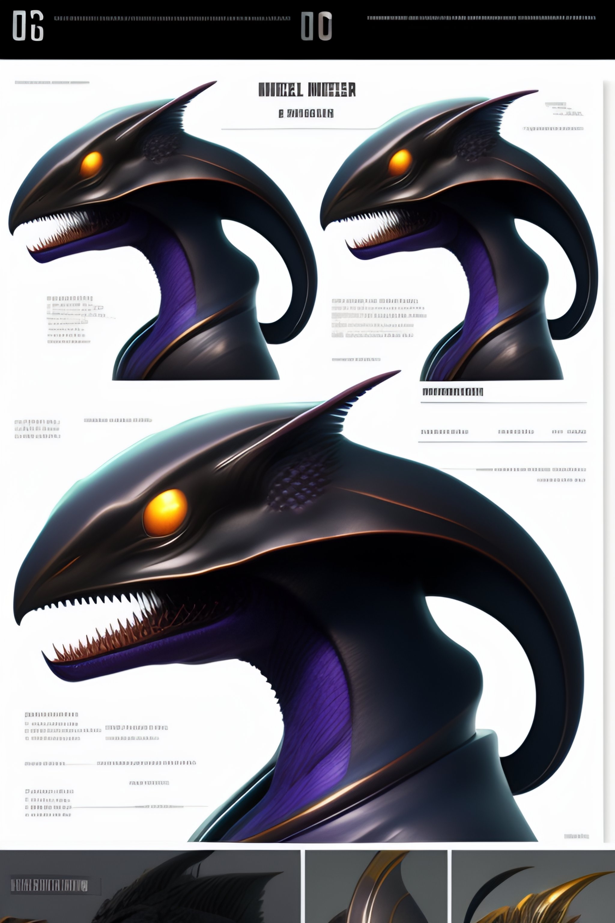 Photo real alien monster model sheet turnaround a pose