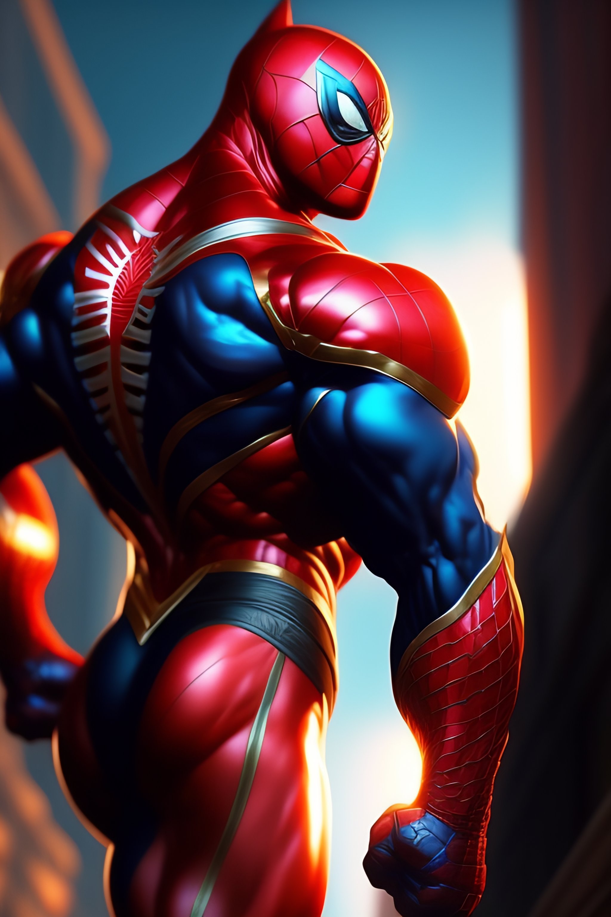 Muscular spiderman, lighting, cinematic, establishing shot, extremely high detail, photo realistic, lighting, post processed, concept art, artstation, matte painting, style by eddie mendoza, raphael lacoste, alex ross