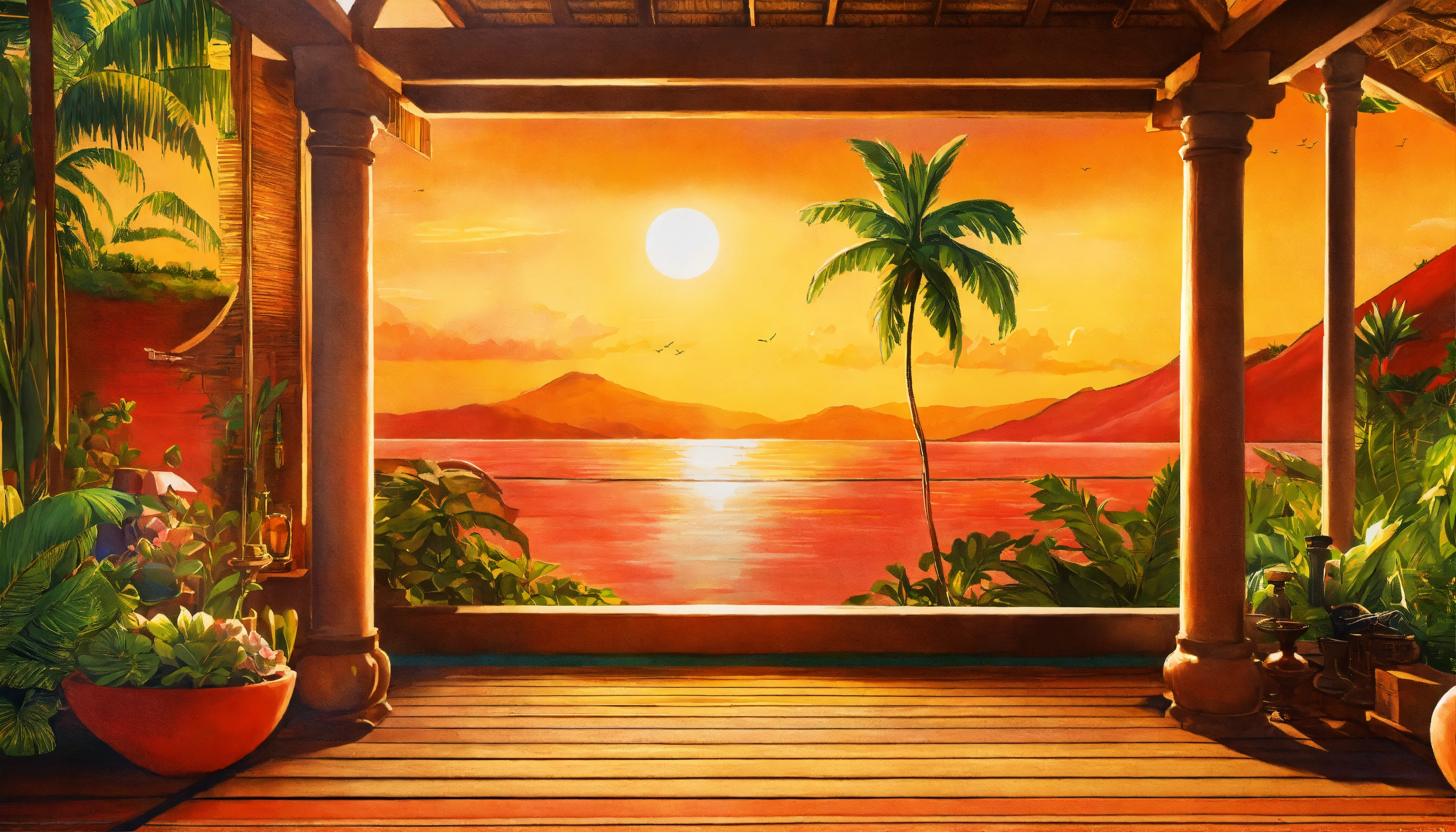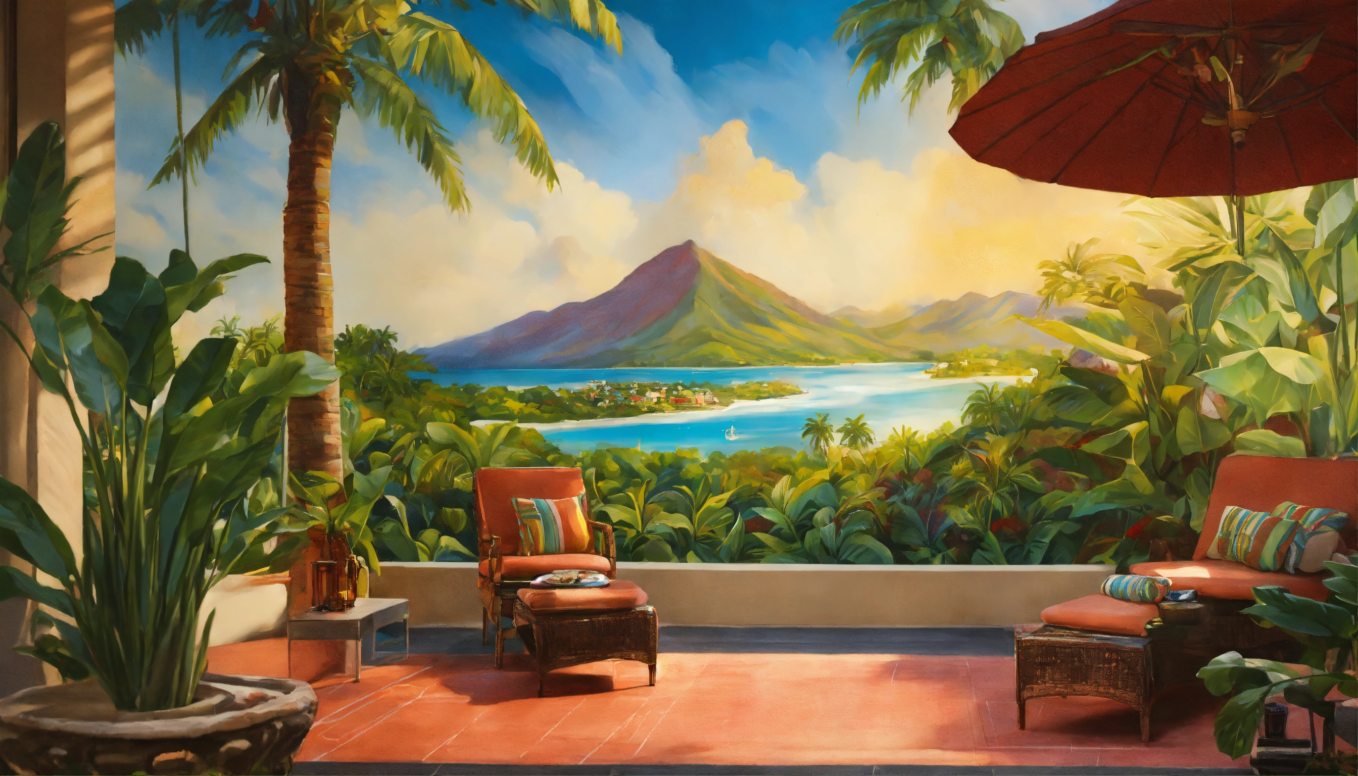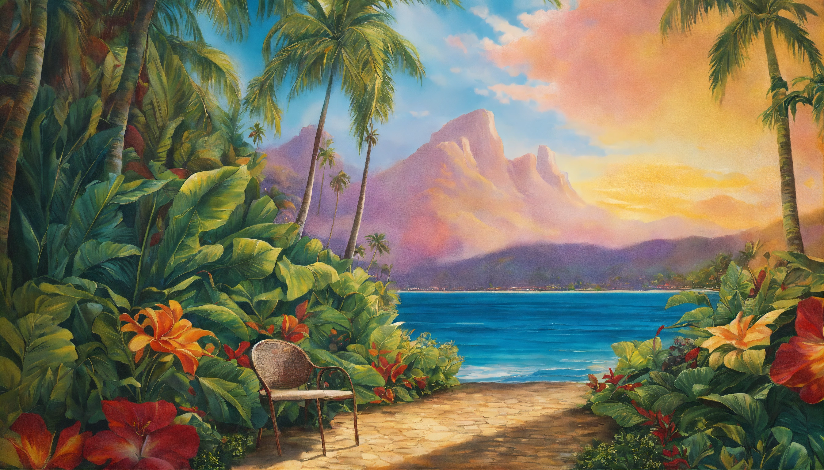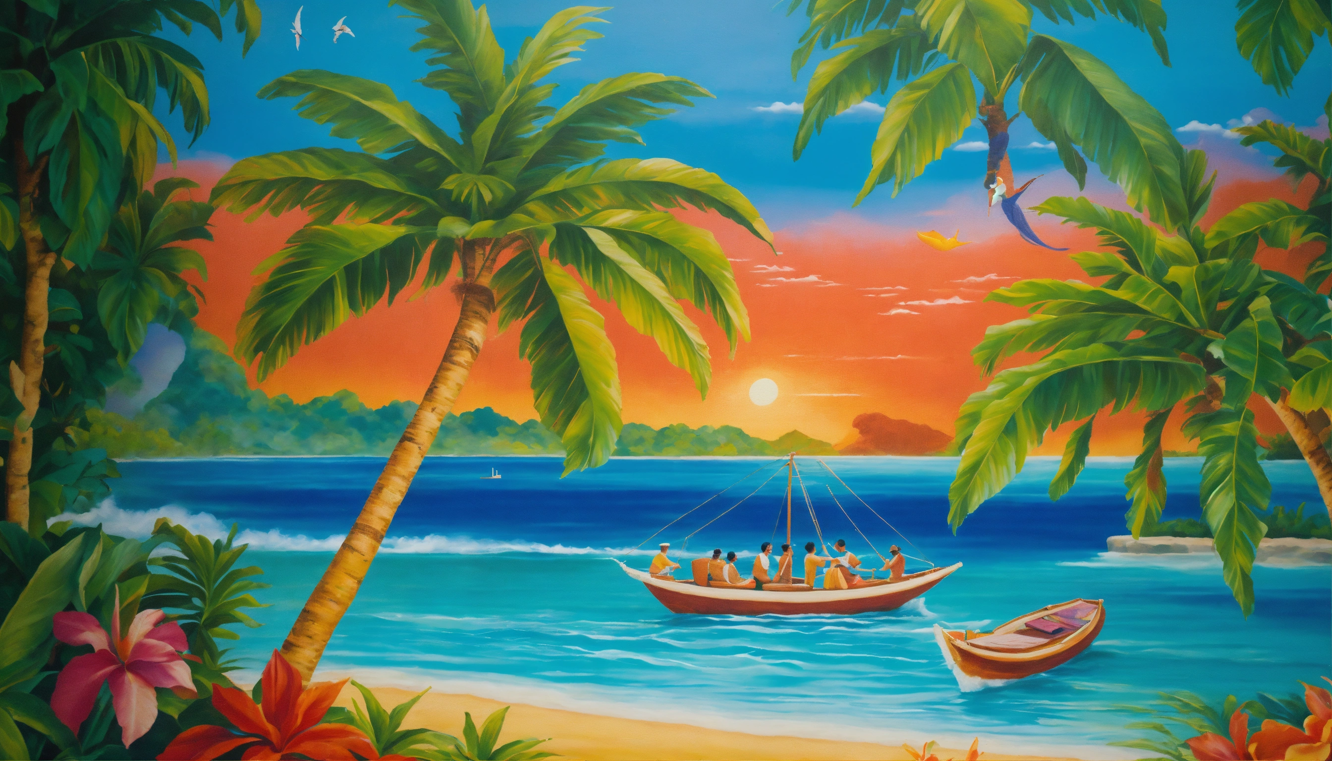 Imagine a captivating mural that seamlessly blends the vivacious spirit of salsa music with the serene beauty of a tropical oasis