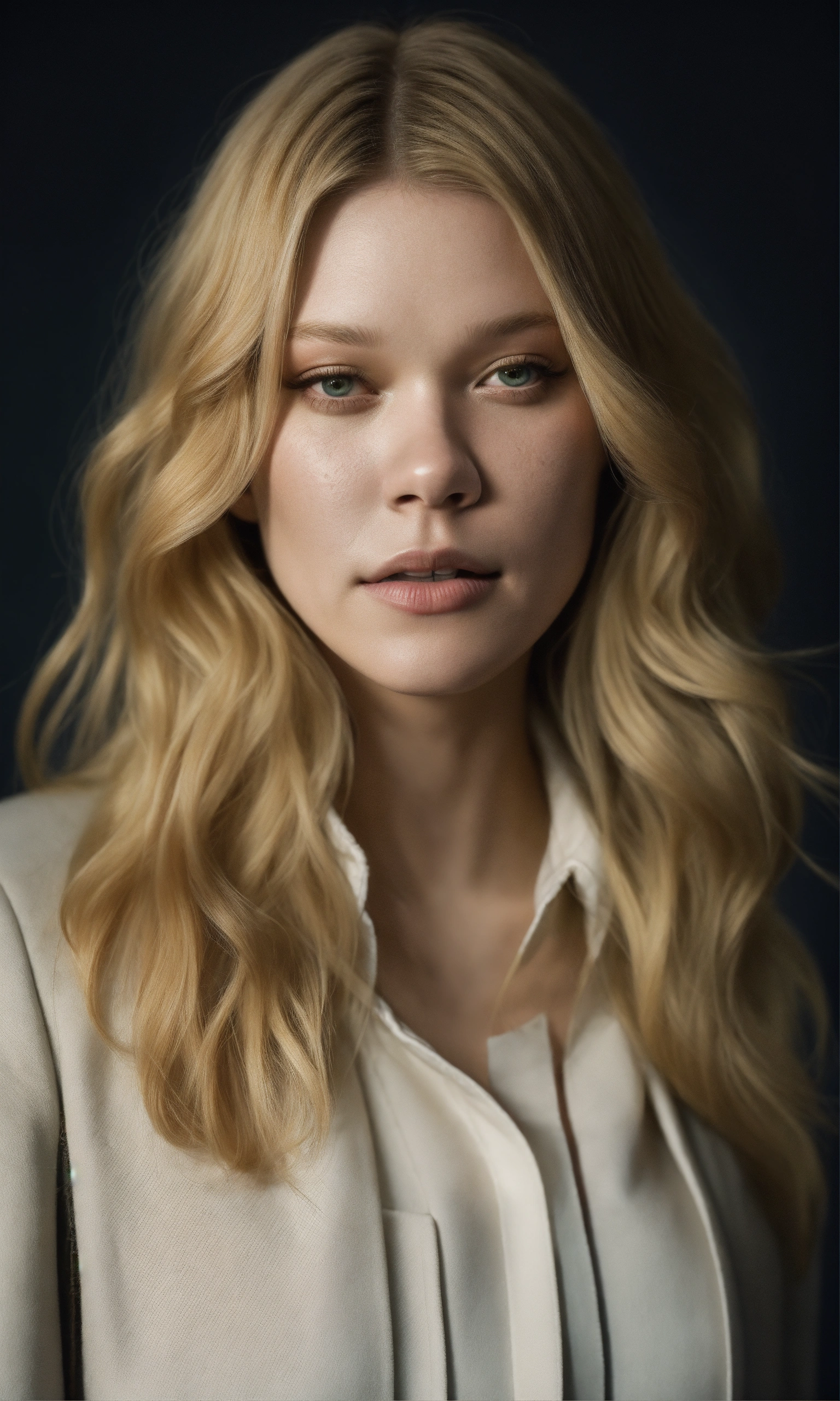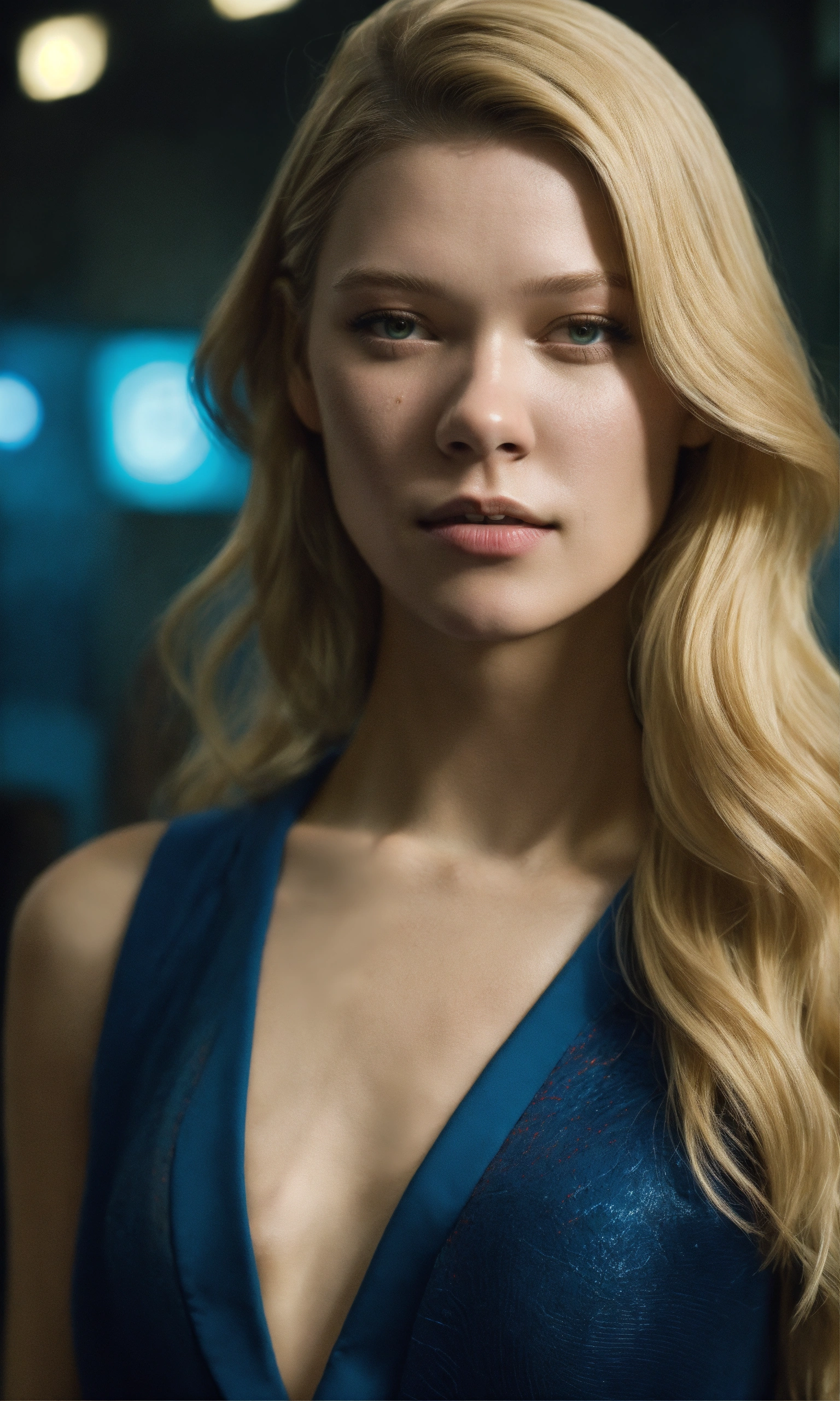 Beautiful blonde girl, lea seydoux long hair, altered carbon style, very realistic, 27 years old, serial killer hunt, tall bitch business lady