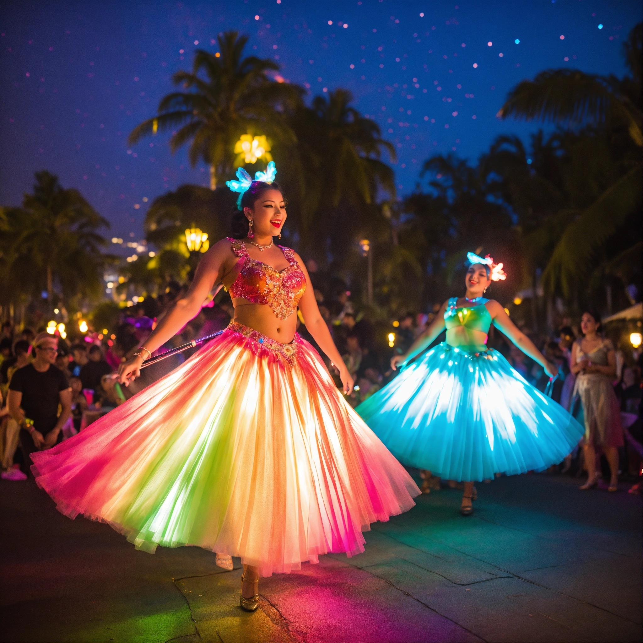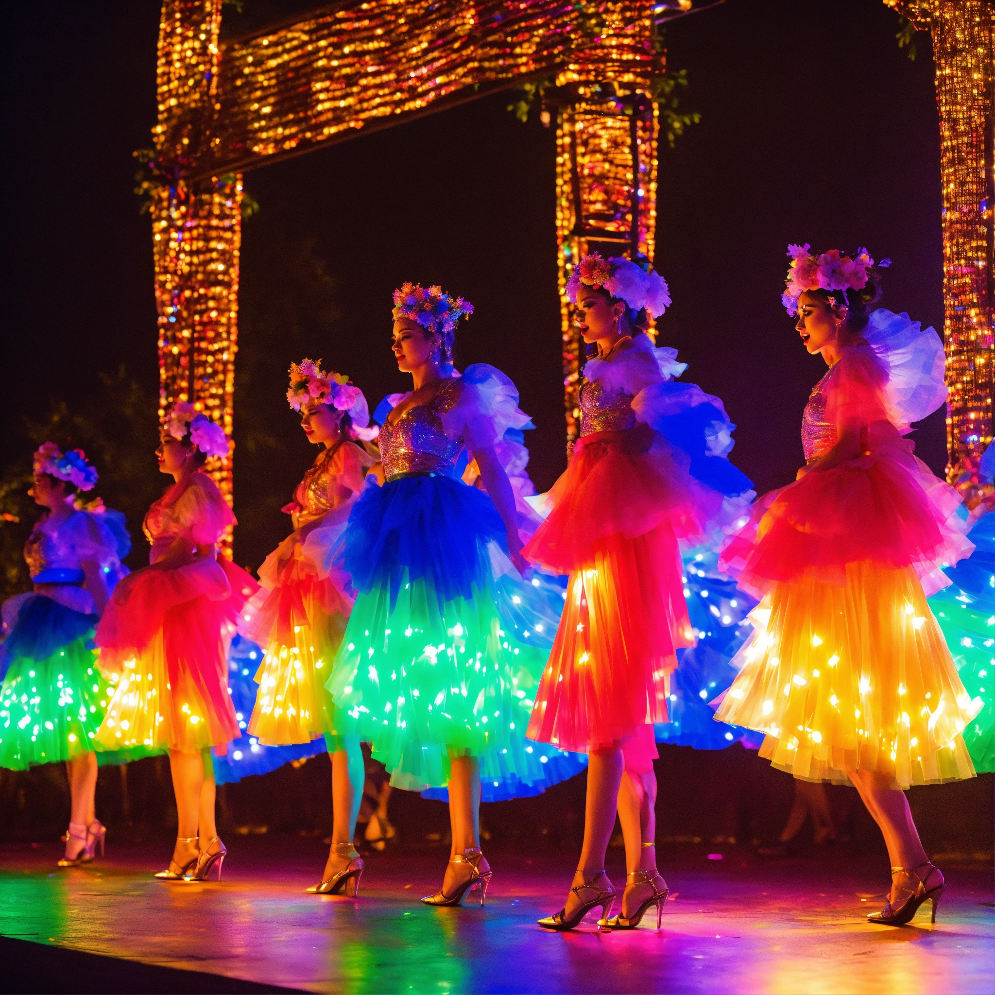 Performers illuminate the night with a symphony of vibrant colors and breathtaking visuals, led skirts