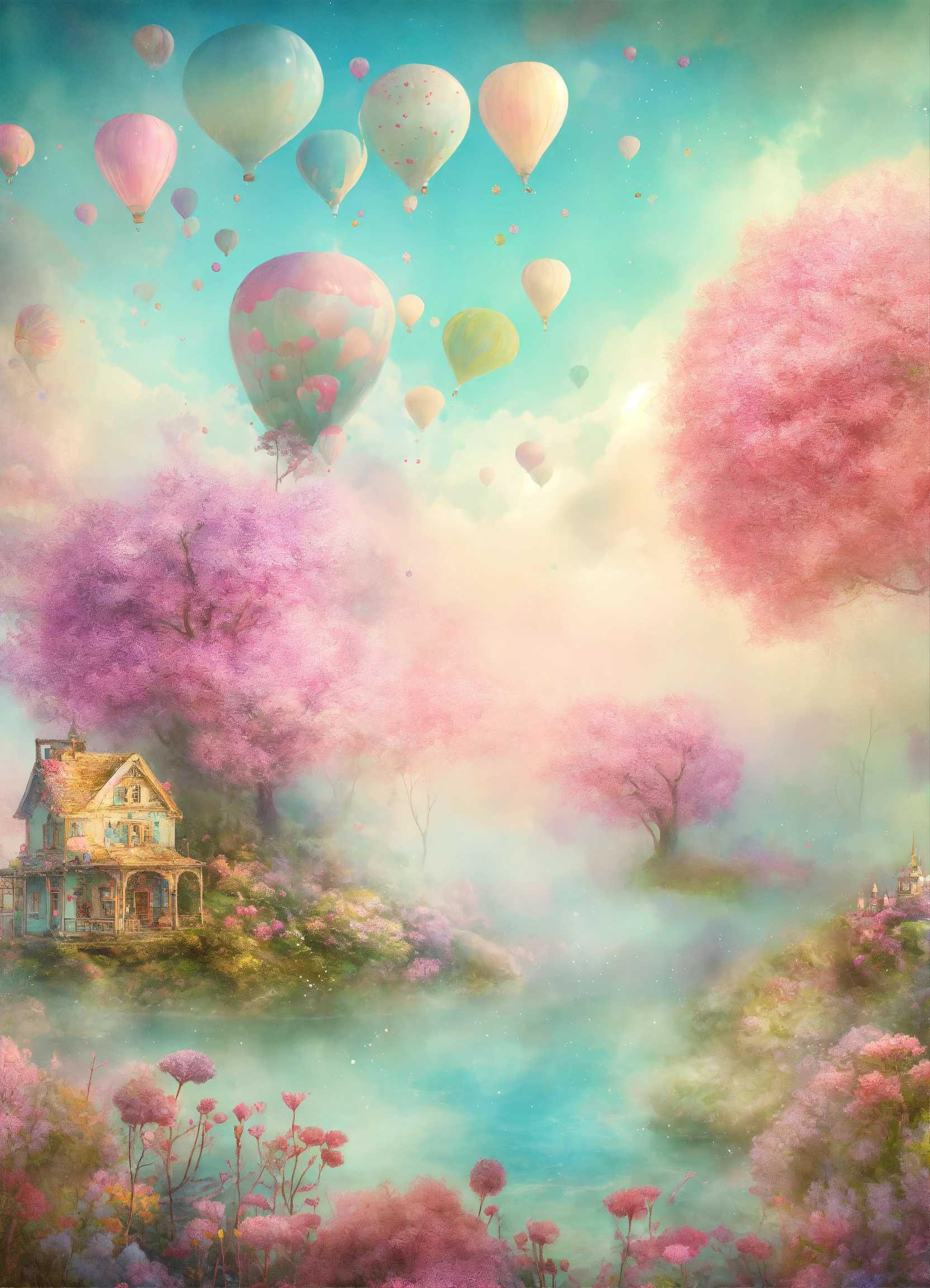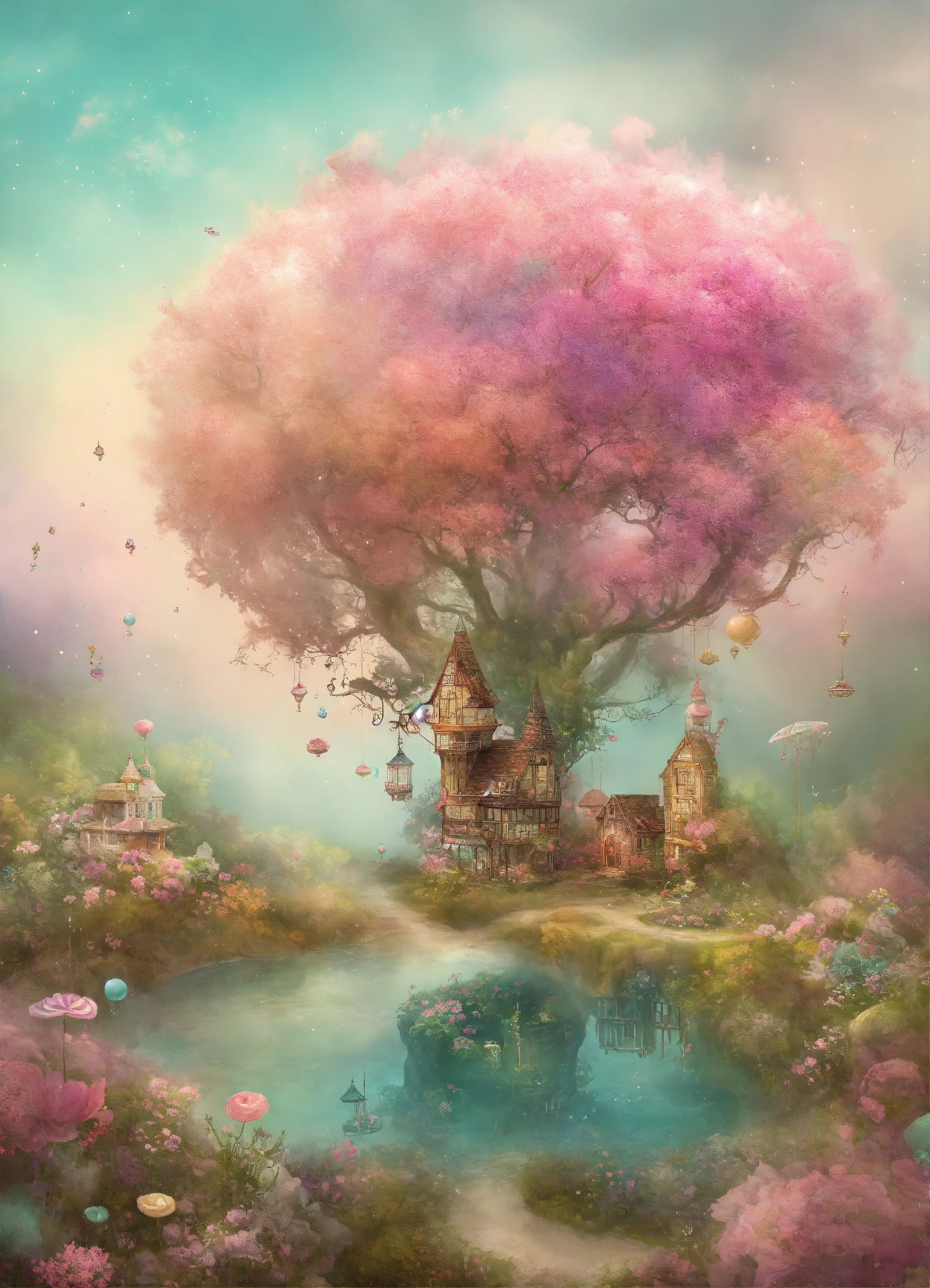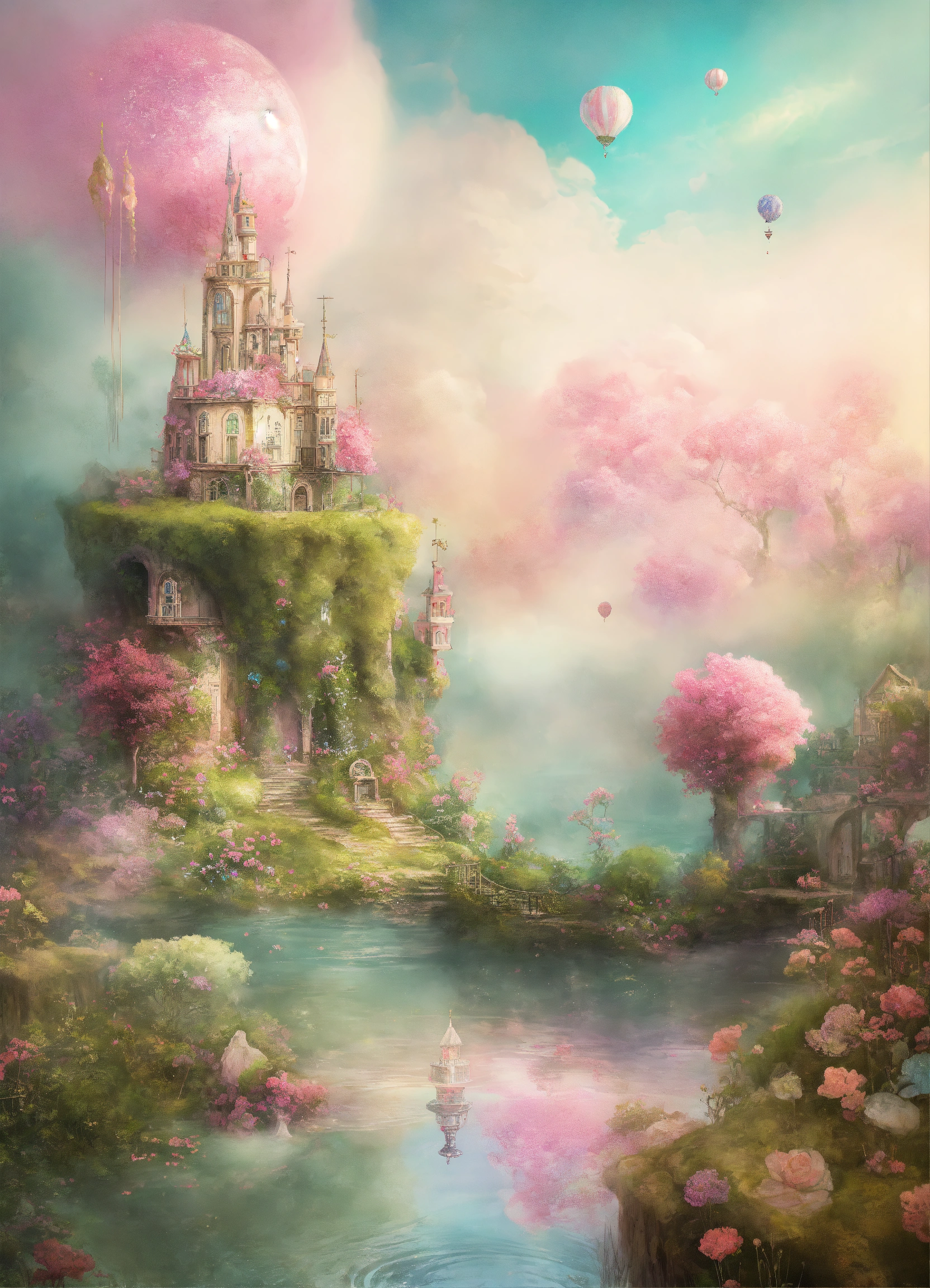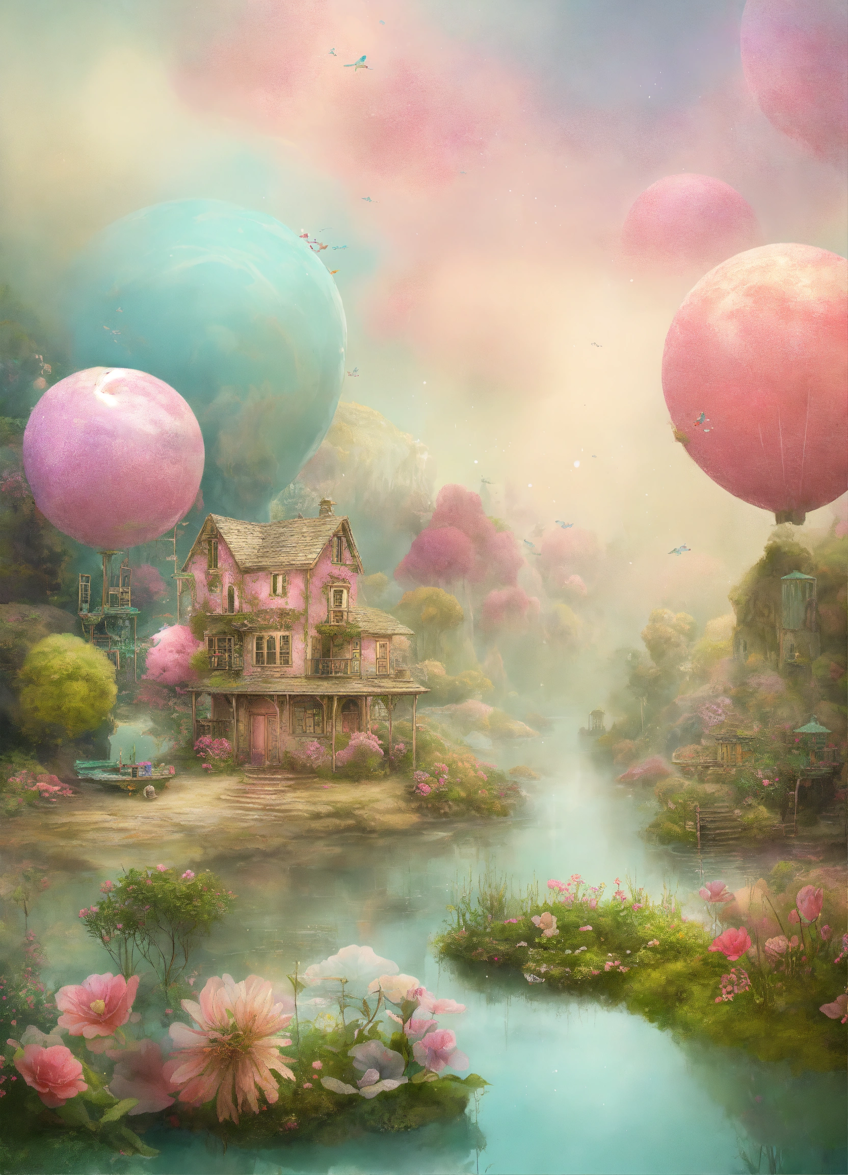 Shabby chic dreamy mist pastel junk journals whimsical landscapes choose images of whimsical landscapes, such as floating islands, candy-colored forests, or underwater gardens, to create a dreamy and surreal display. you can also choose images of imaginary cities or worlds for a more immersive and fantastical look. swirling magical fairytale abstract art style