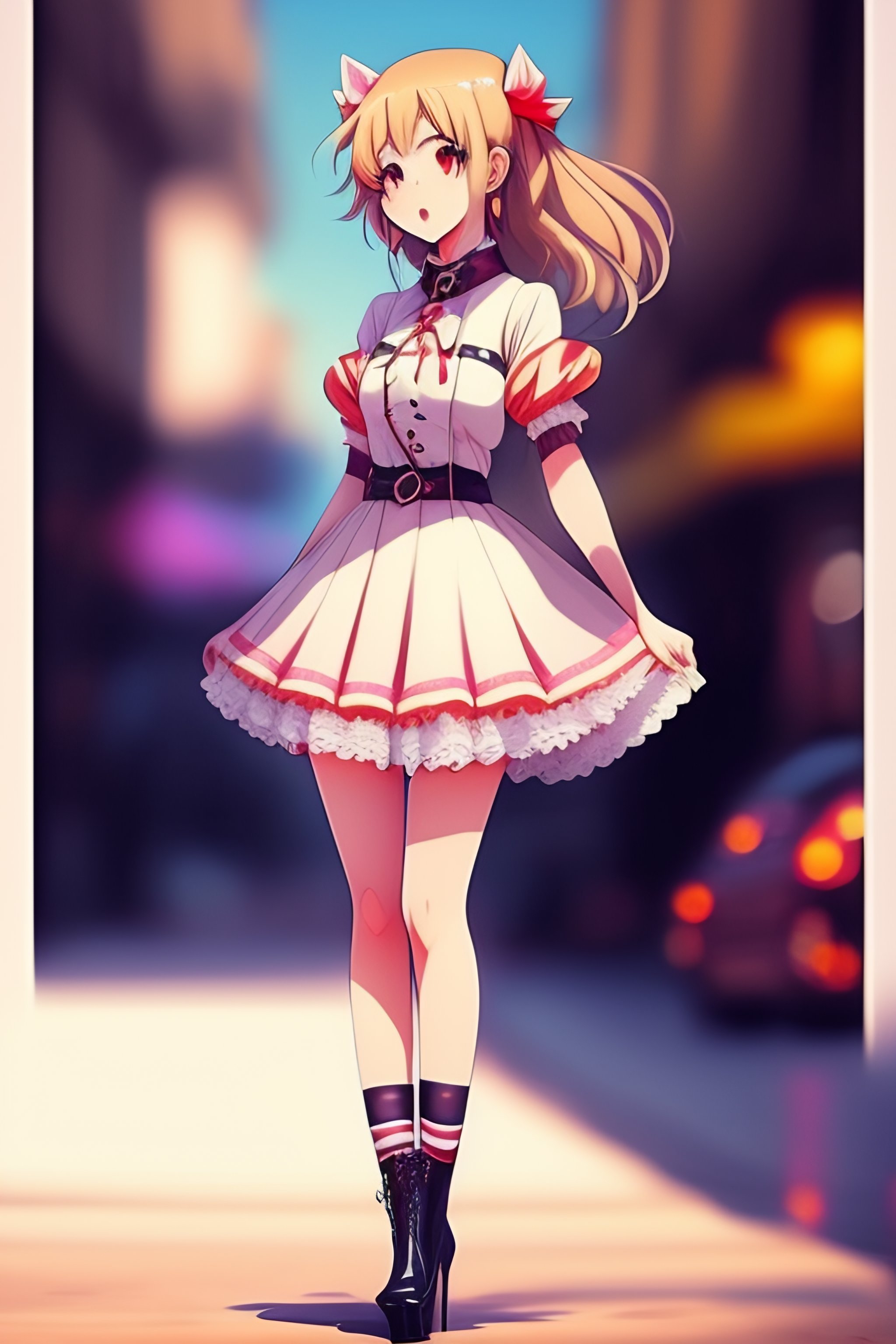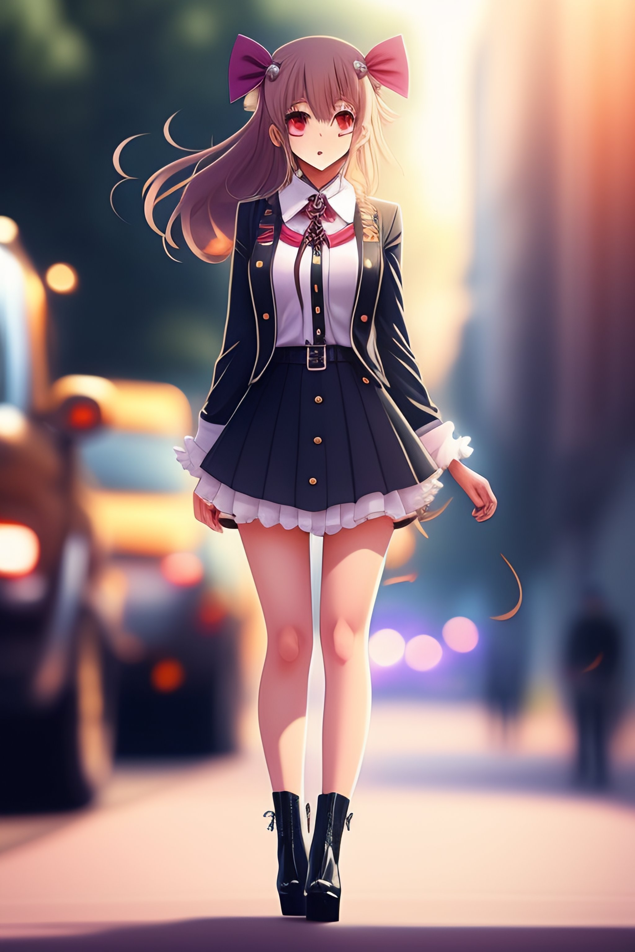 Anime girl wearing high heels for the first time, uncertainty, funny, friend tries to help, laugh, having a good time, funny situation, masterpiece art, detalied art
