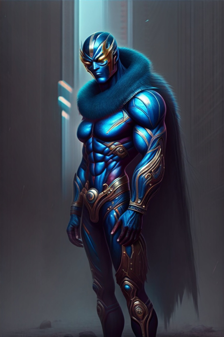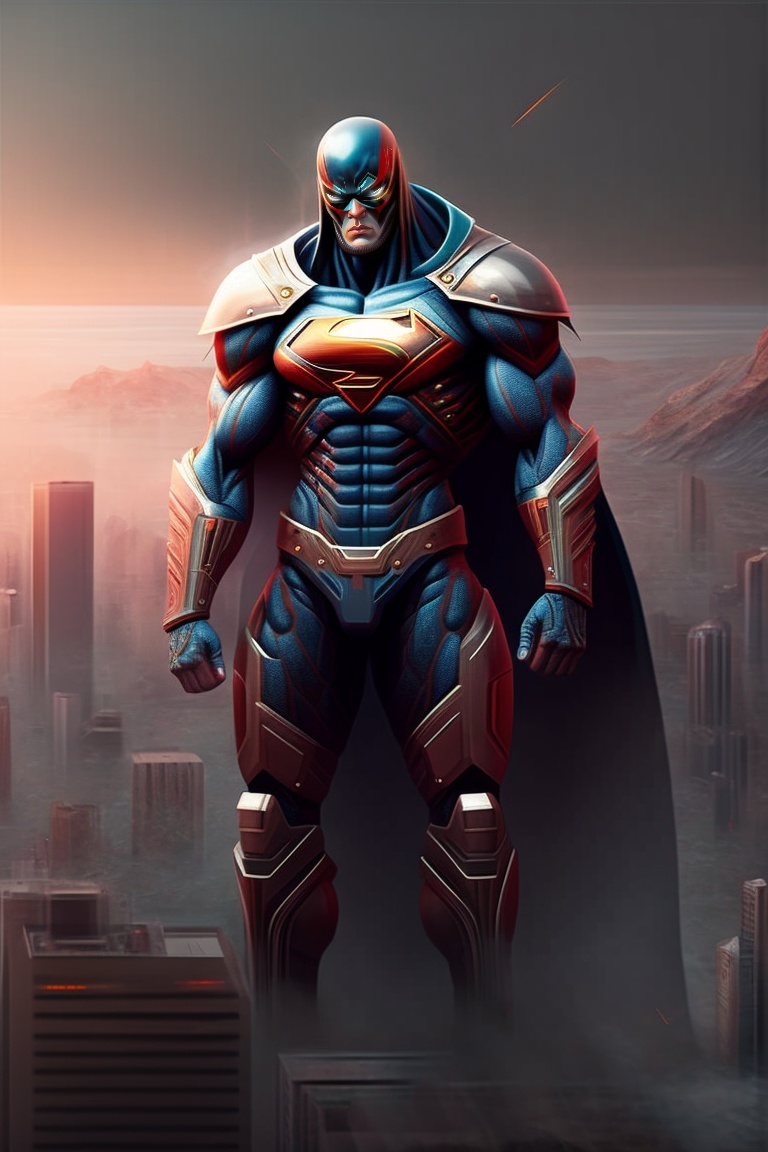 (Mega Wolf, a superhero with a wolf mask, stands on the roof of a tall building, preparing for a new adventure.)