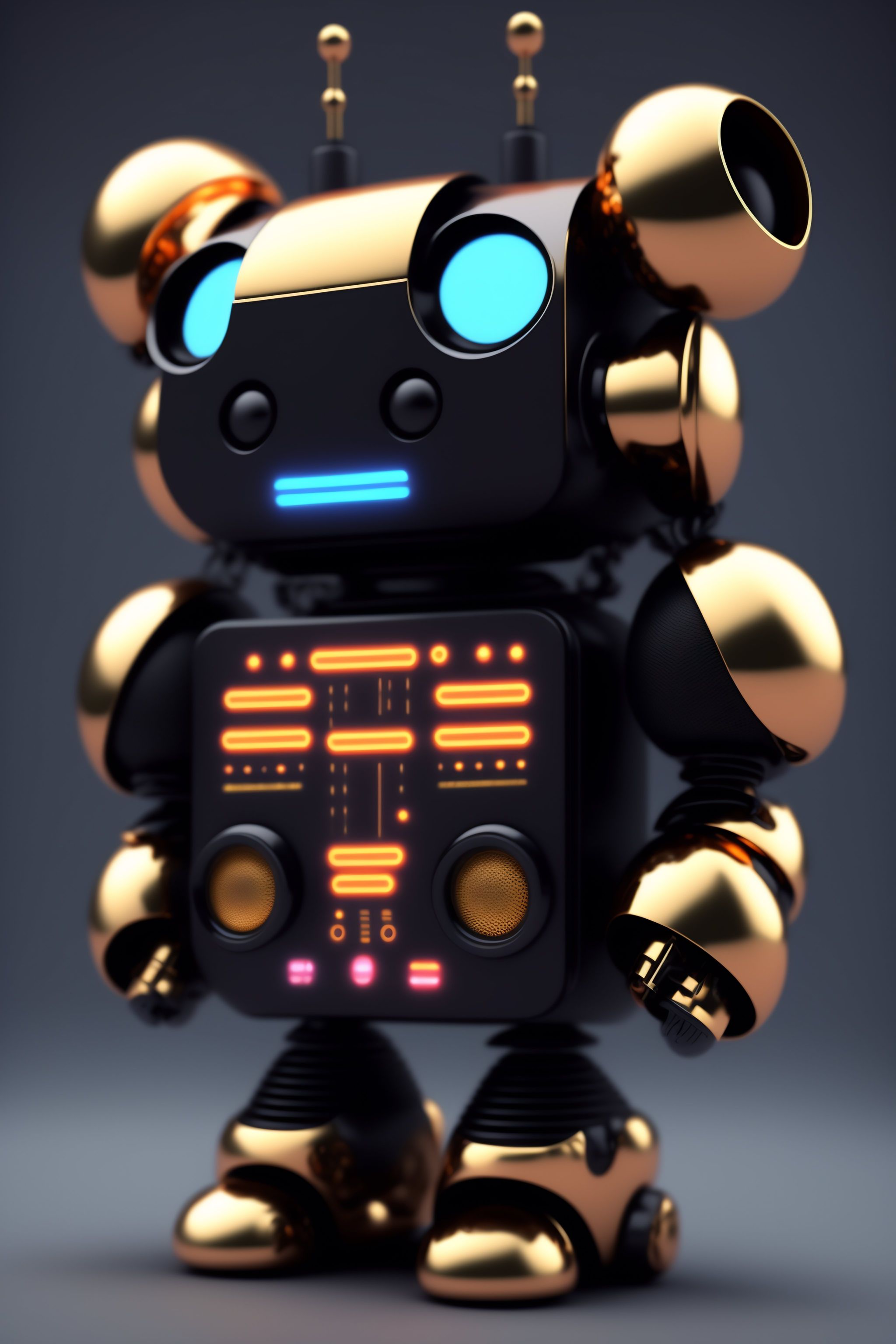 A very cute robot with a lcd screen for a face made from modular synthesizers, analog synthesizer robot, c4d render