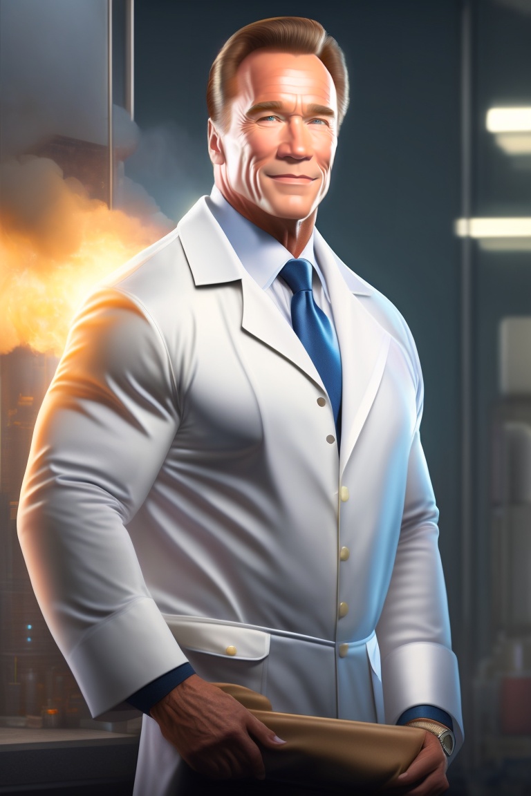 wearing a scientist's lab coat