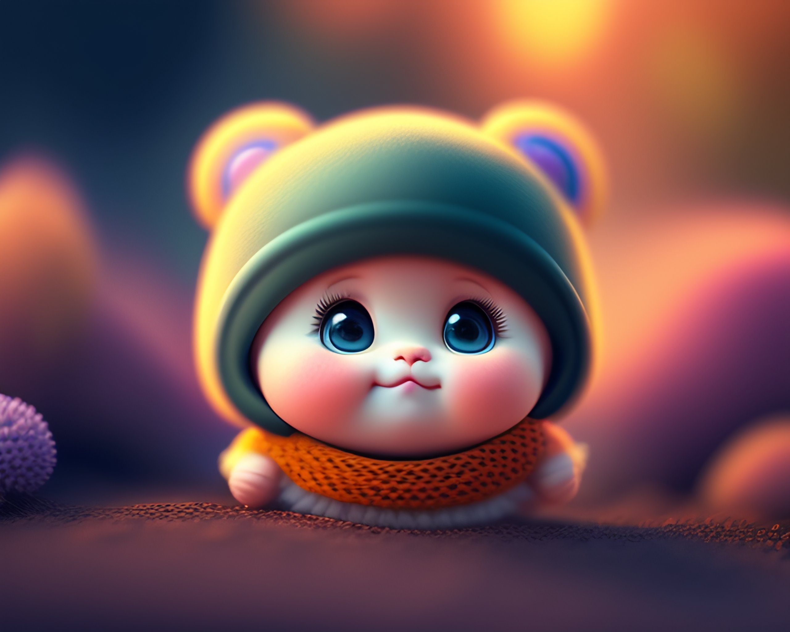 Make a small, cute, adorable, picture of baby character, the image must be smooth, soothing to eyes, and give happy vibes