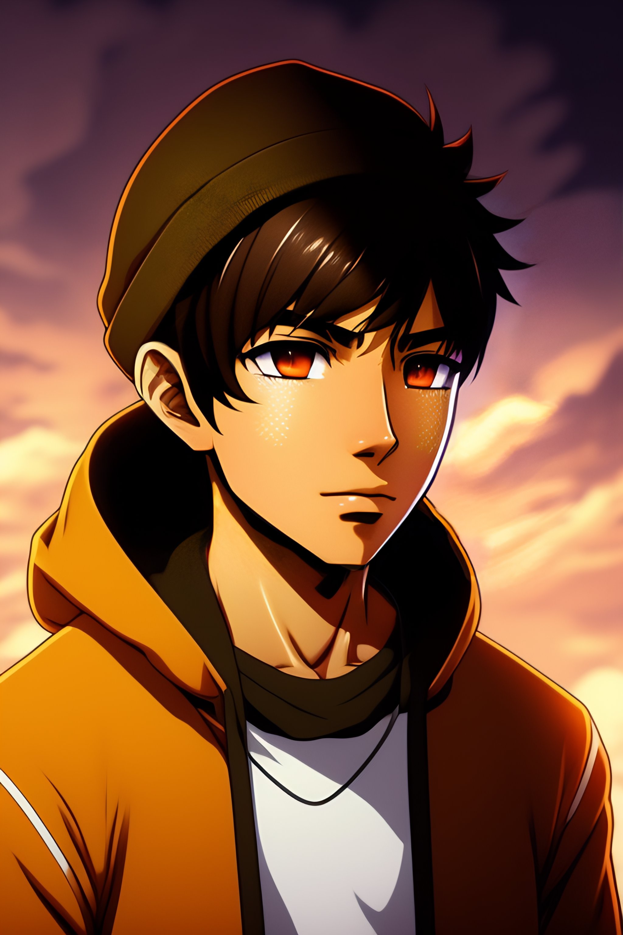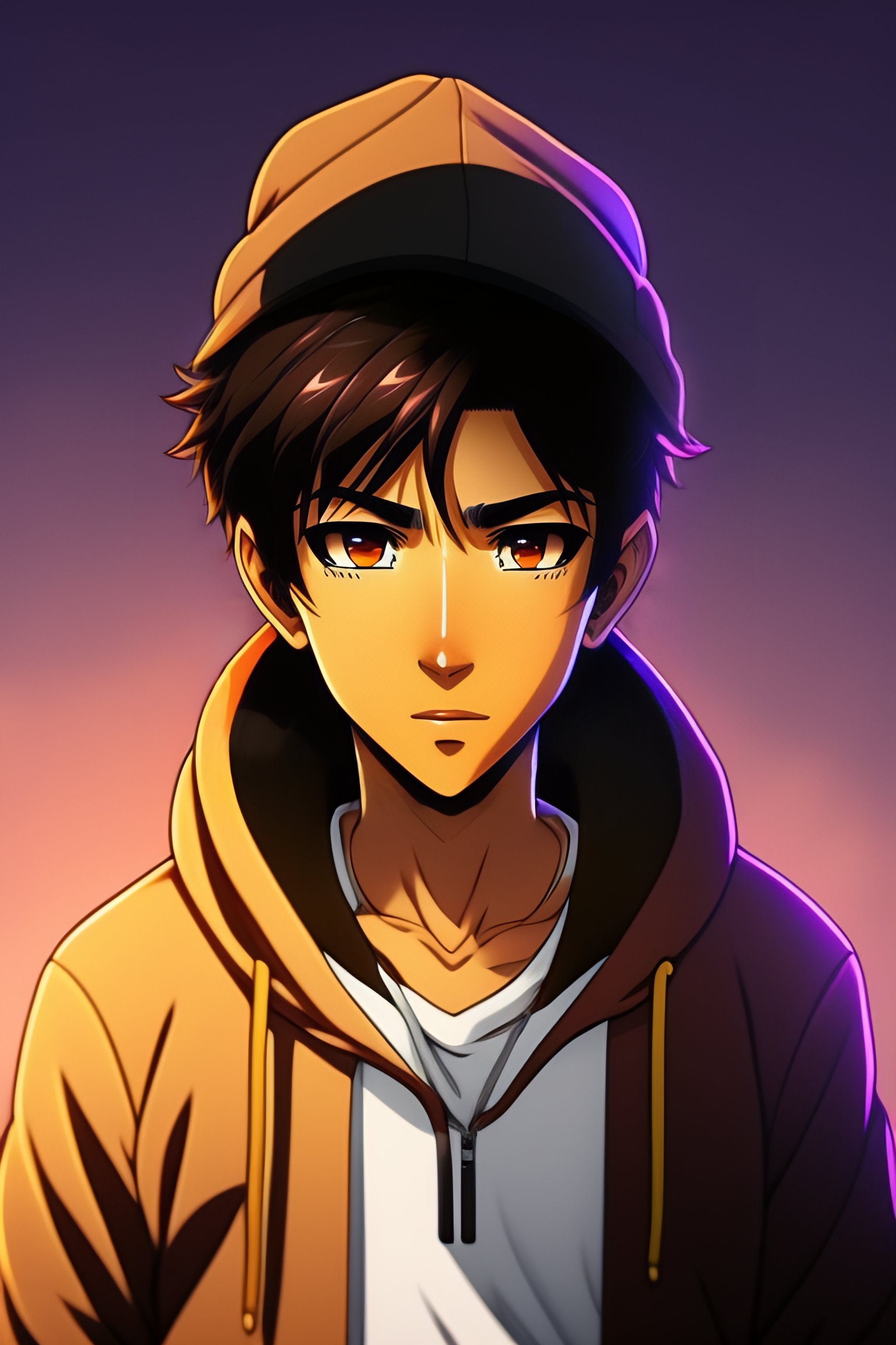Anime brown guy, indian, light brown skin, brown face, hoodie, light brown skin, hacker, no expression, no emotion, no background, anime style, manga, cartoon, anime