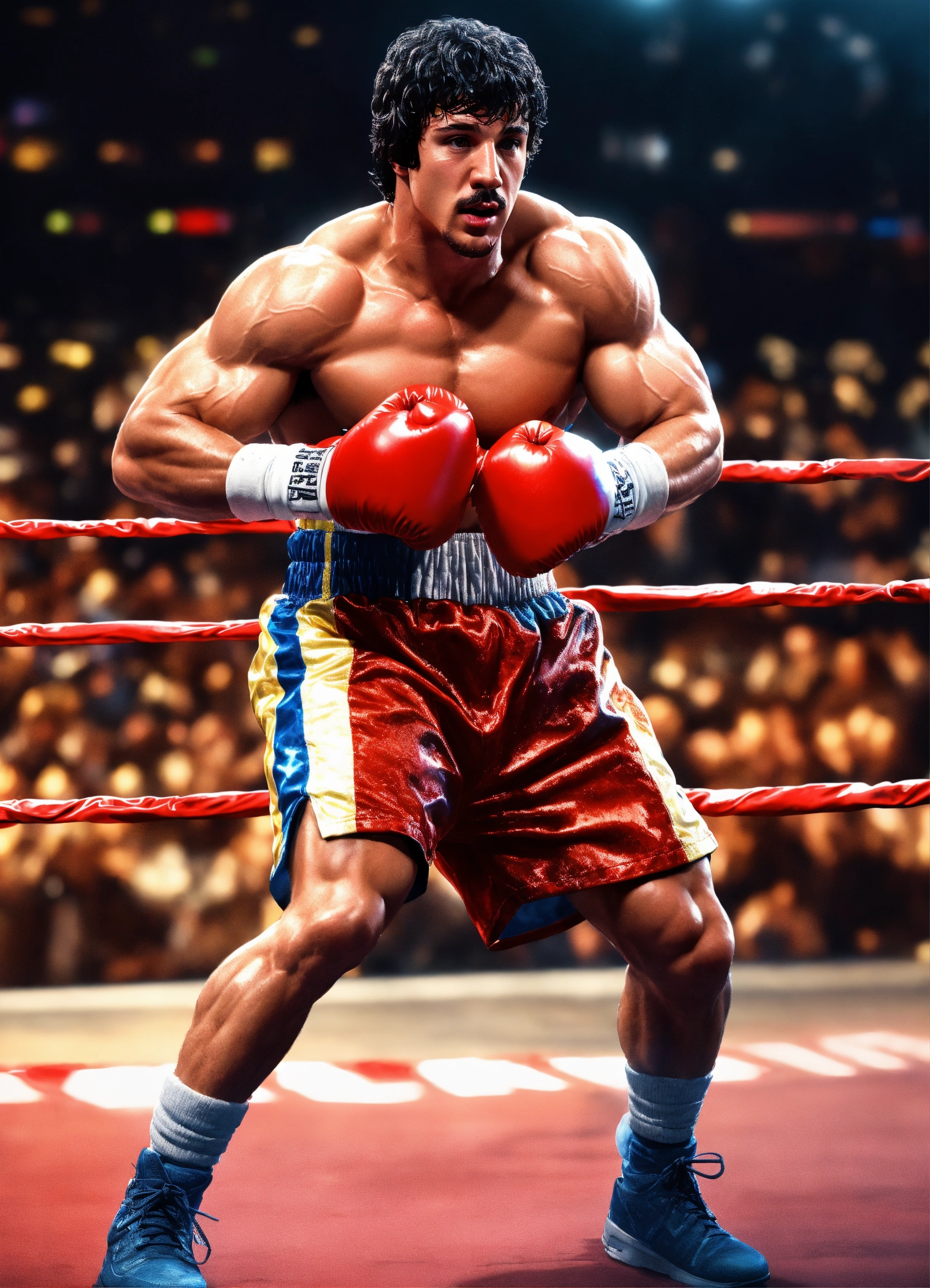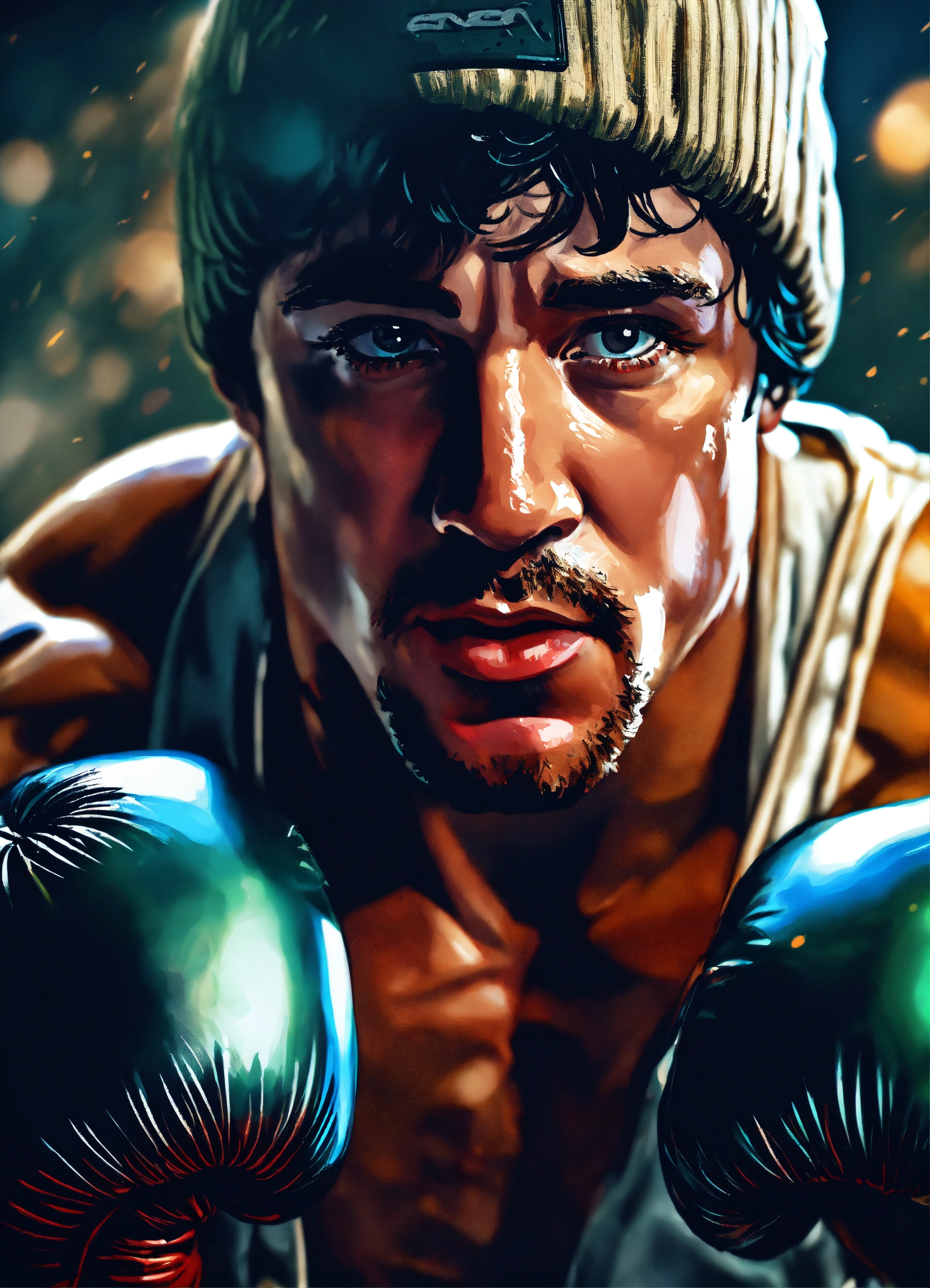Rocky balboa, derek laufman style, chibi, action shot, digital painting, active pose, soft lighting, extremely detailed, high contrast colors, 8k resolution, high quality image, professional vector, high detail, mysterious, ultra hd, realistic, vivid colors, highly detailed, uhd drawing, pen and ink, perfect composition, beautiful detailed intricate insanely detailed octane render trending on artstation, 8k artistic photography, photorealistic concept art, soft natural volumetric cinematic perfect light