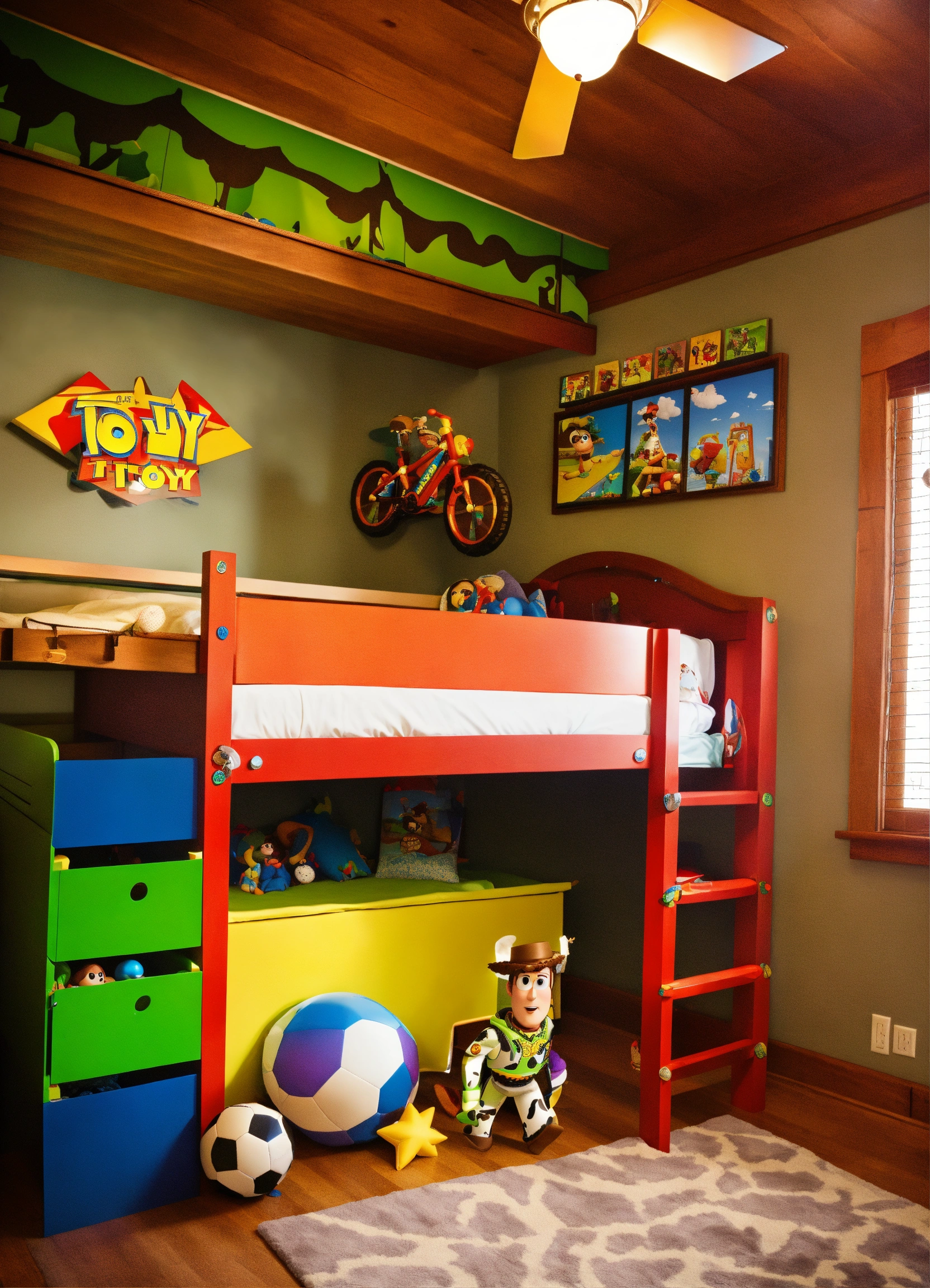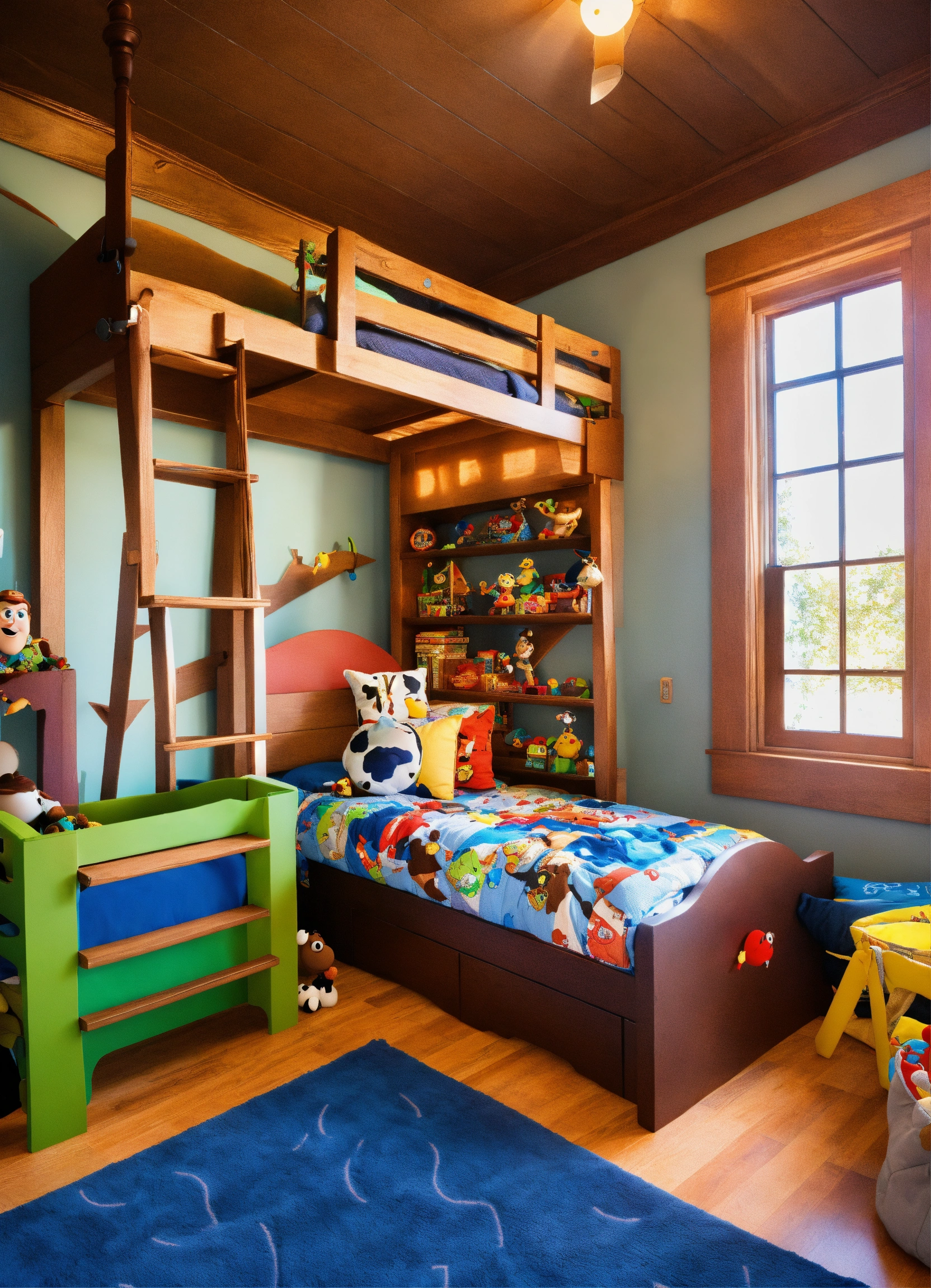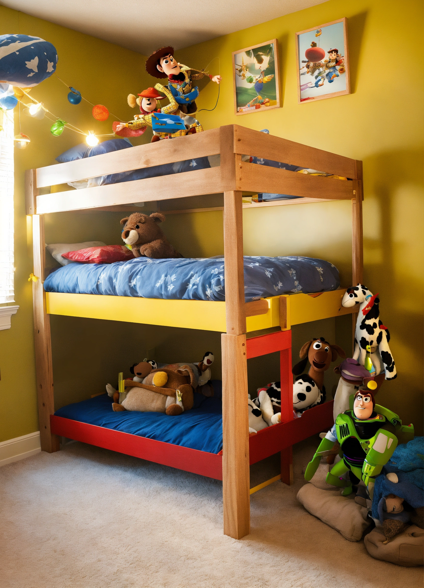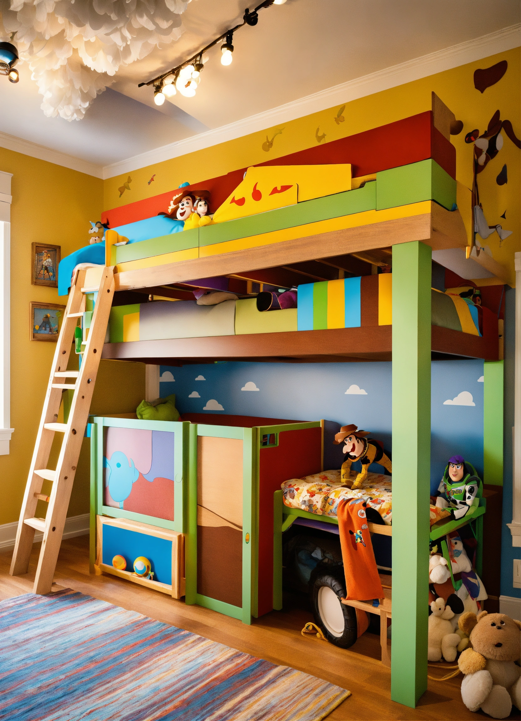 Create an over-the-top elegant toy story loft bed pixar inspired