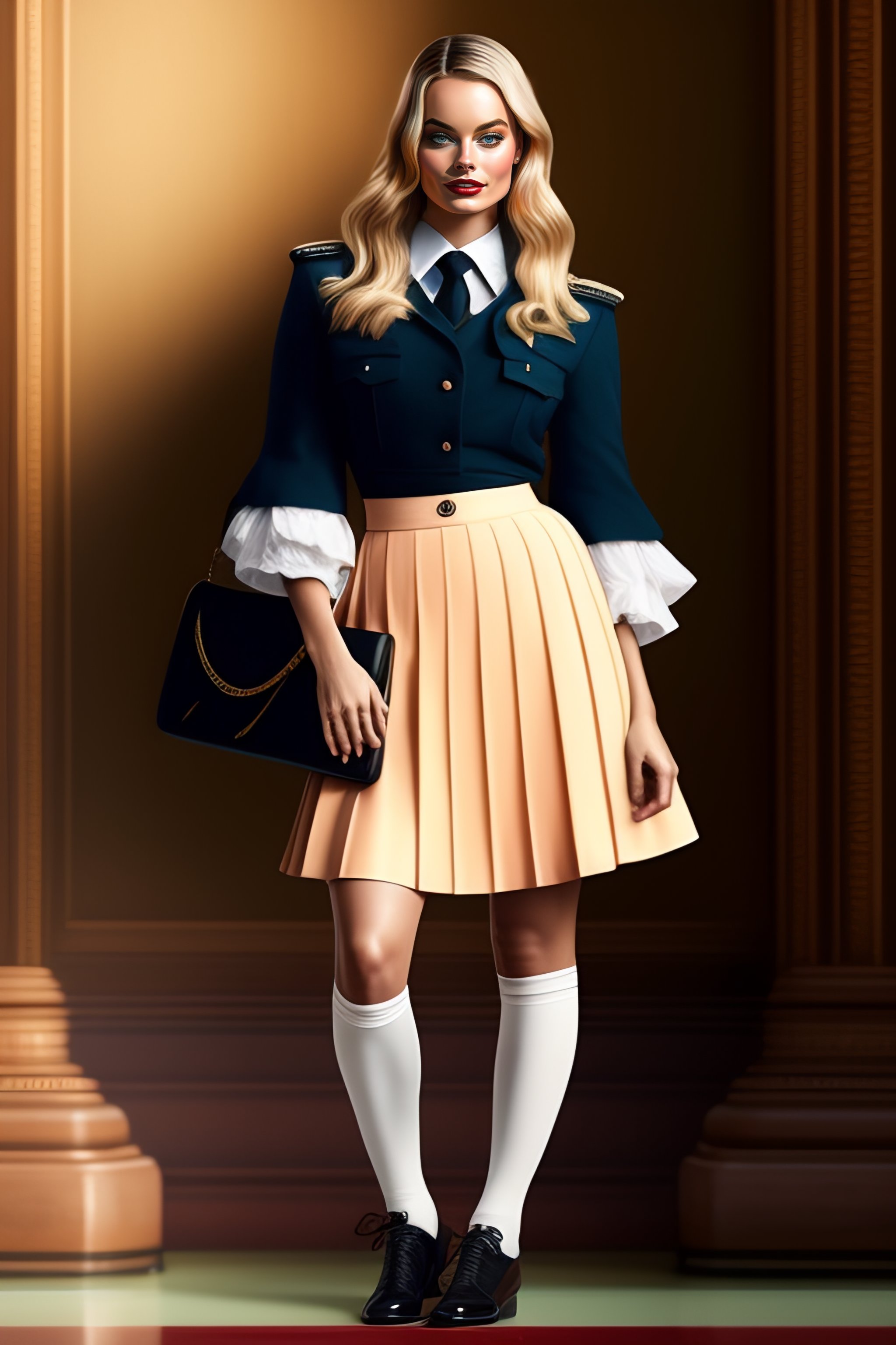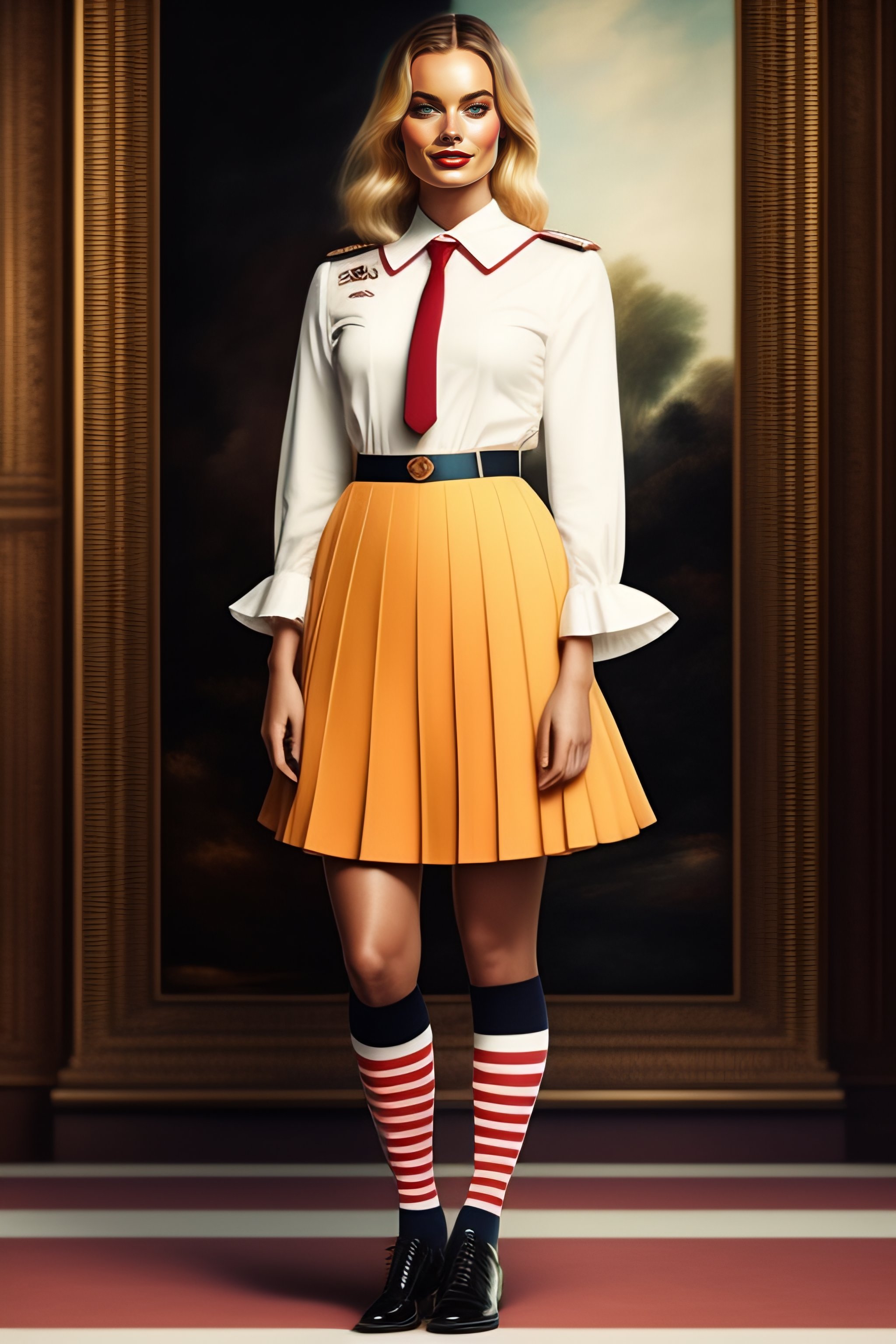Margot robbie - un, school uniform, seifuku, pleated miniskirt, overknee socks. by rembrandt 1 6 6 7, illustration