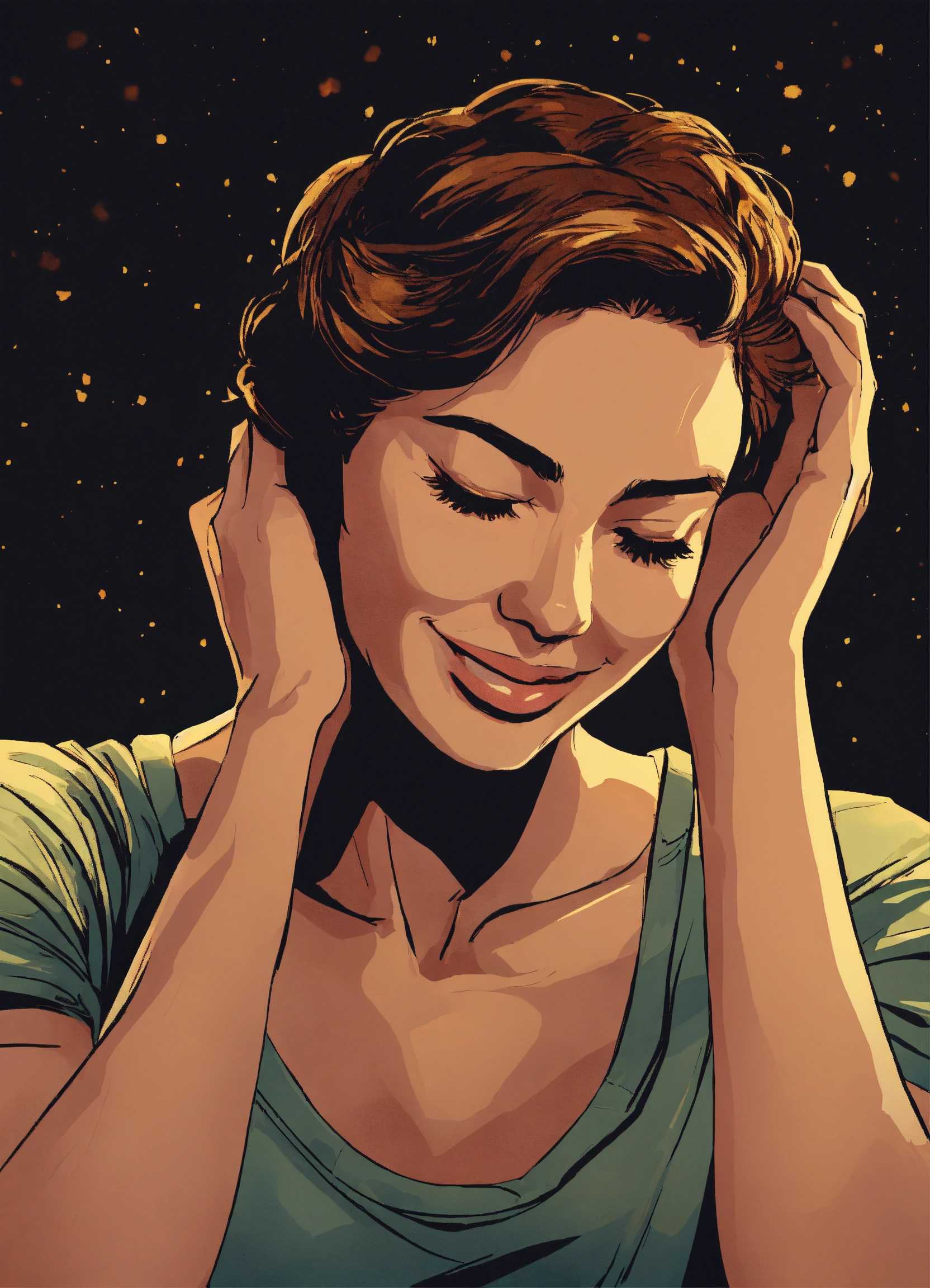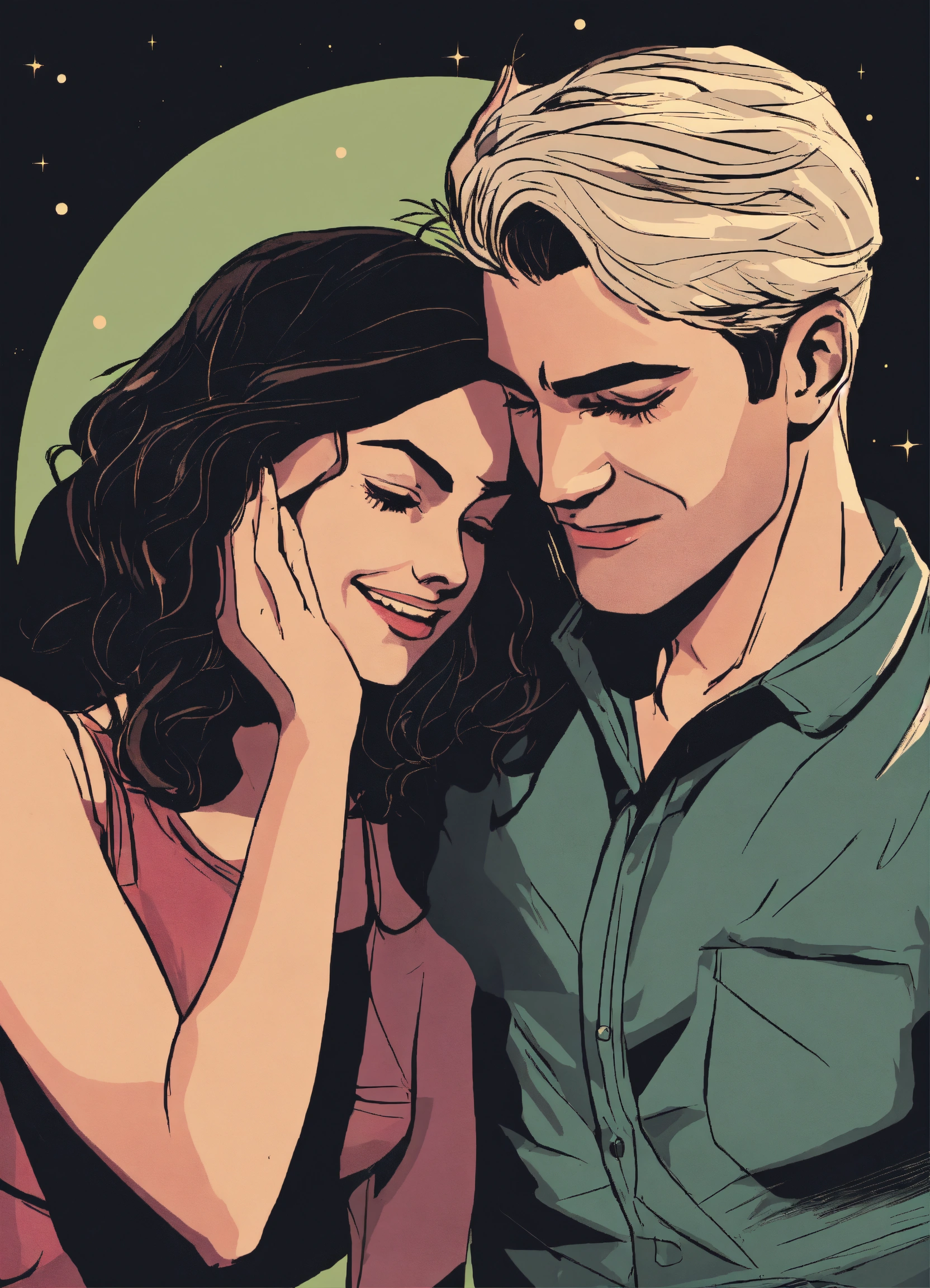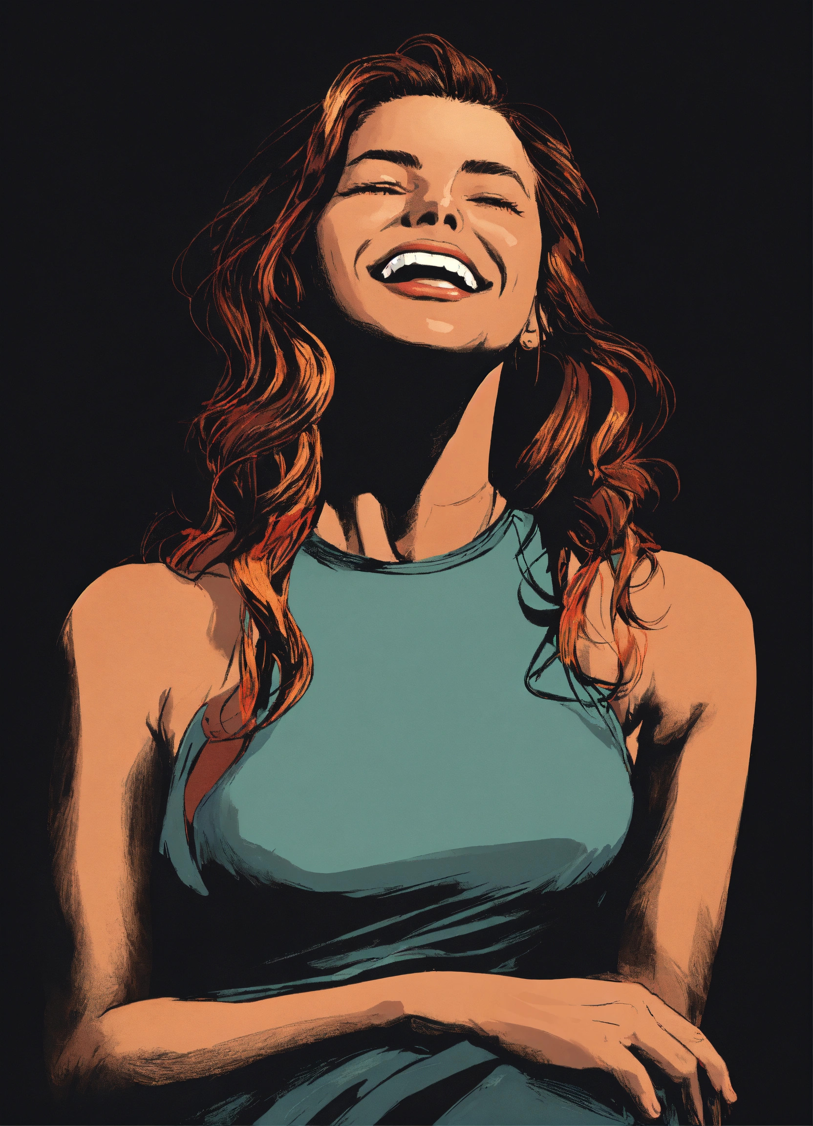 Wikihow art, vector, fit and smiling woman, far from her a remorseful man with his hands on his head looking down, black background