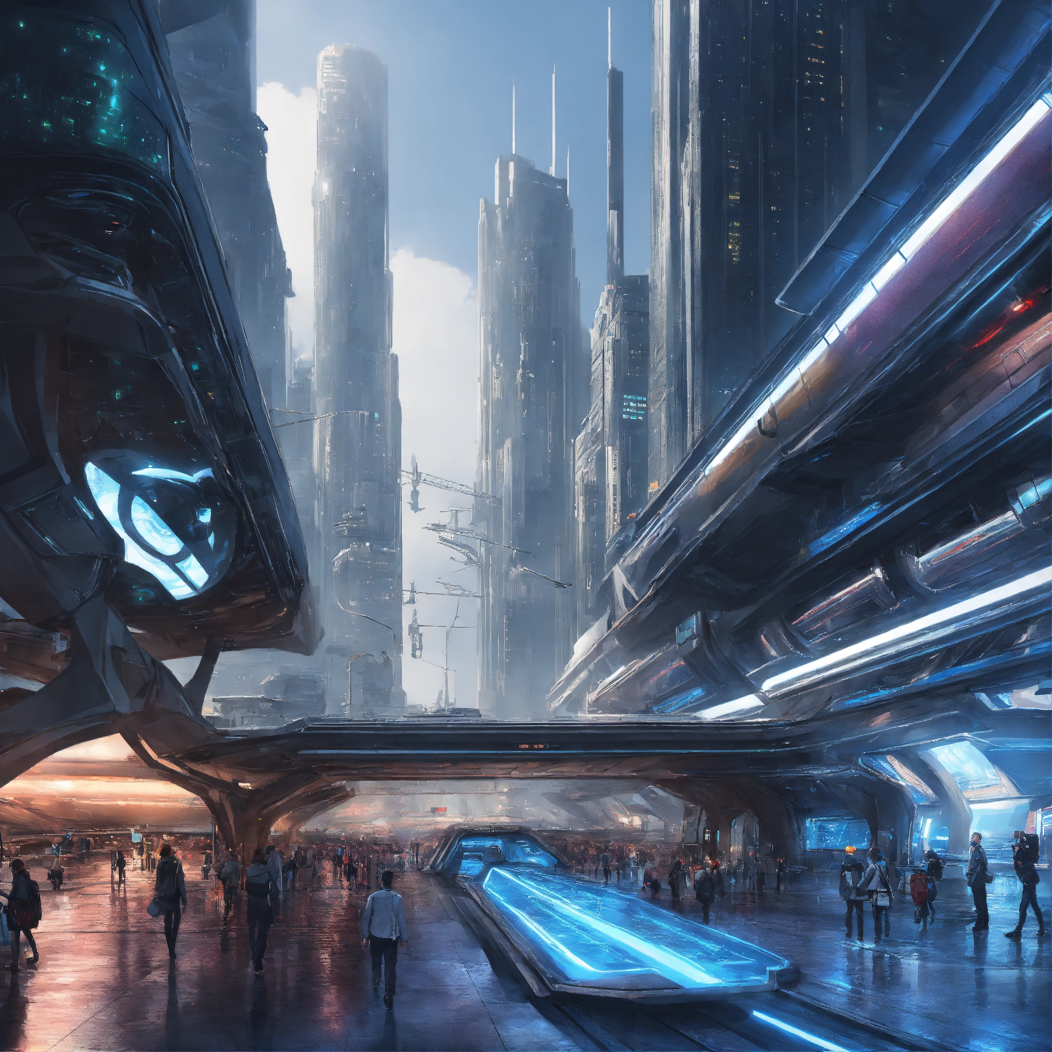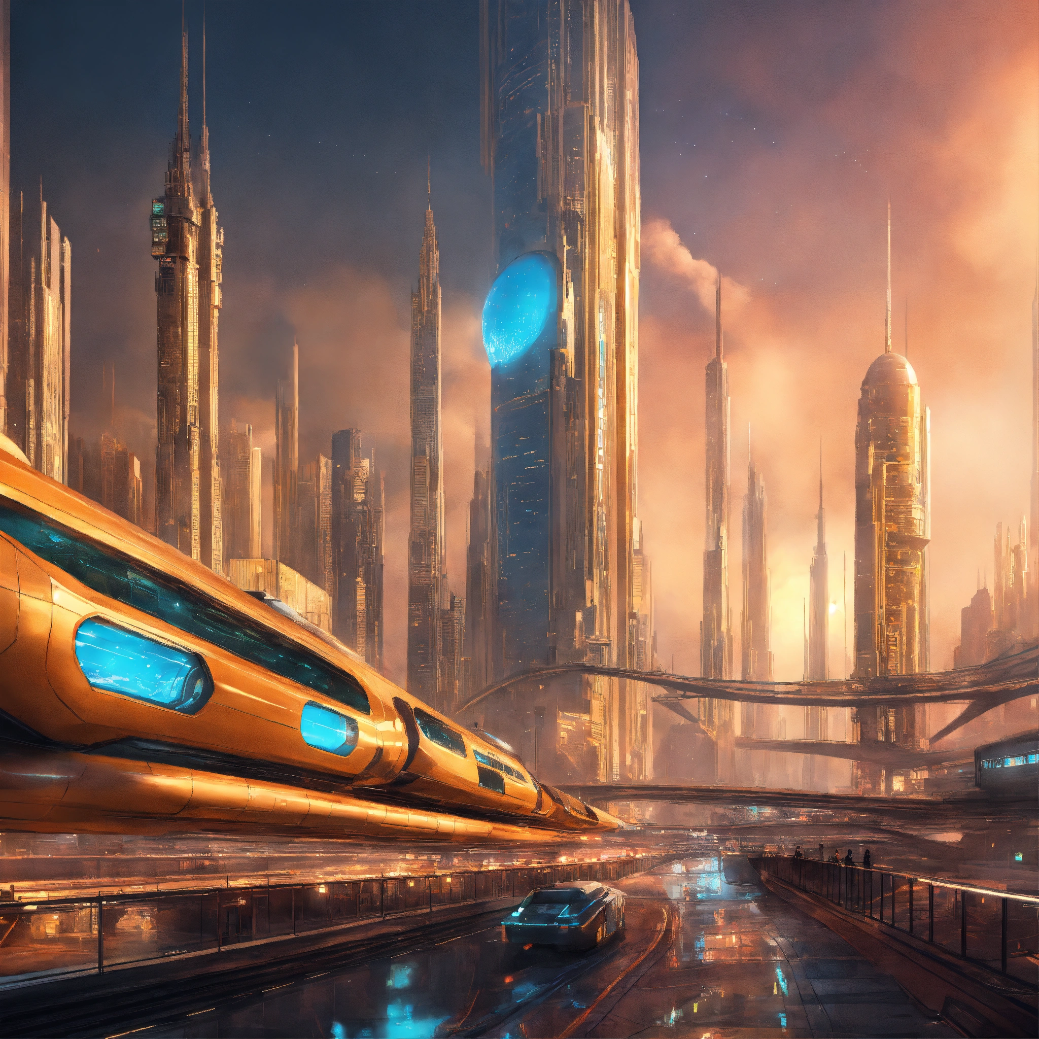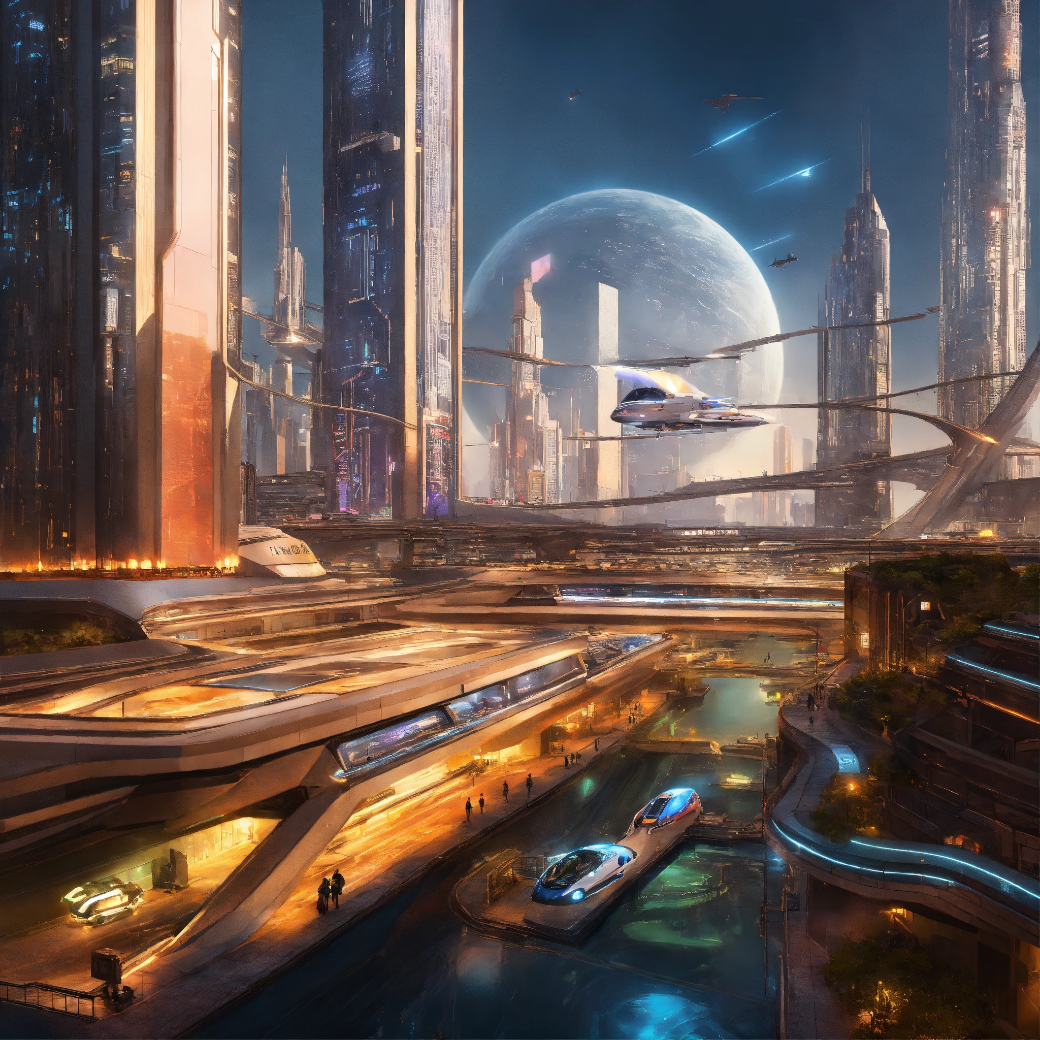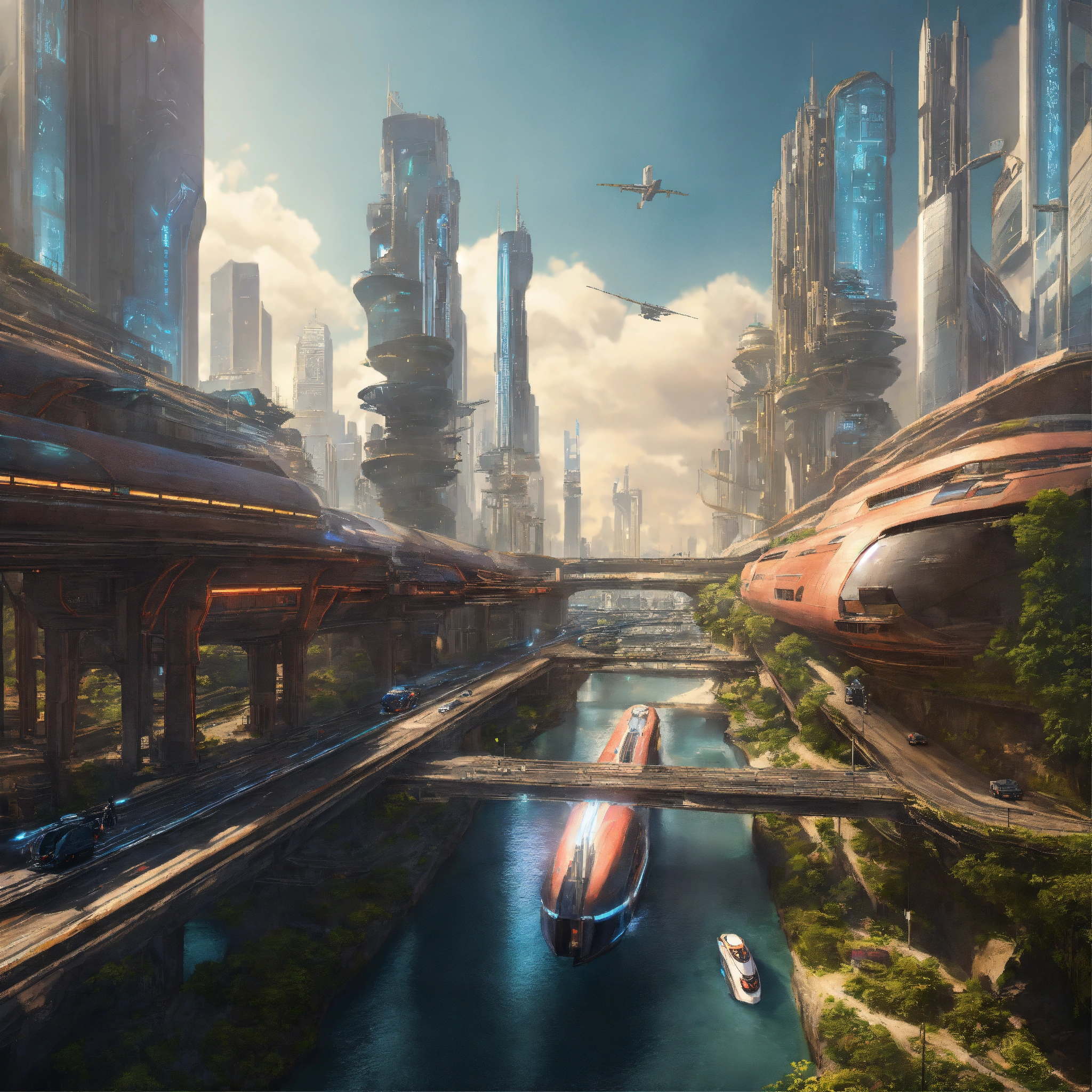 Futuristic city with advanced transportation systems