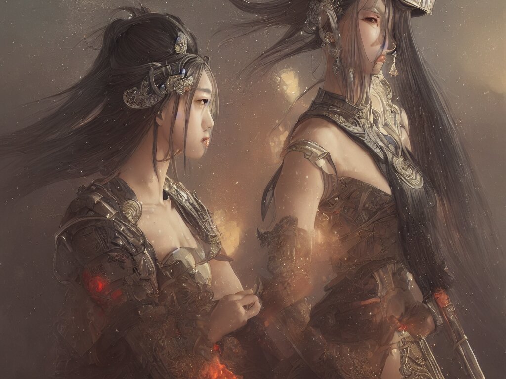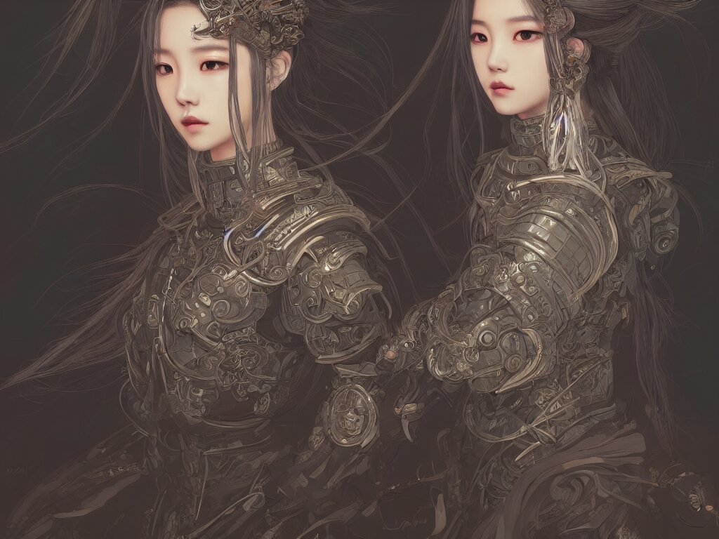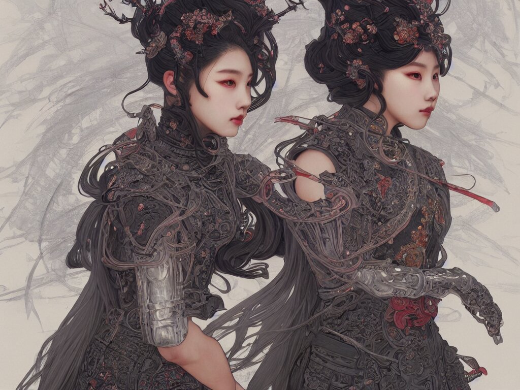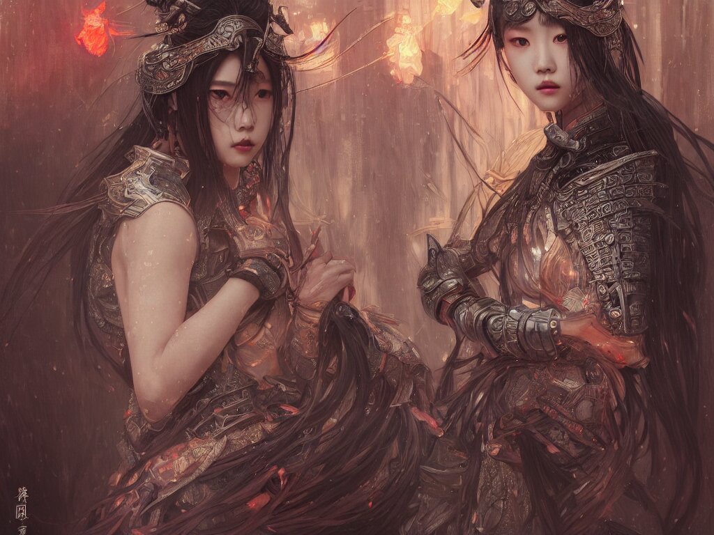 Portrait jisoo blackpink, grey hair armored samurai clothes, in fire japanese temple wet night, ssci - fi and fantasy, intricate and very very beautiful and elegant, highly detailed, digital painting, artstation, concept art, smooth and sharp focus, illustration, art by tian zi and wlop and alphonse mucha
