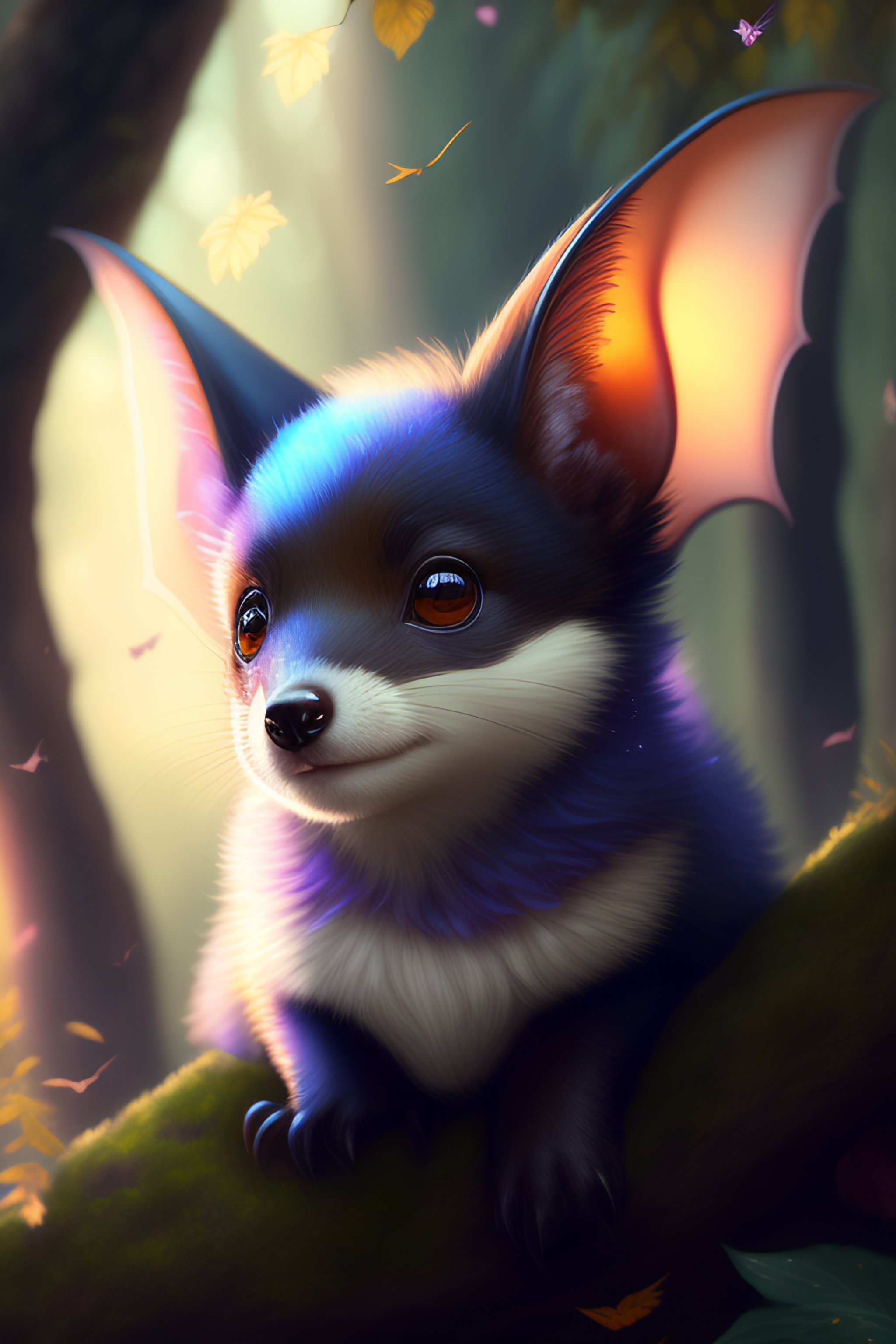 A cute bat in the dreamy forest, fantasy, dreamlike, 8 k resolution, hyper detailed, d & d, character design, digital painting, trending on artstation, sharp focus, illustration, art by artgerm, viktoria gavrilenko, hoang lap, fuji choko, steve zheng