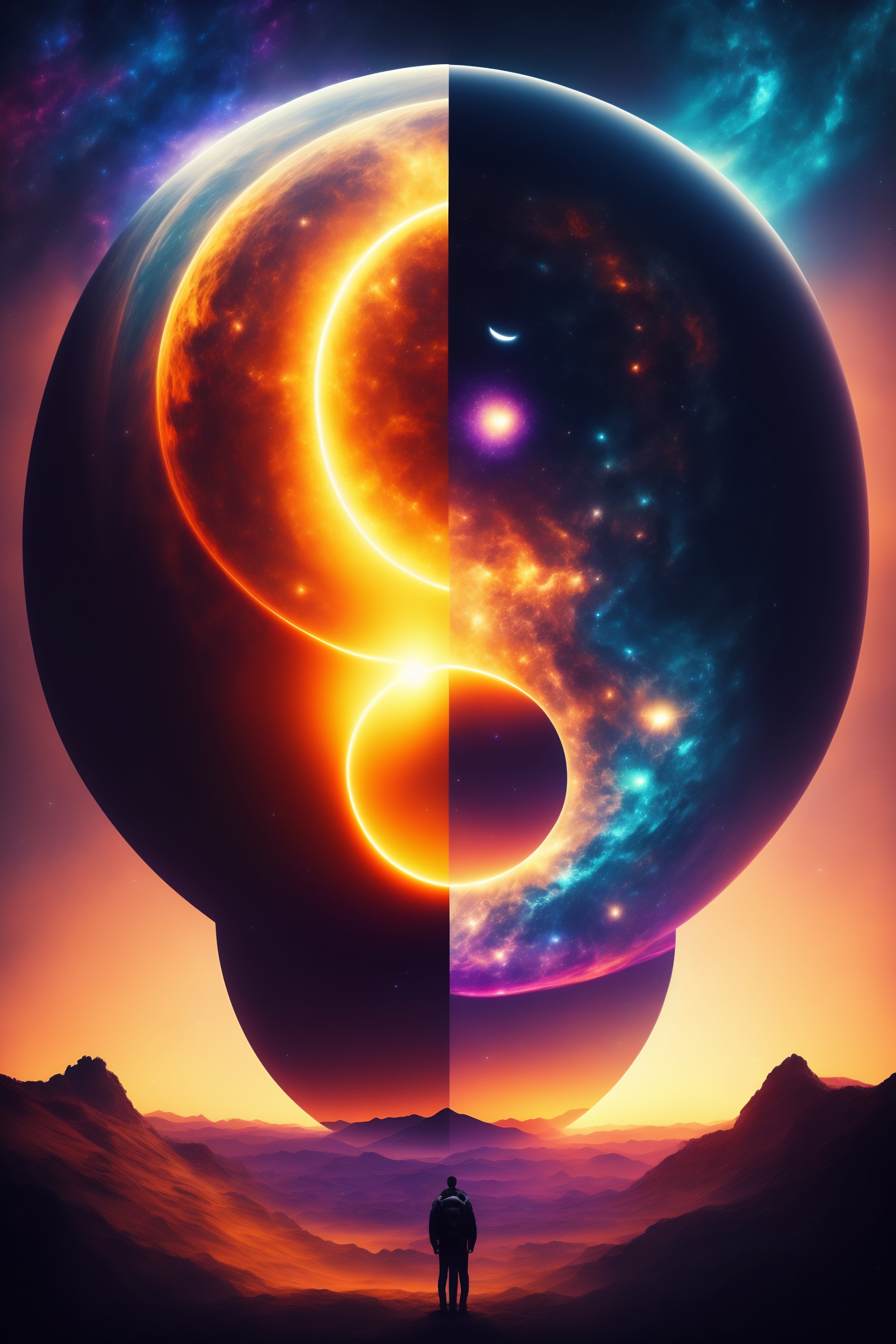 Reborn humans in another galaxy, alien, beautiful creature, creature, sun, moon, planets, galaxies, sunset, space