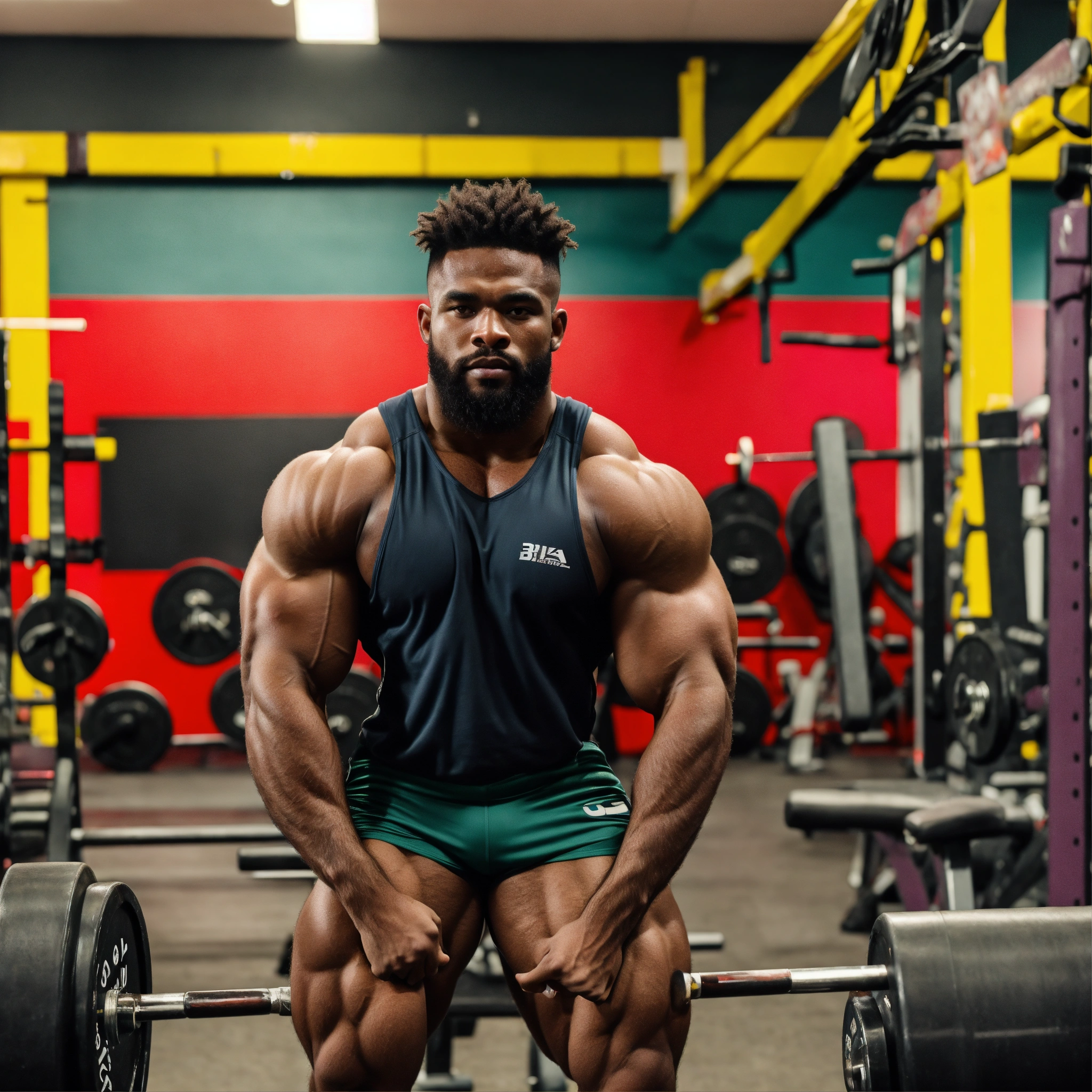 30-year-old hairy man with big muscles, bukayo saka, big bodybuilder, body like a wrestler, at the gym