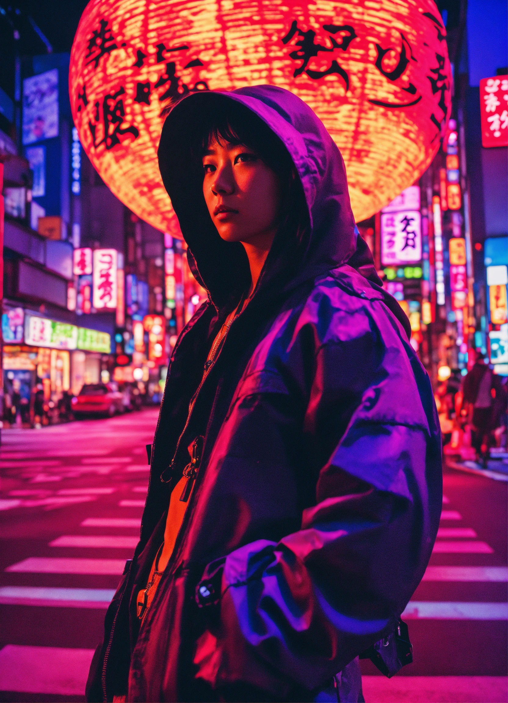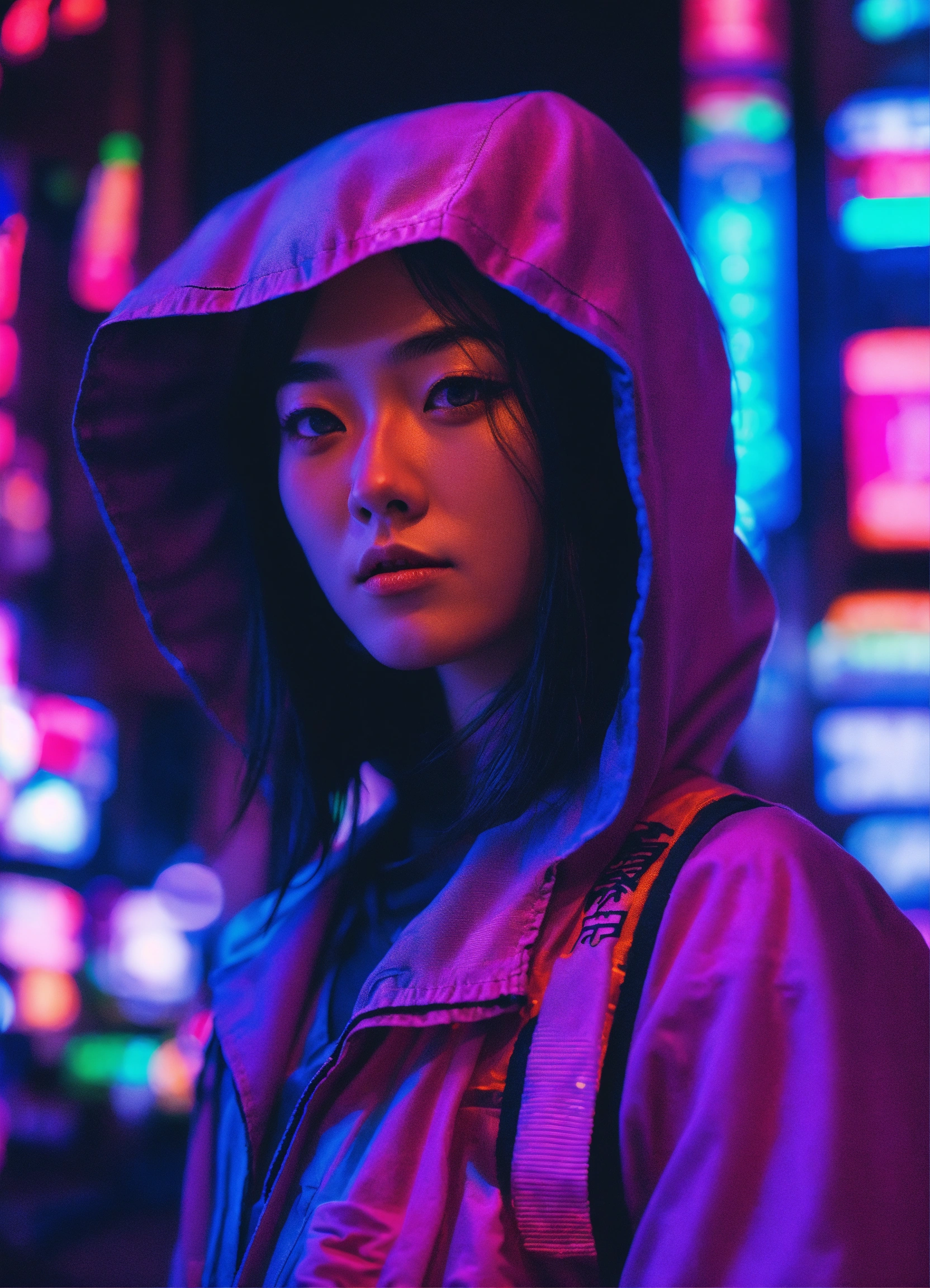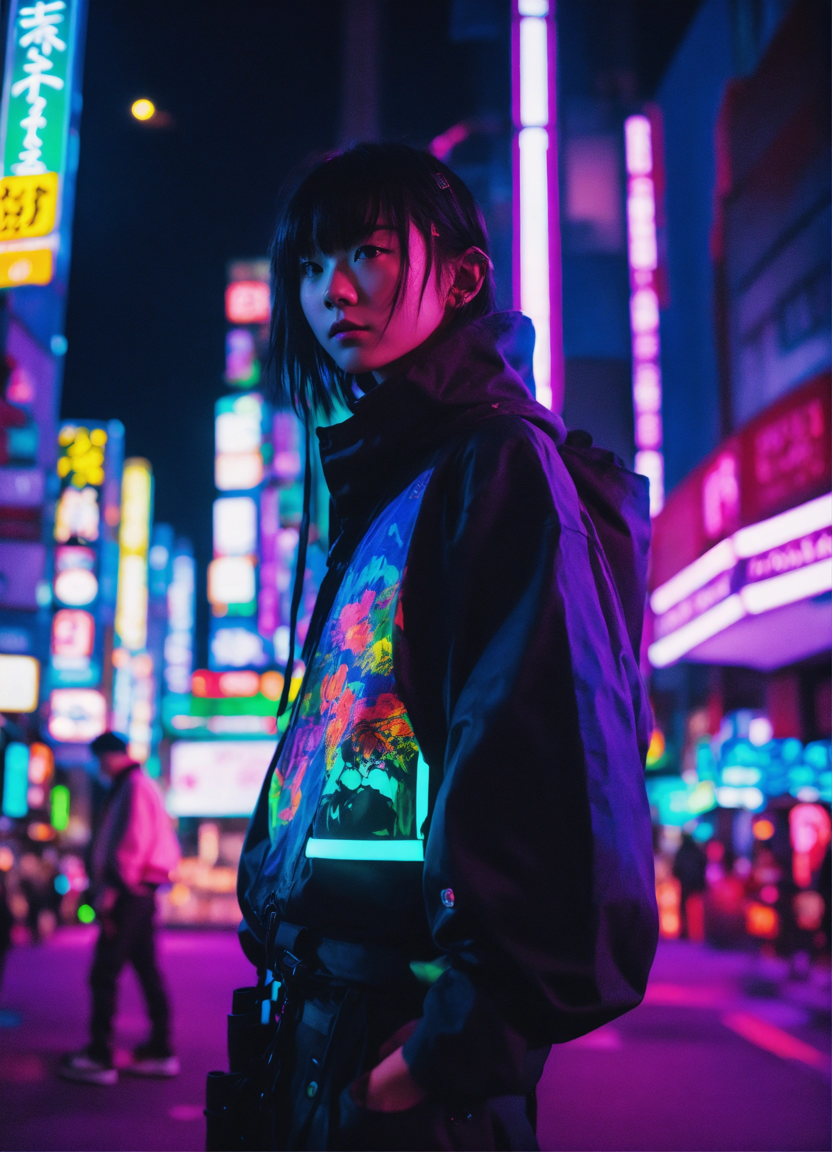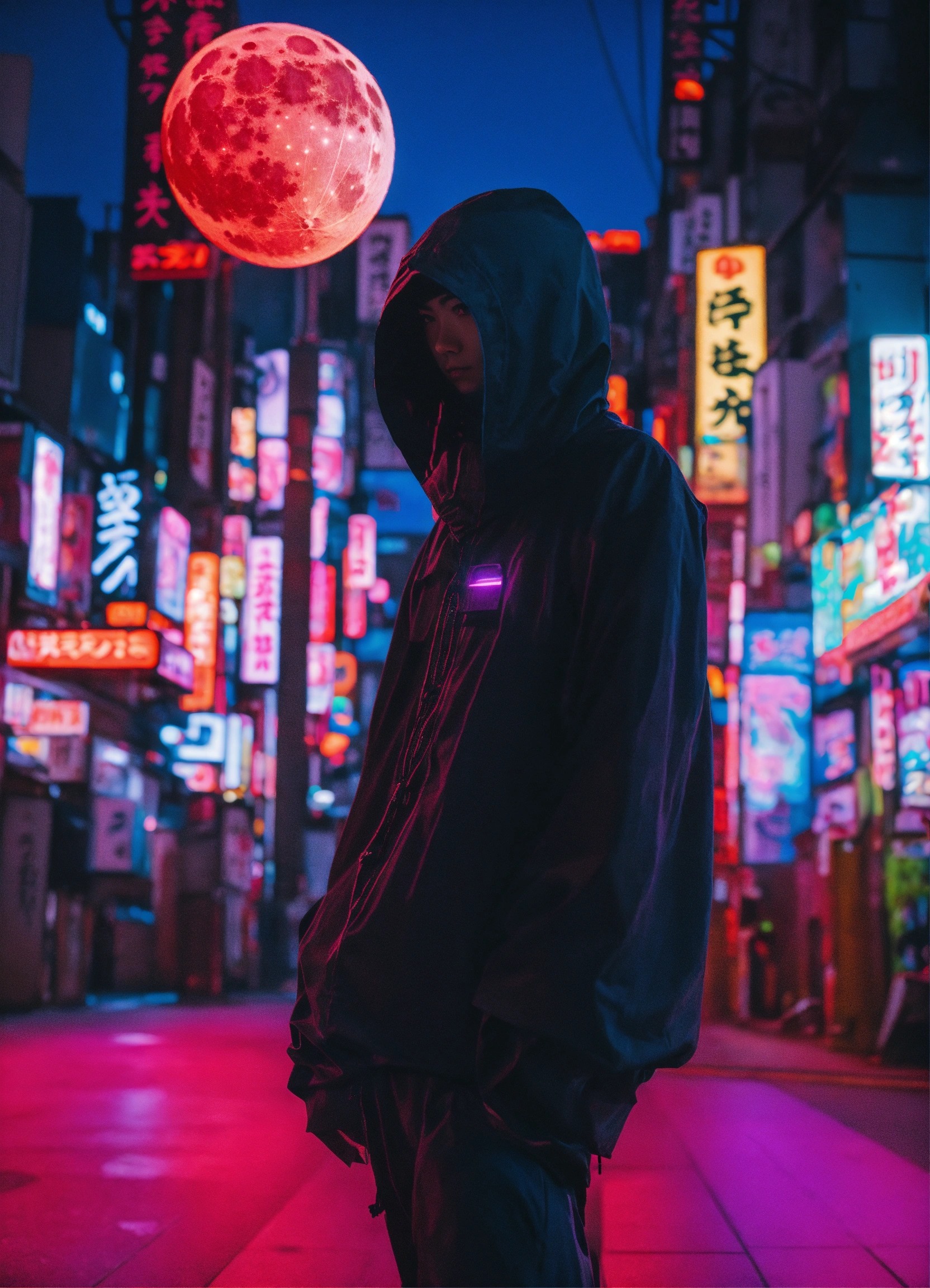 Photorealistic 3d portrait ninjas in dmt black light neon moon tokyo city night 35mm film, akira anime