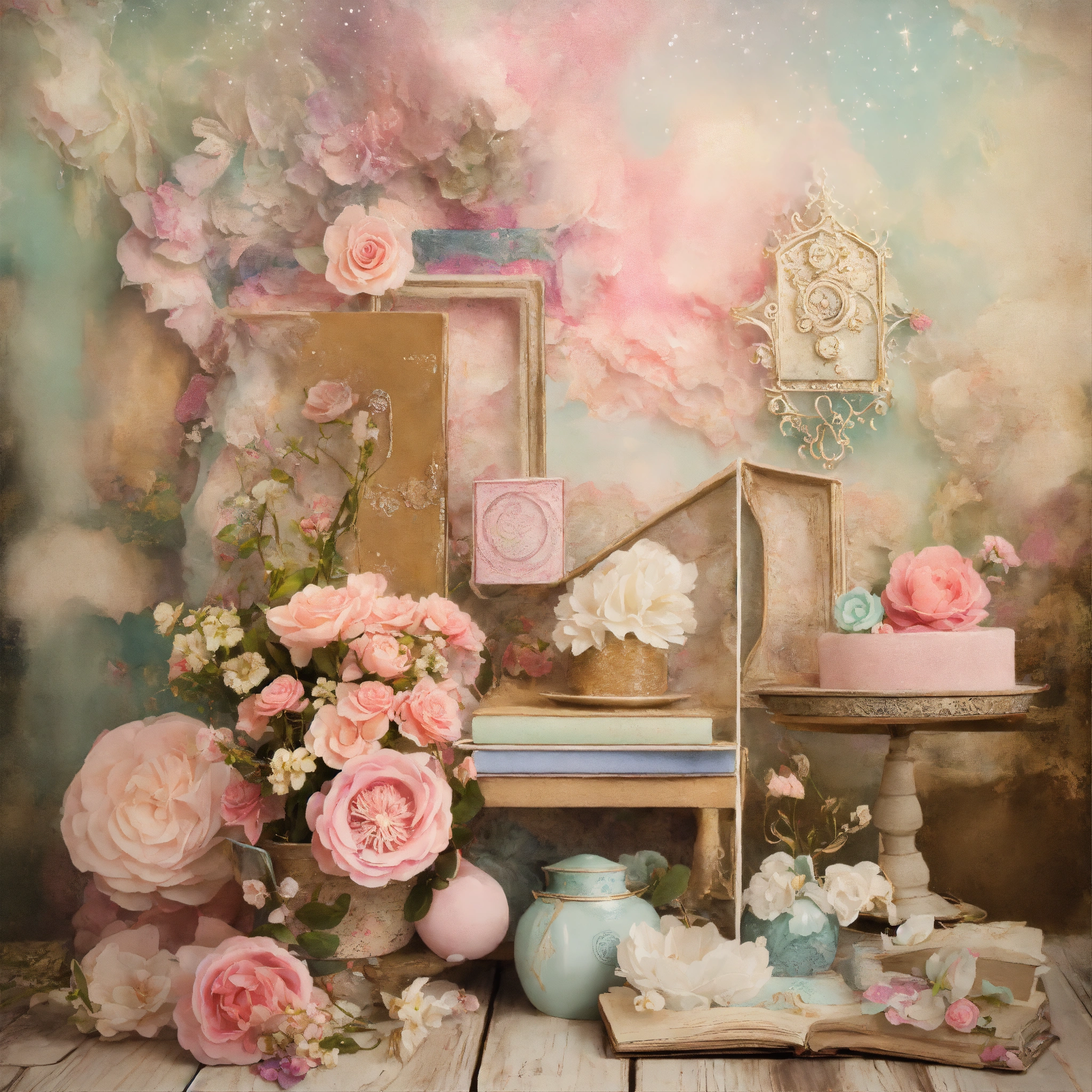 Shabby chic dreamy mist pastel junk journals tres chic swirling magical fairytale abstract art style