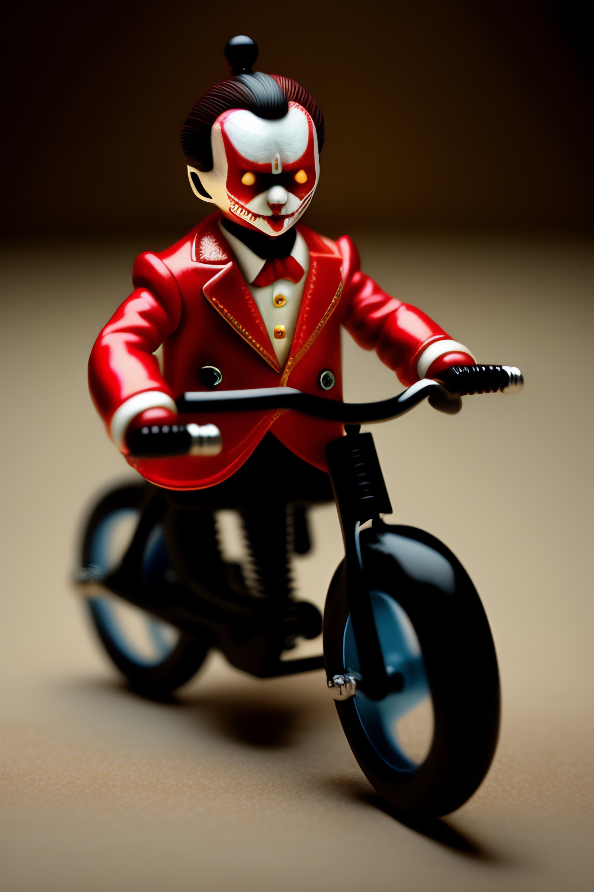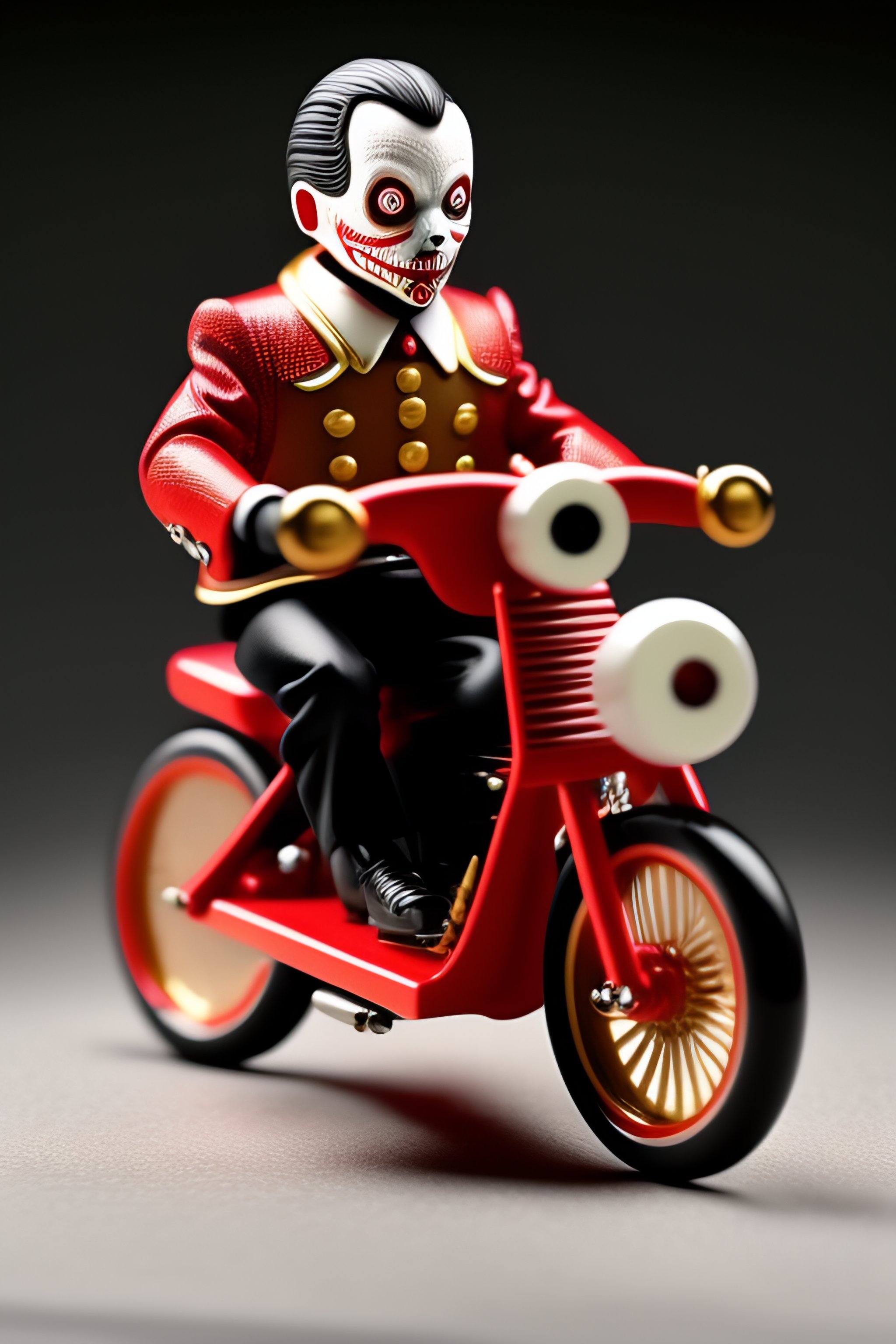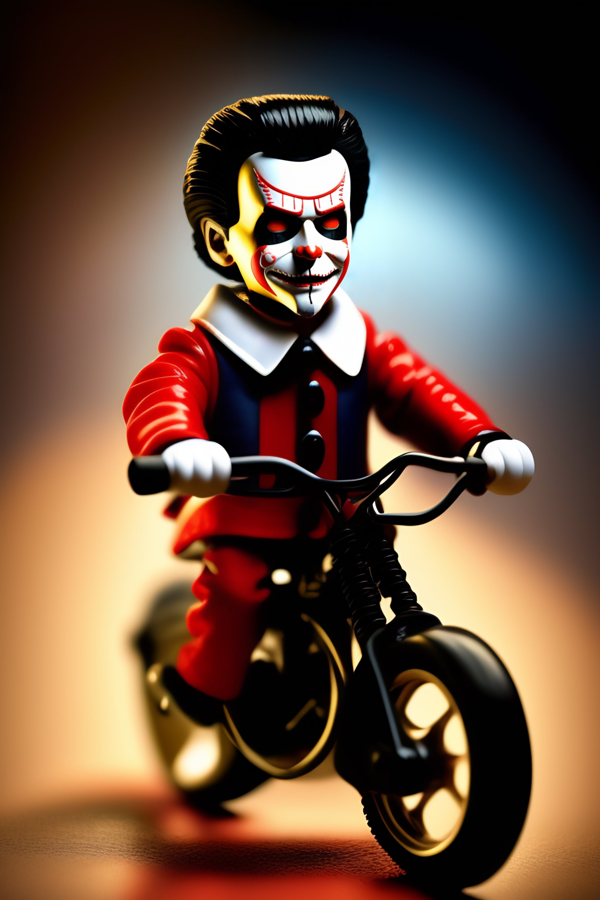 Billy the puppet from the movie saw drifting on his tricycle in motion, highly detailed and resoluted