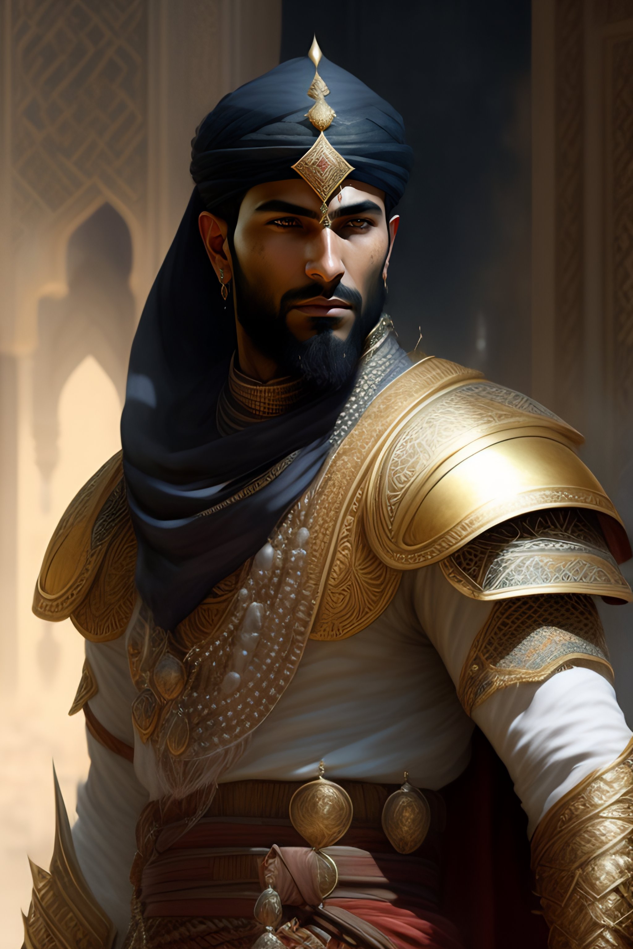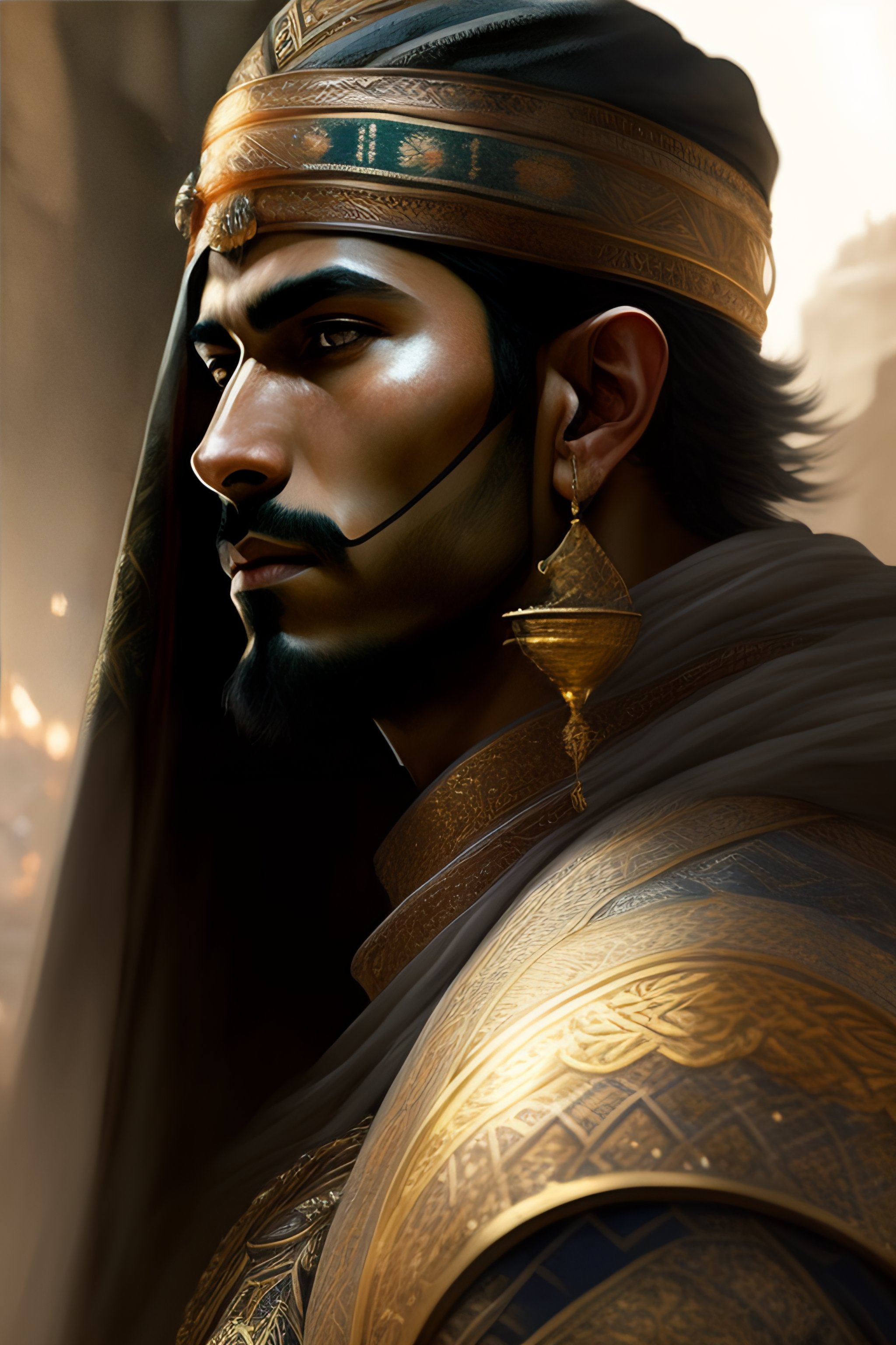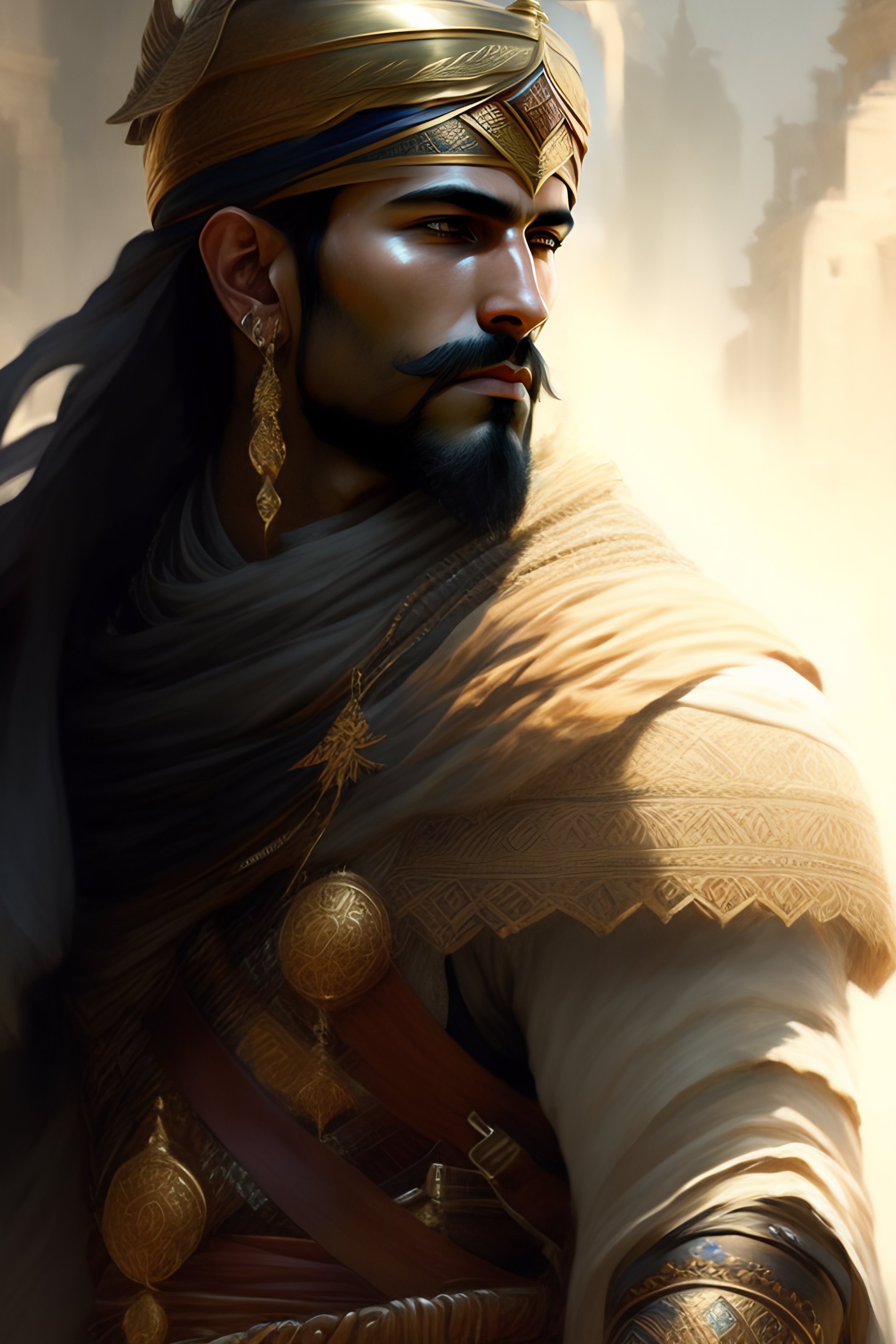 Portrait of arab warrior, pen and ink, intricate line drawings, by craig mullins, ruan jia, kentaro miura, greg rutkowski