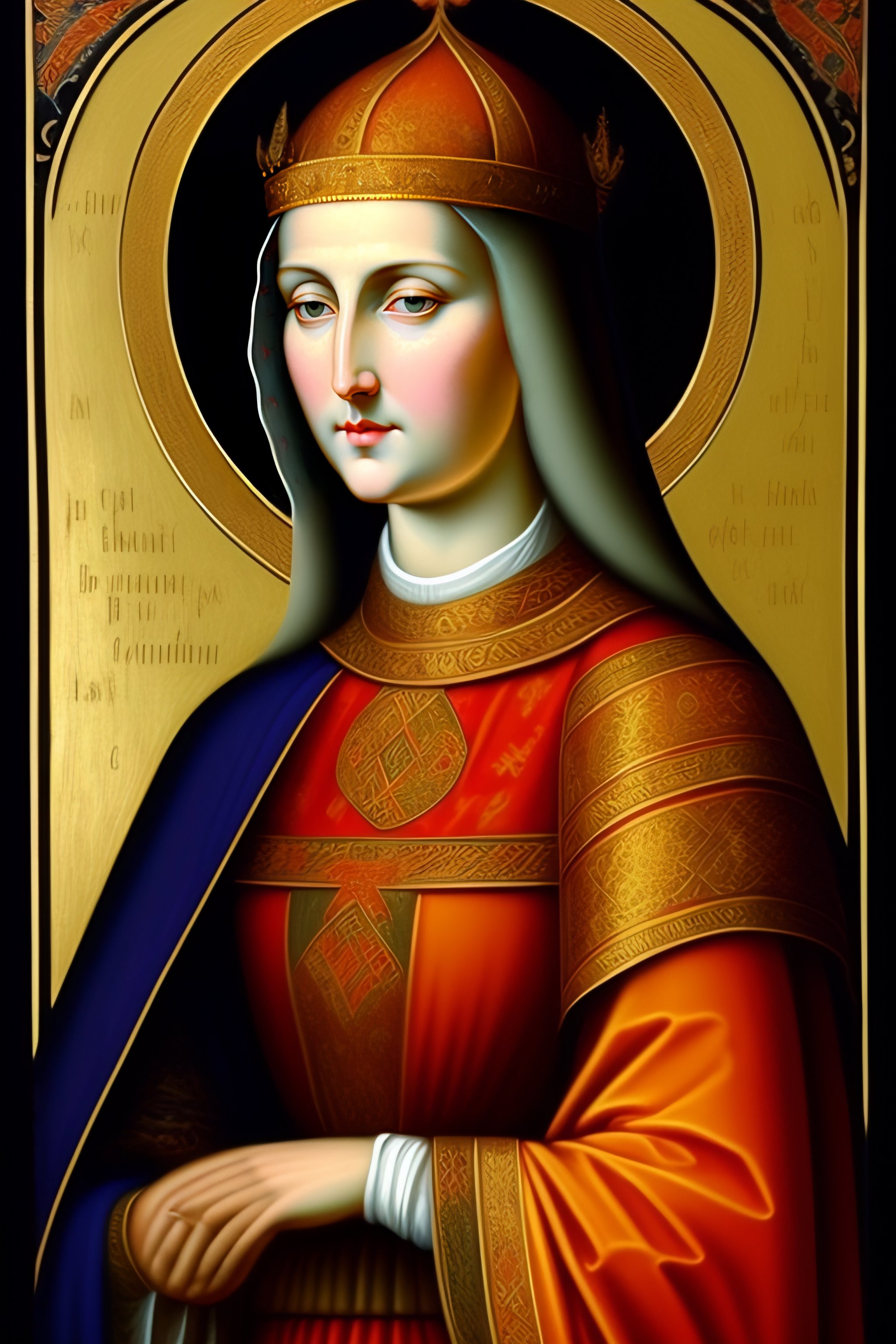 German benedictine abbess renaissance stylized painting 9th century looking forward