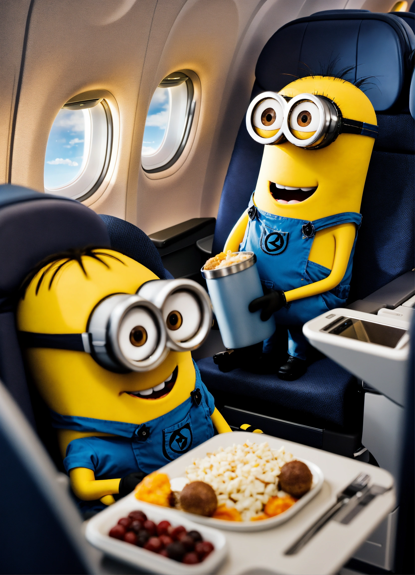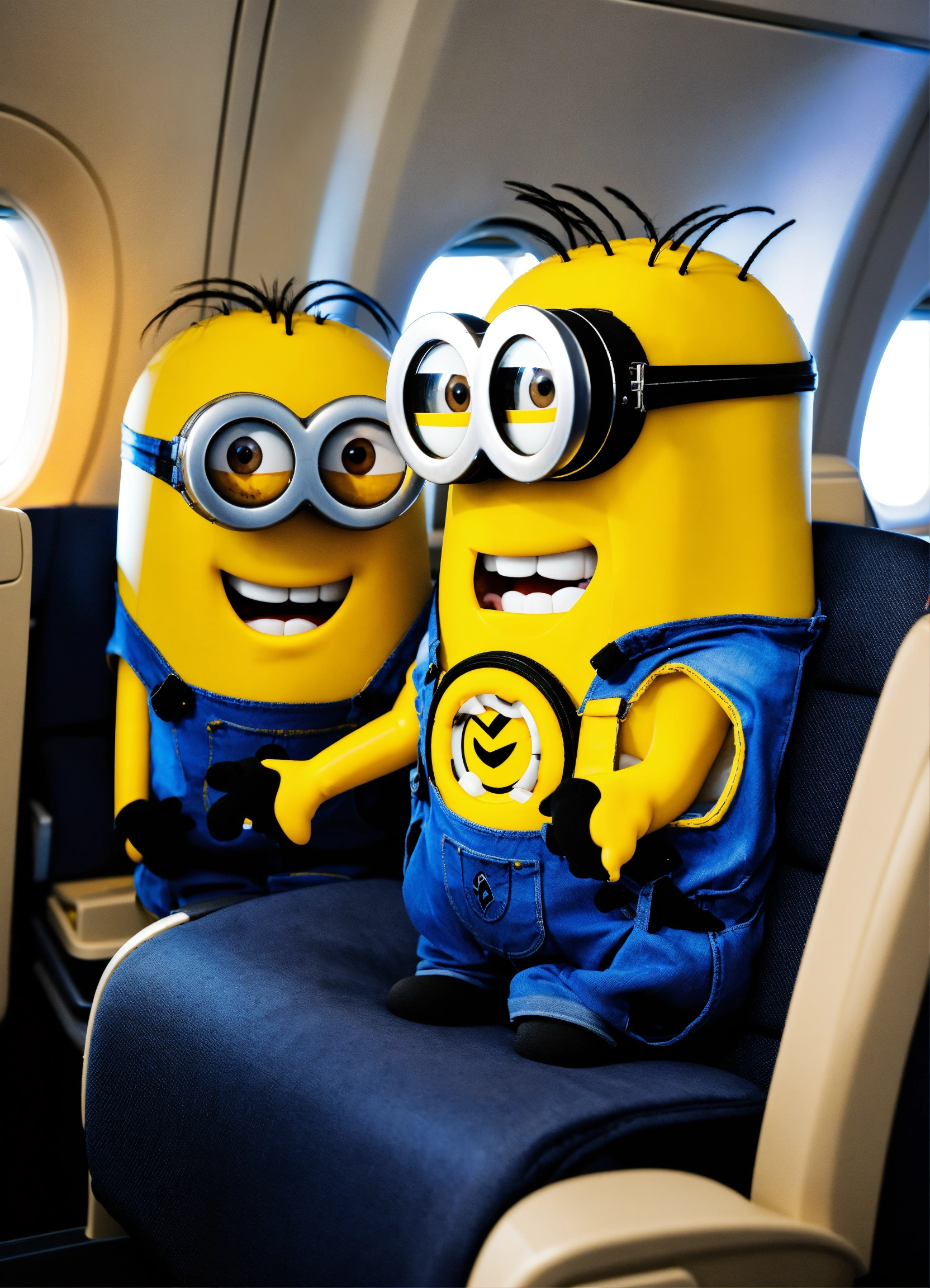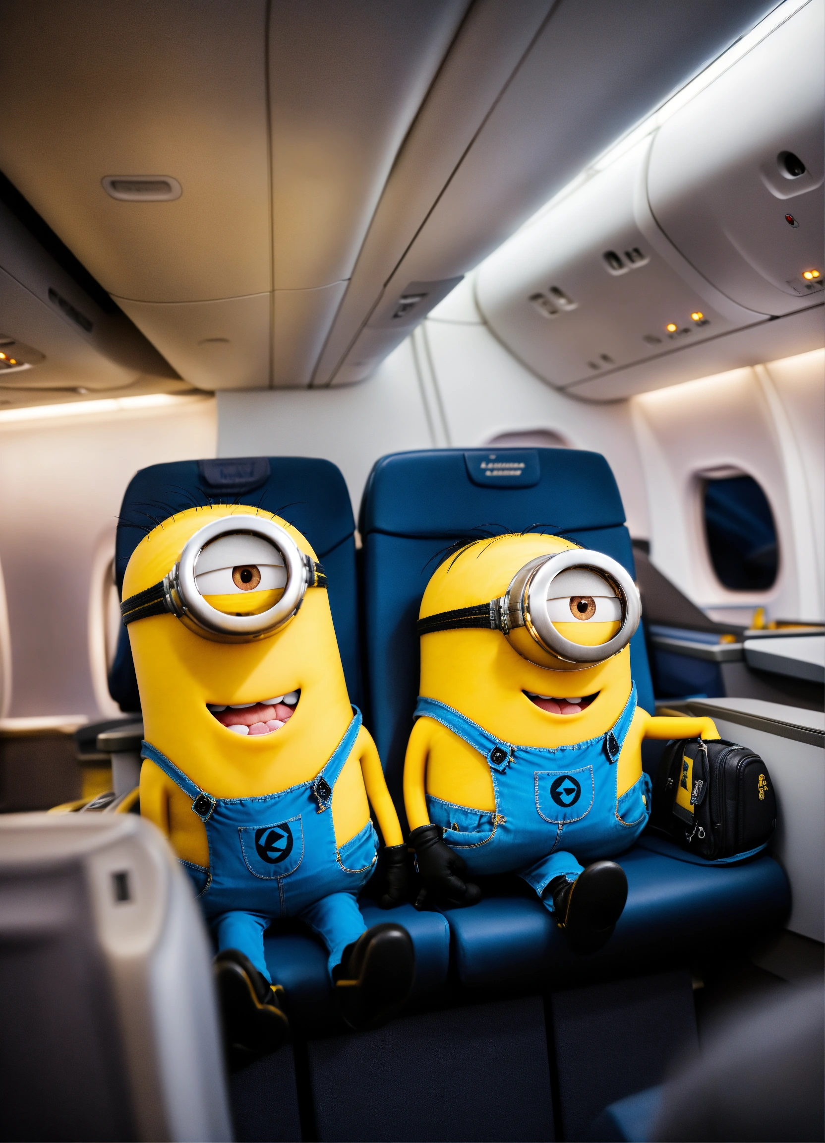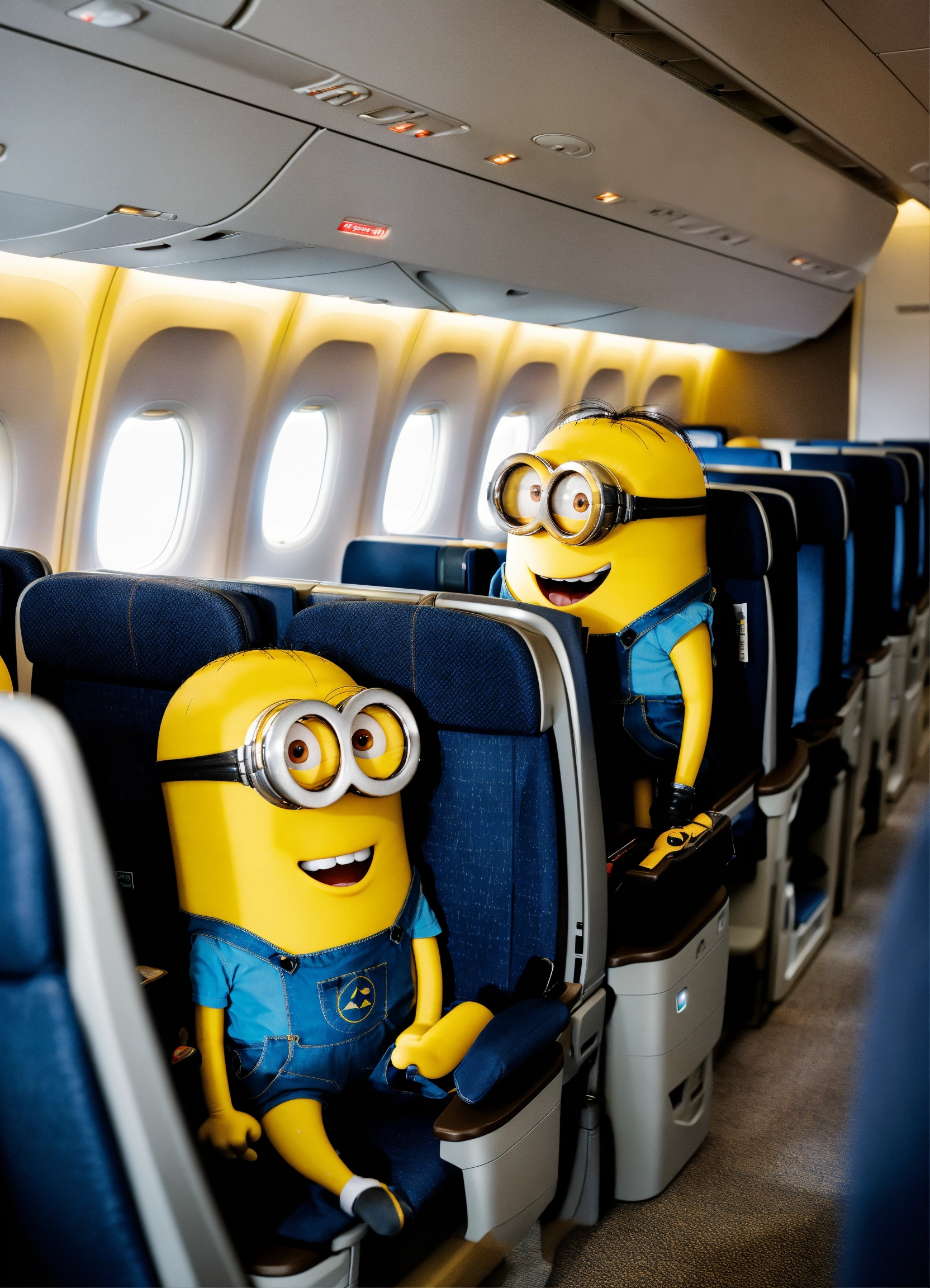Minions in the business class cabin of a lufthansa aircraft