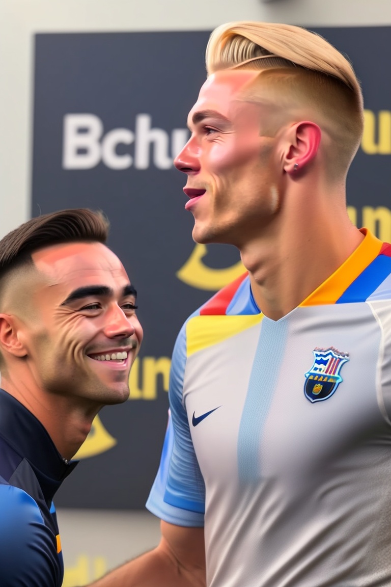 Futbol club barcelona's coach, xavi hernandez, giving welcome to erling haaland in his first day as a barcelona player