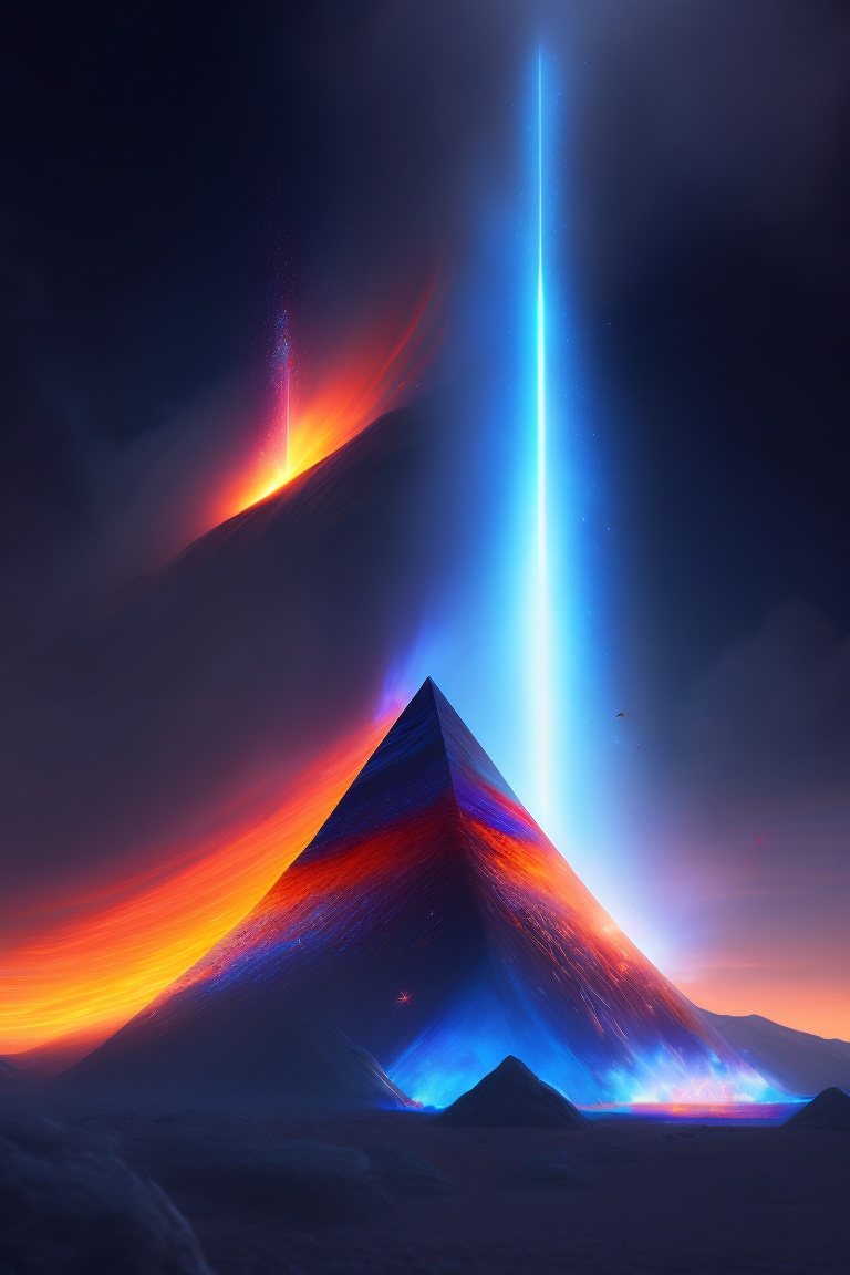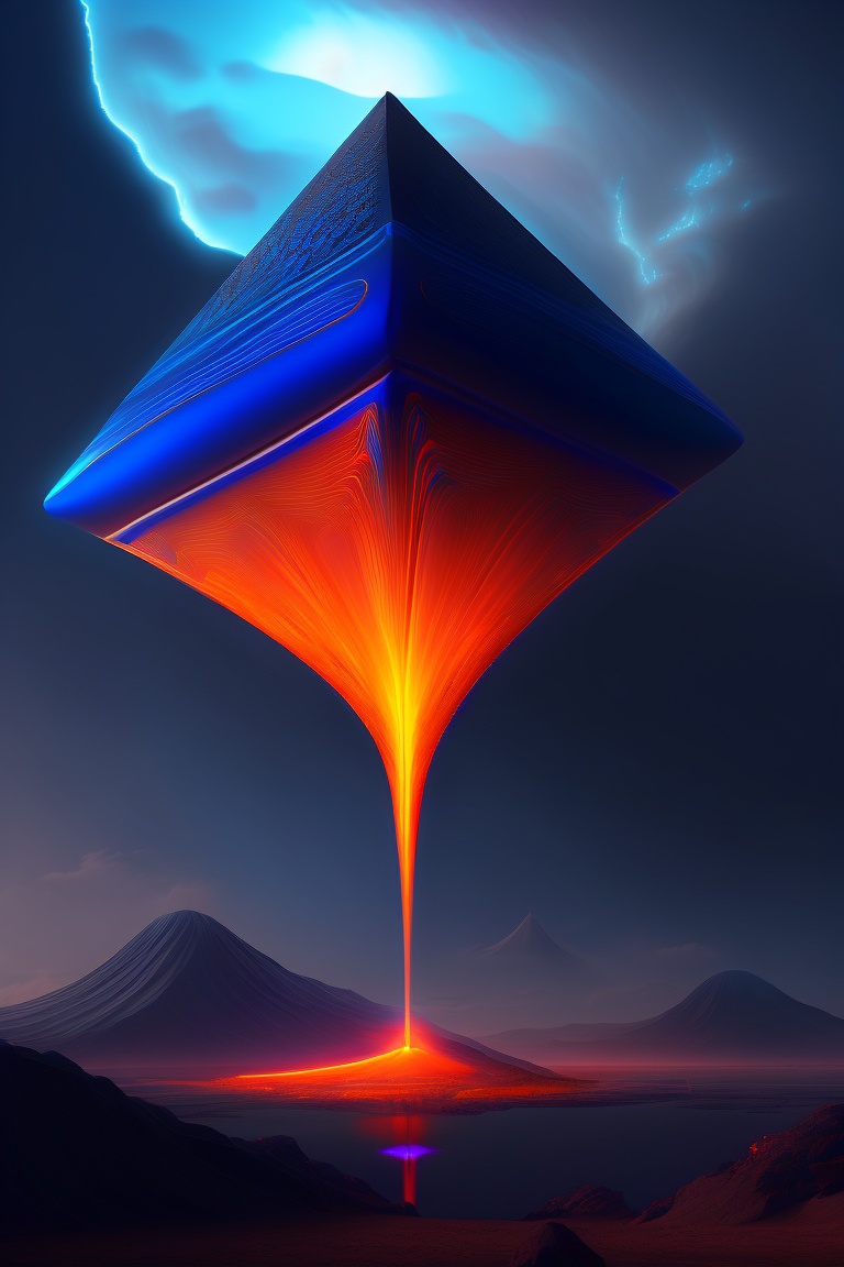 Metamorphing lava blue lasers, digital painting, digital illustration, extreme detail, digital art, 4k, ultra hd, holographic, hyperdetailed, pyramides, flying ufo