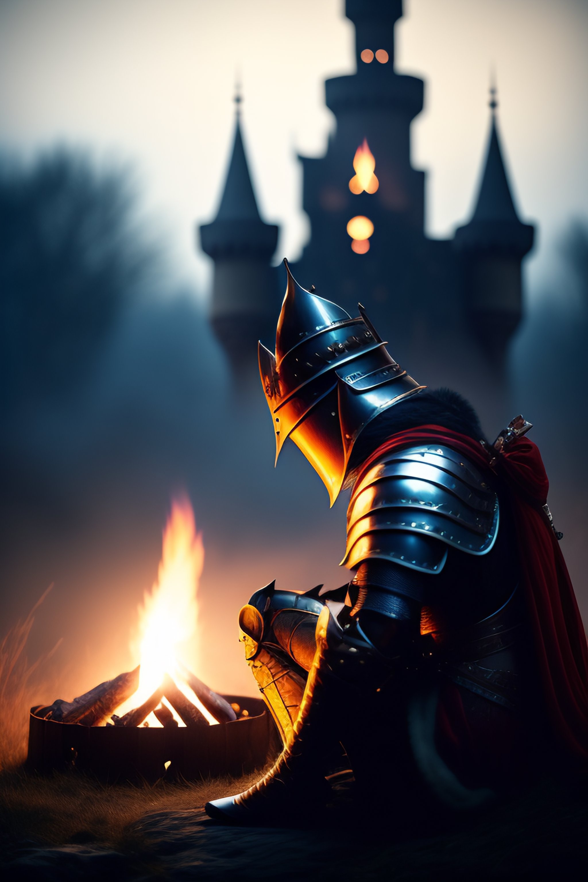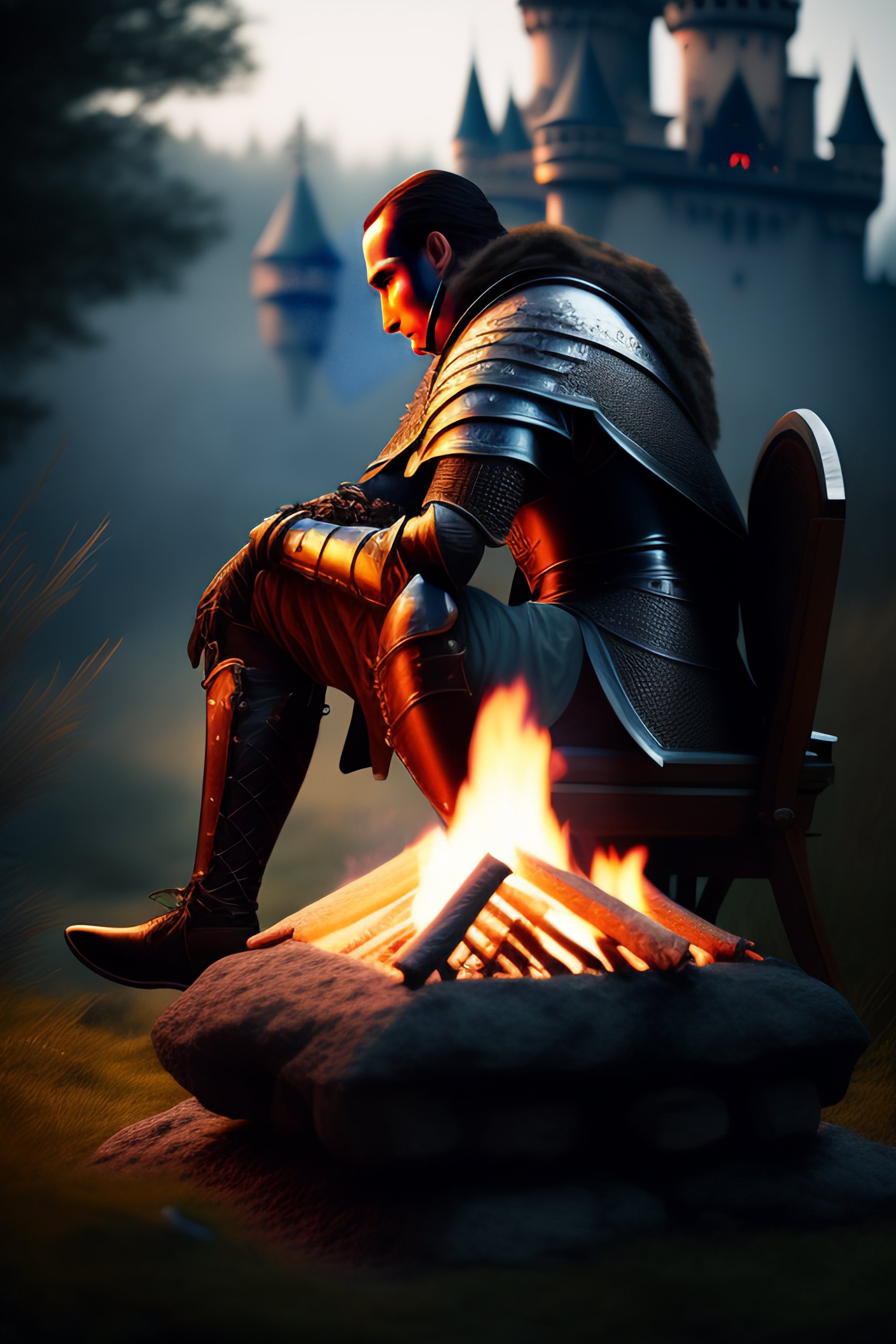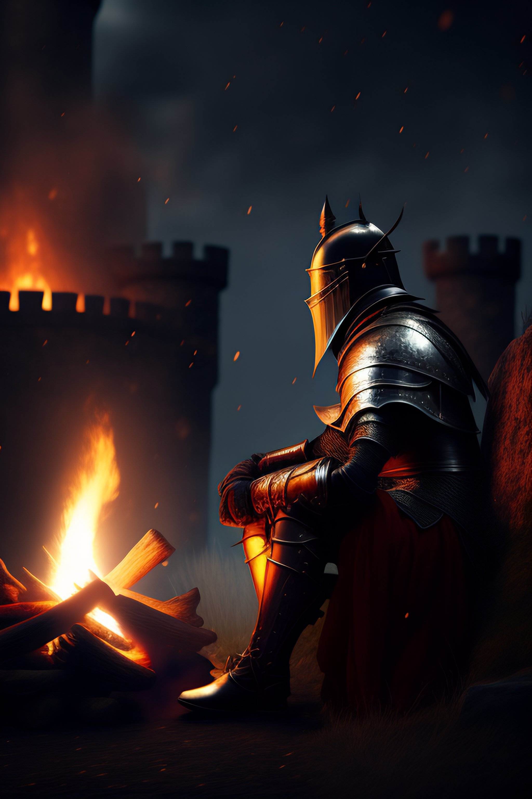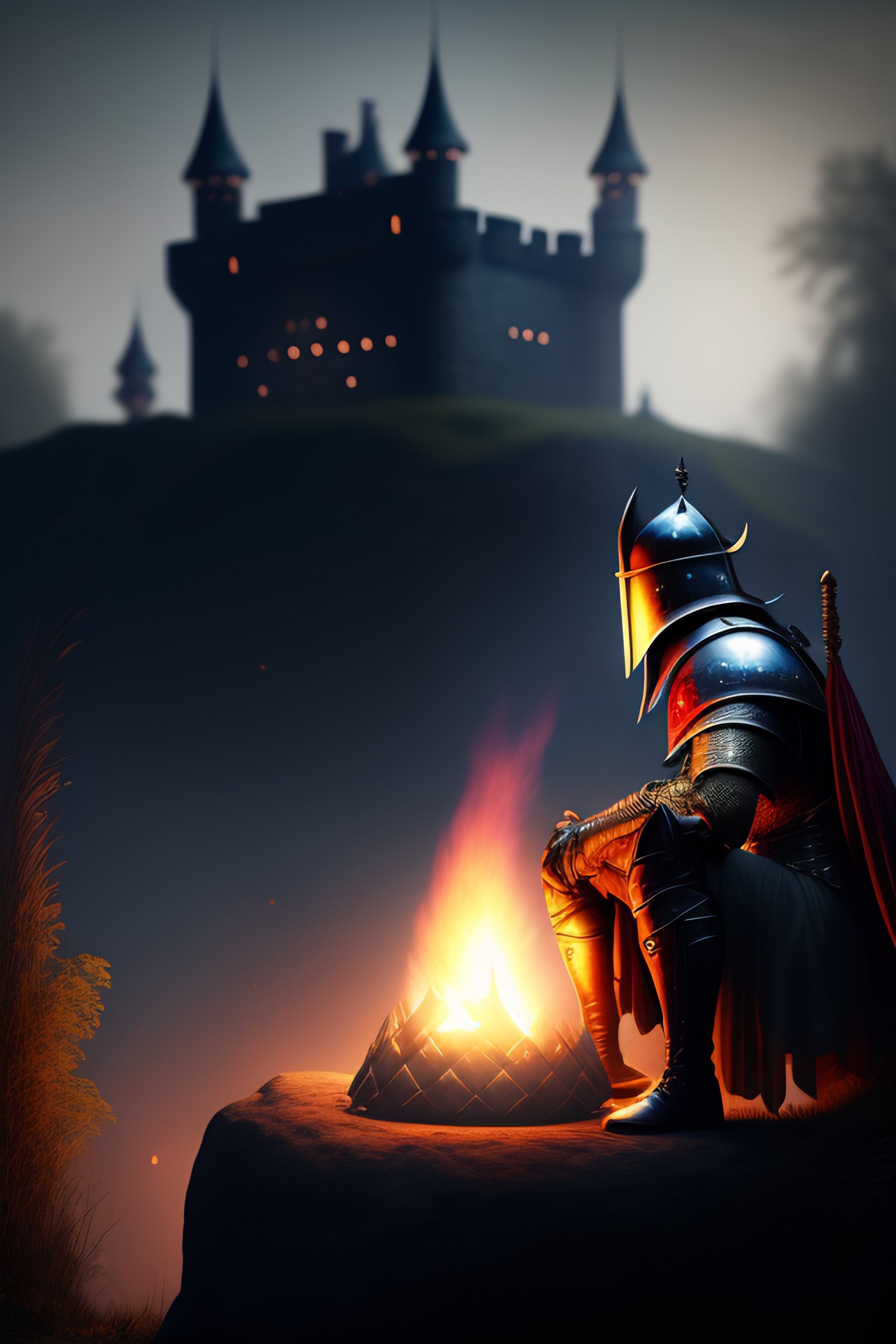 Photo a knight sitting by a campfire not far from the castle by dark souls eternal darkness