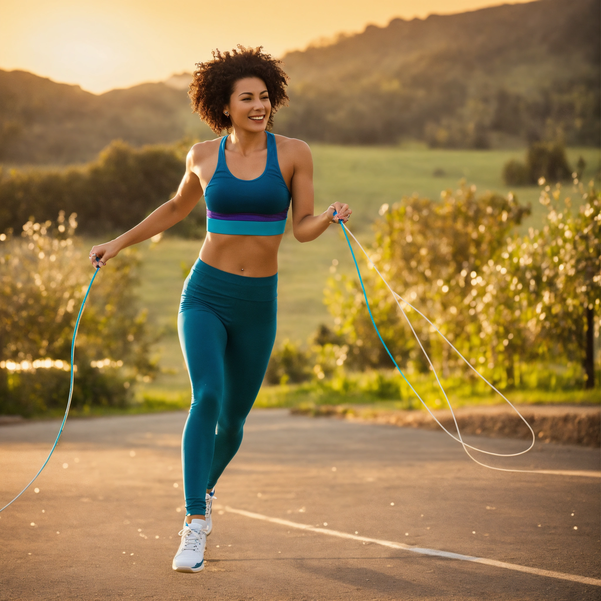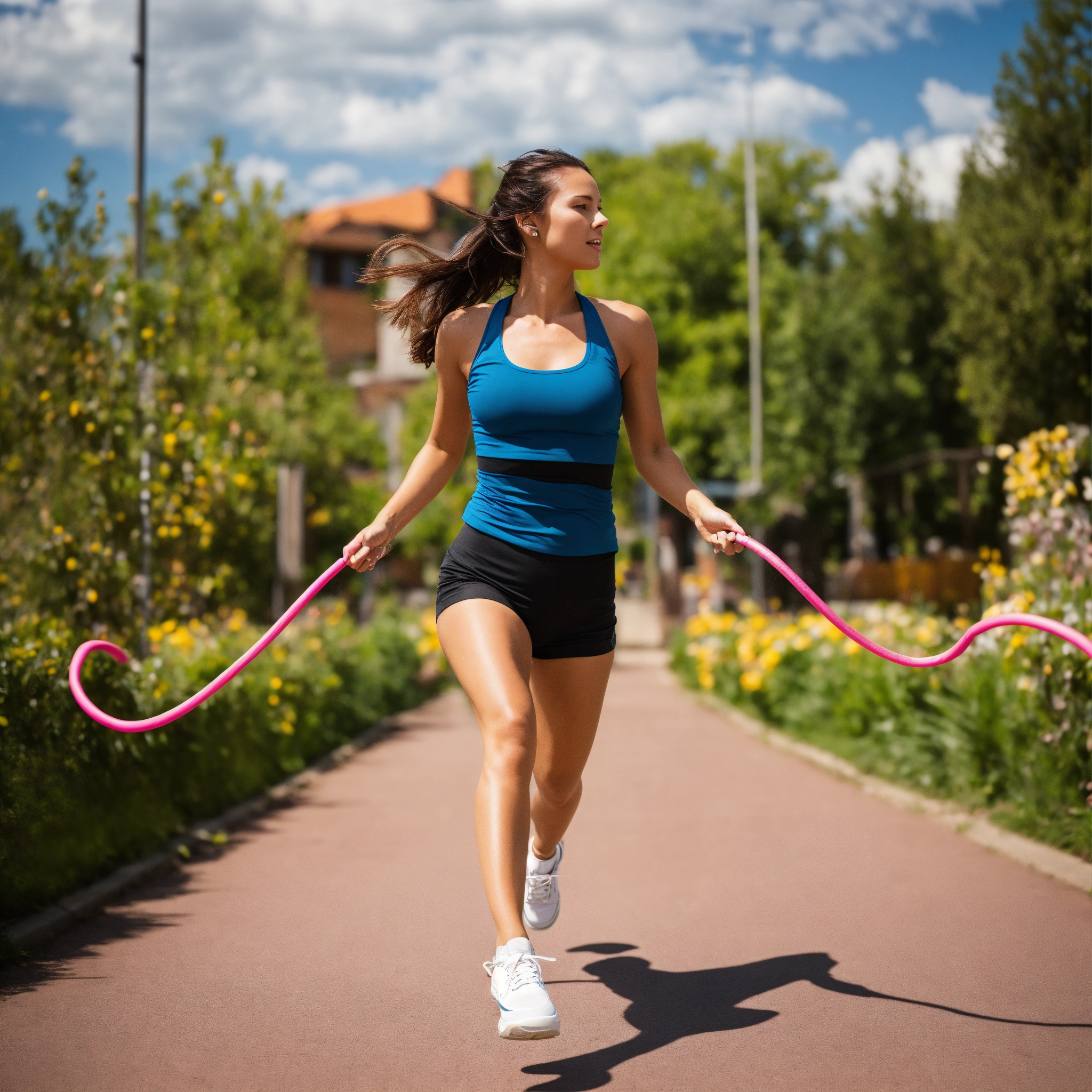 Woman skipping rope outside