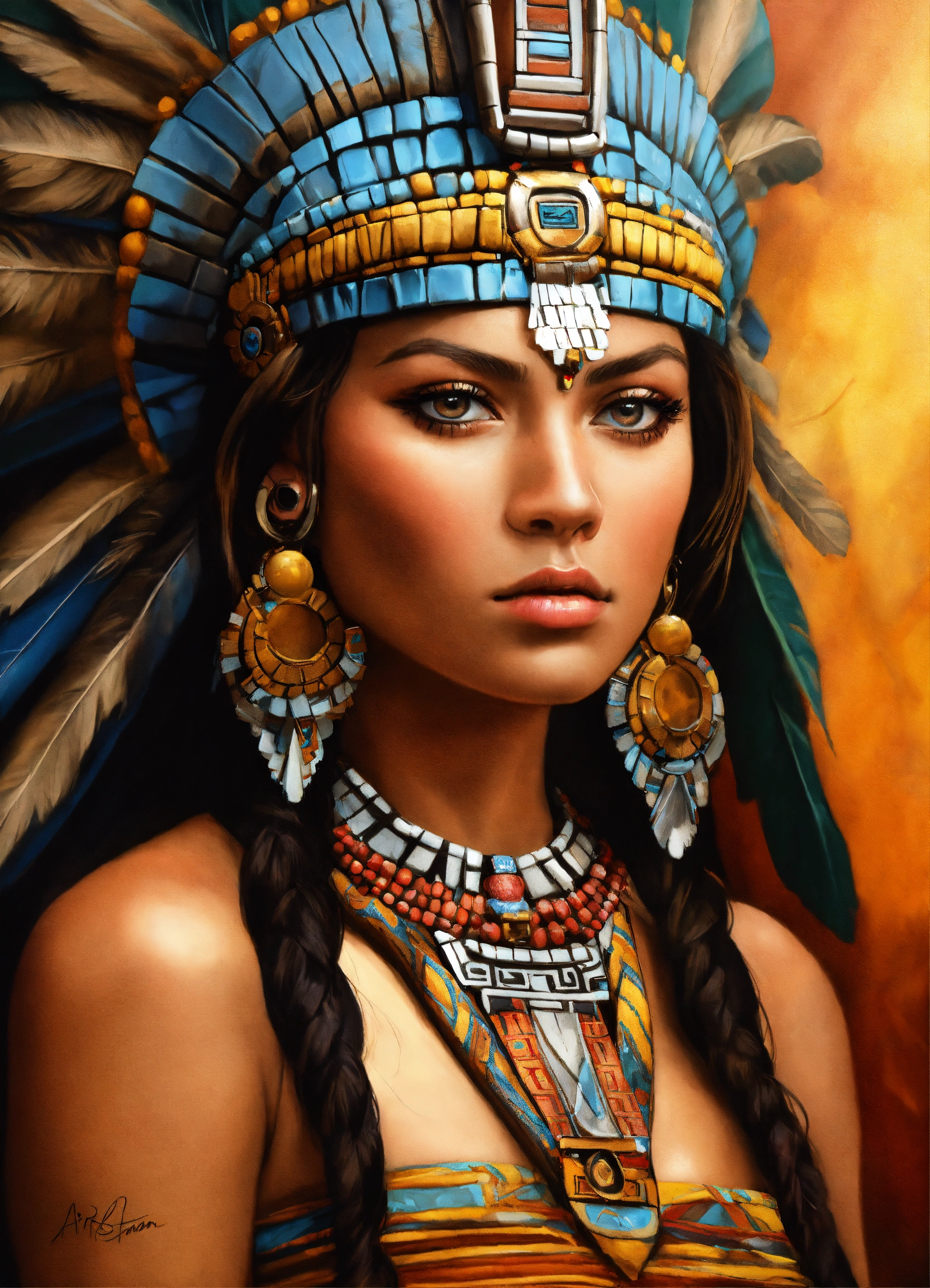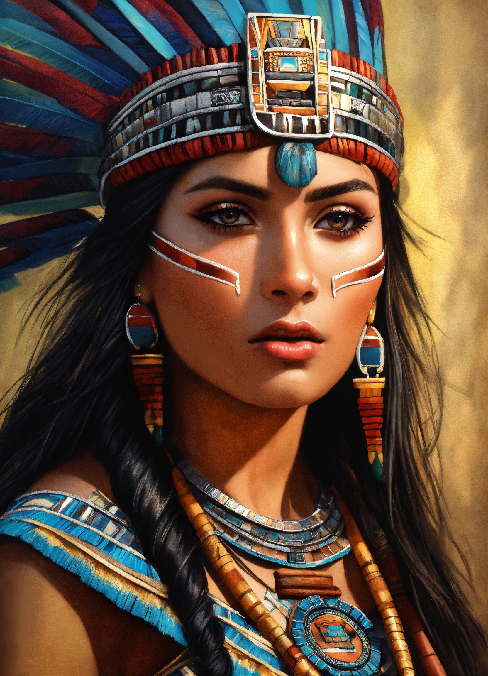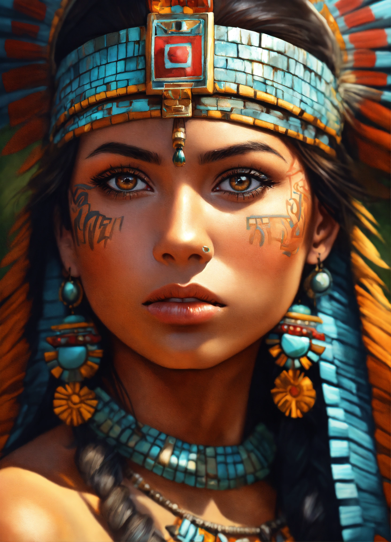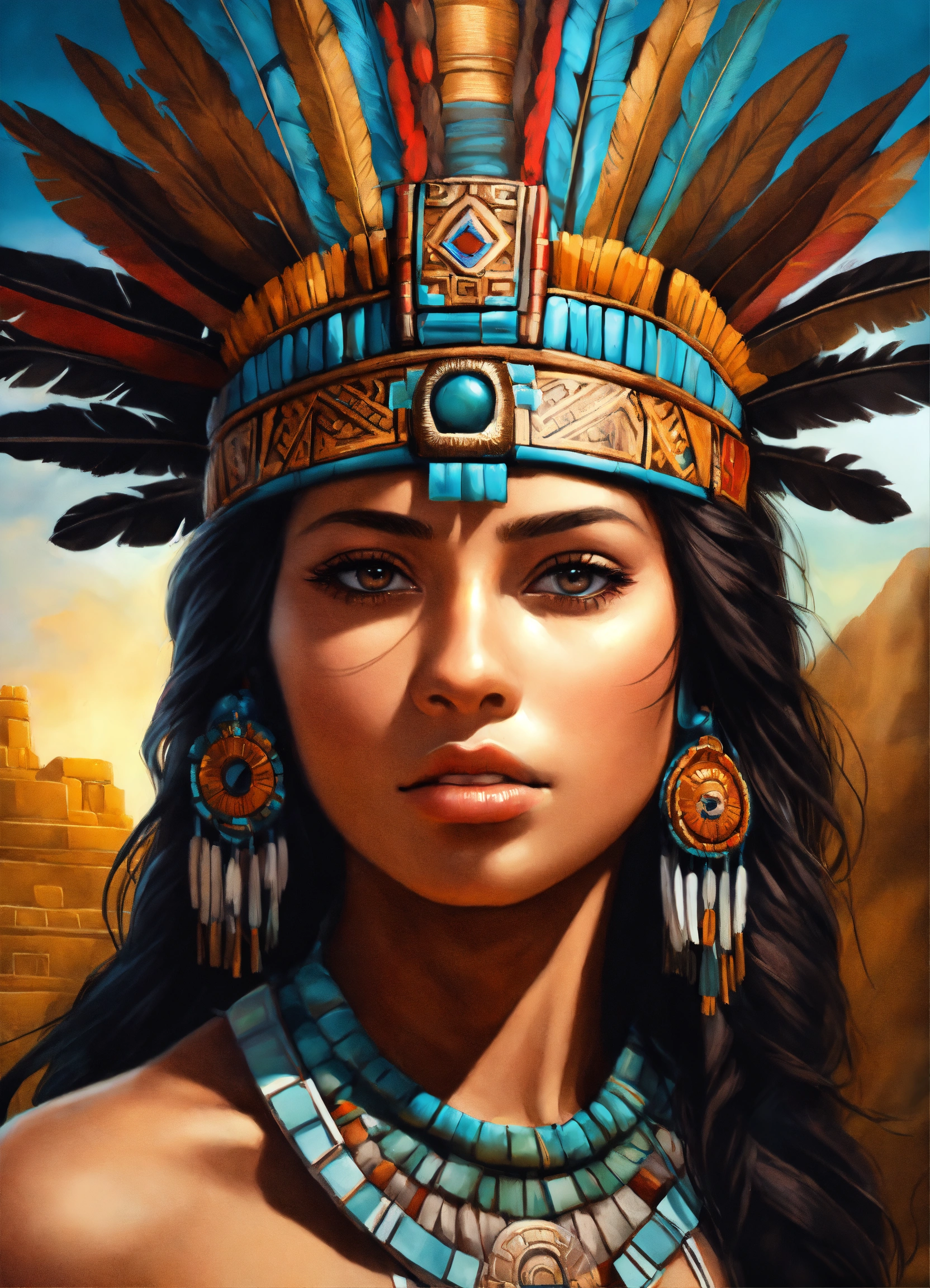 Aztec princess, realistic, portrait, high detail, ultra-high resolution, airbrush style, beautiful, latina, photo realism, mesmerizing stare.mayan