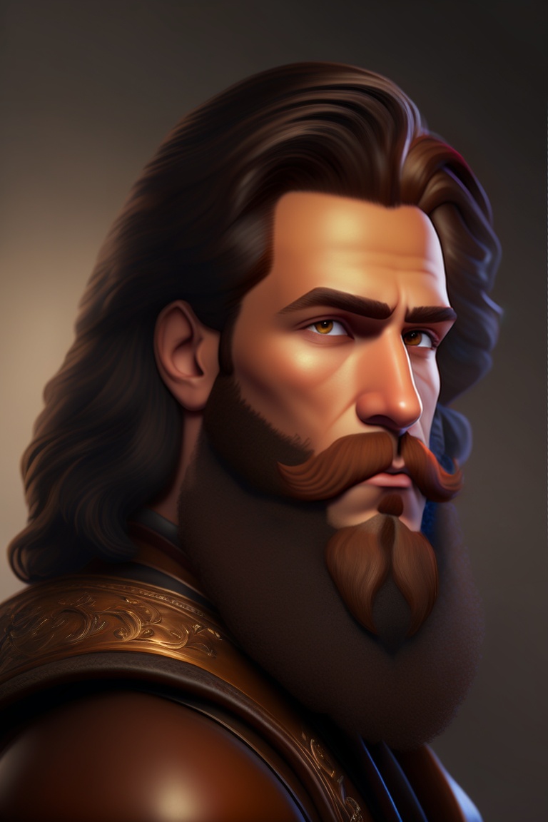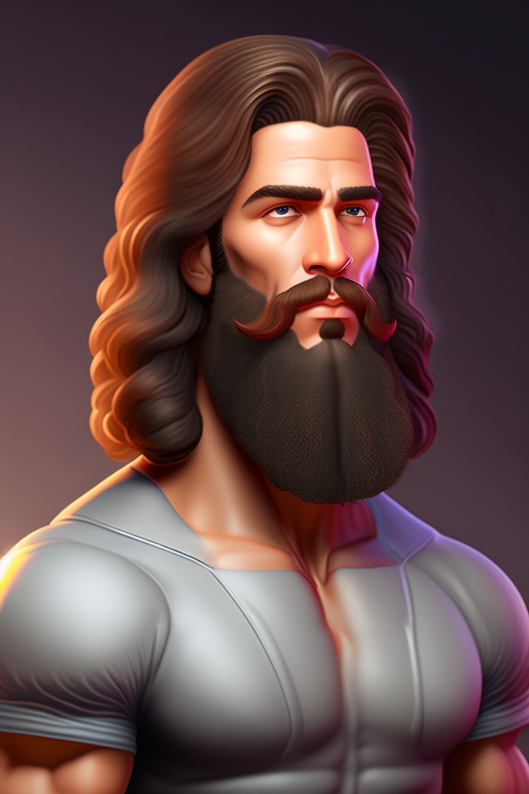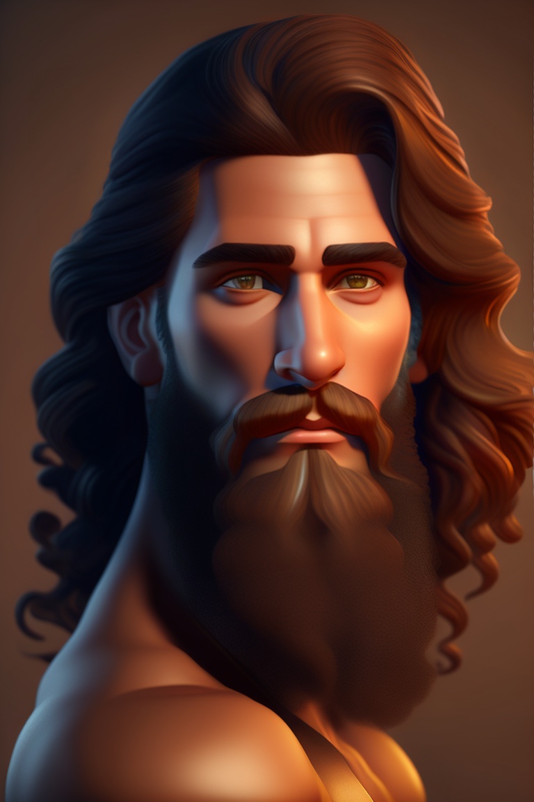 Biblical adam according to his characteristics. realistic image that demonstrates a dark man with a beard, medium to long hair and a look of regret