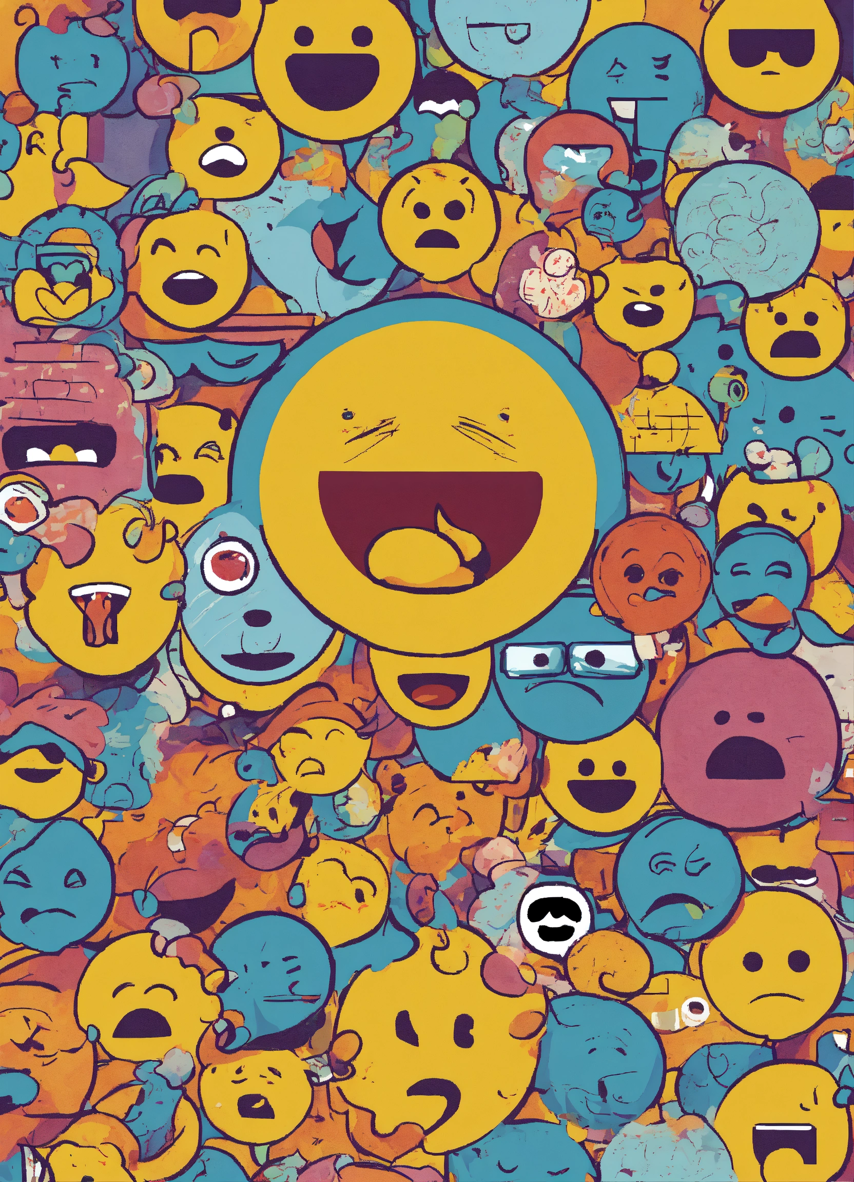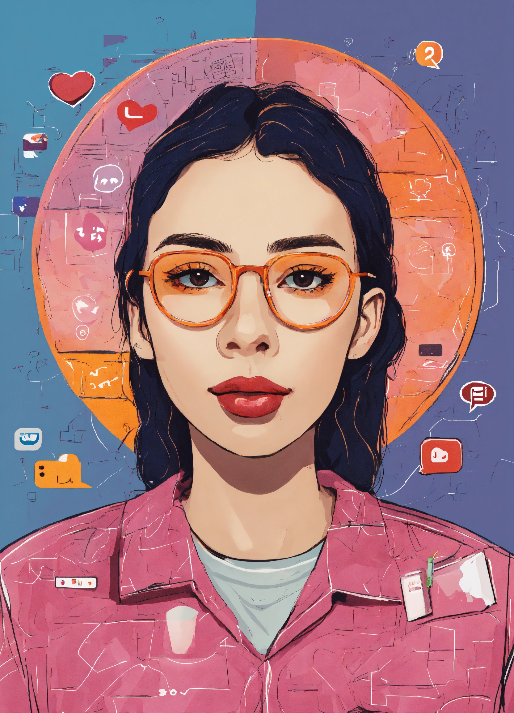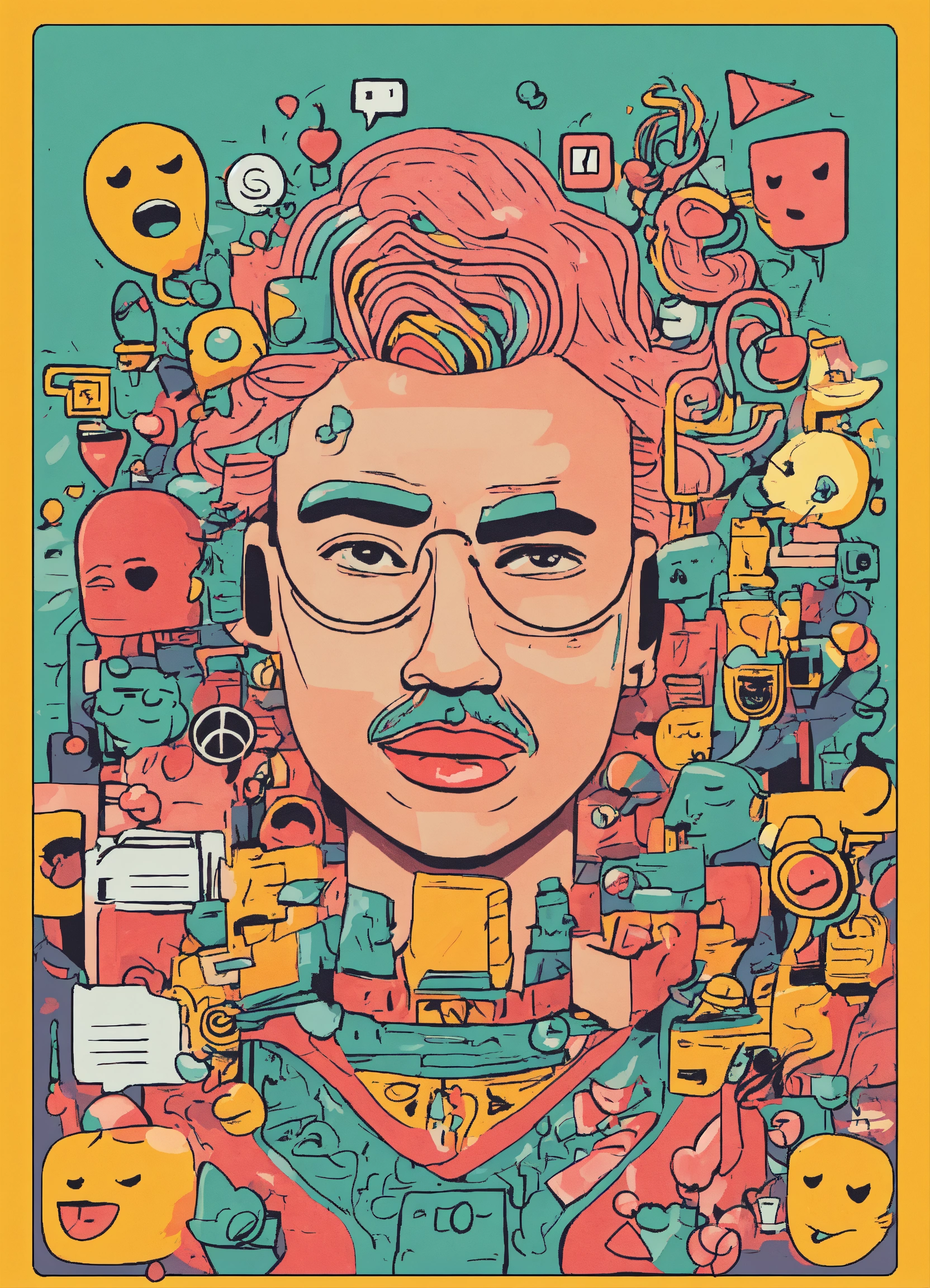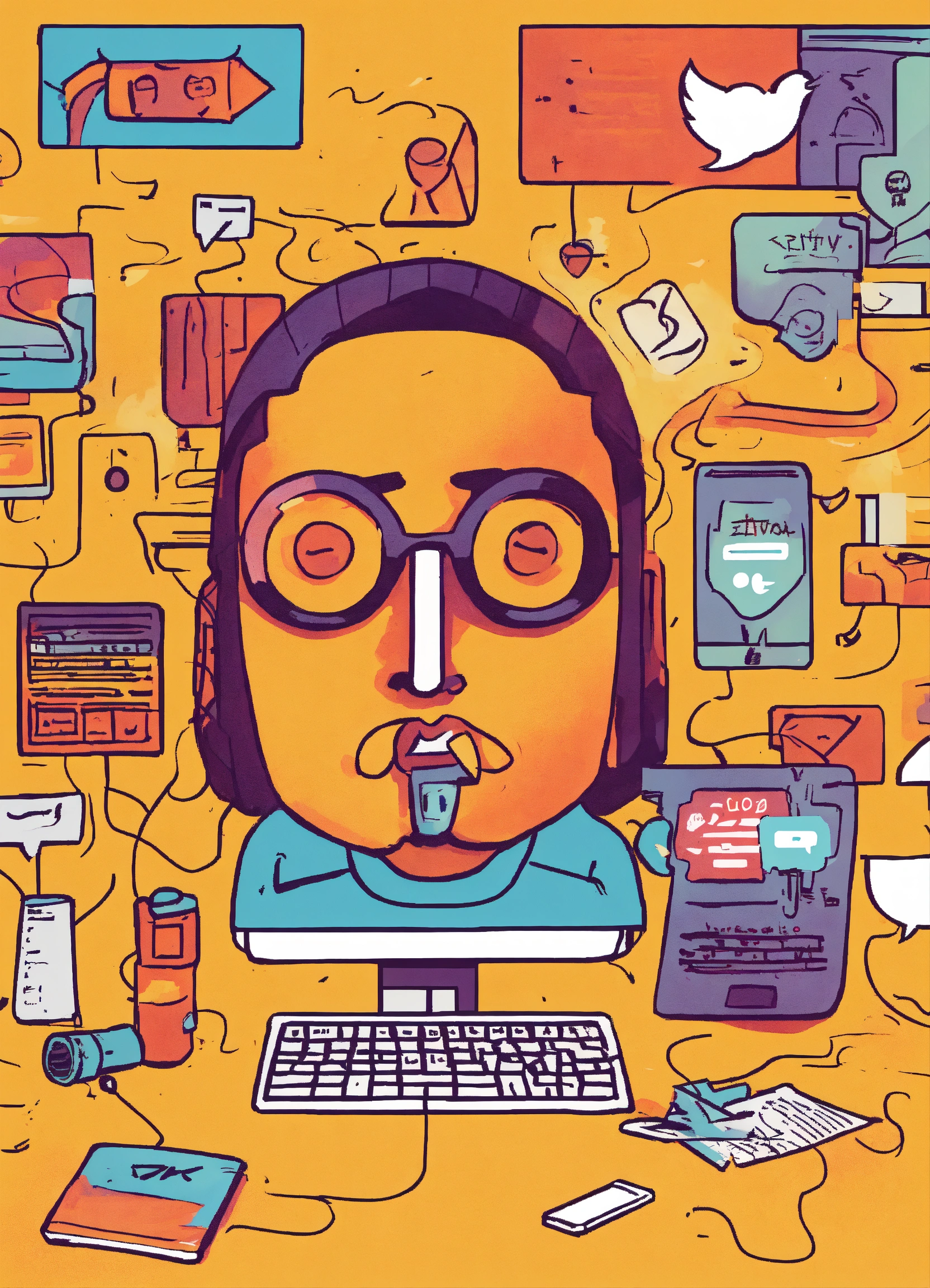 A design that represents a person following on social media and writing various comments, with sarcastic facial expressions.