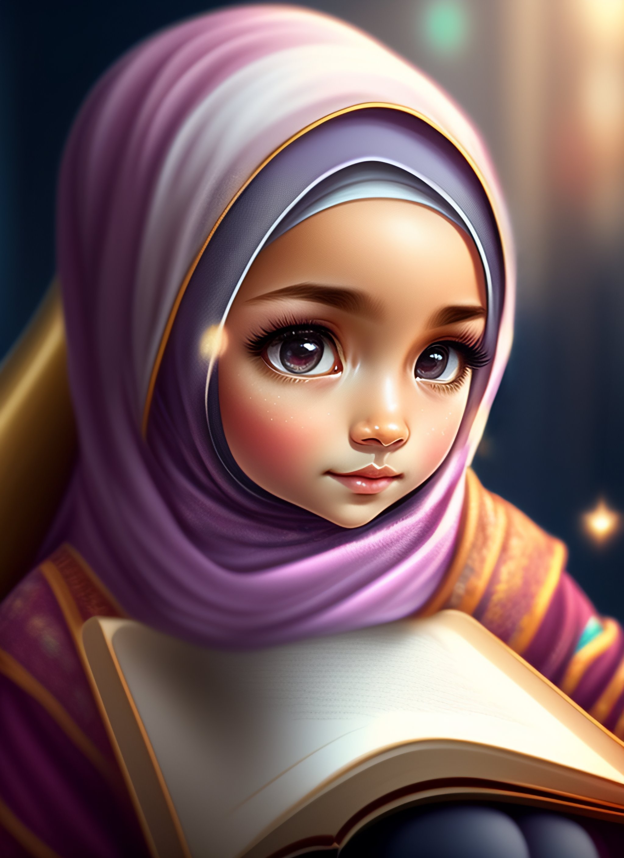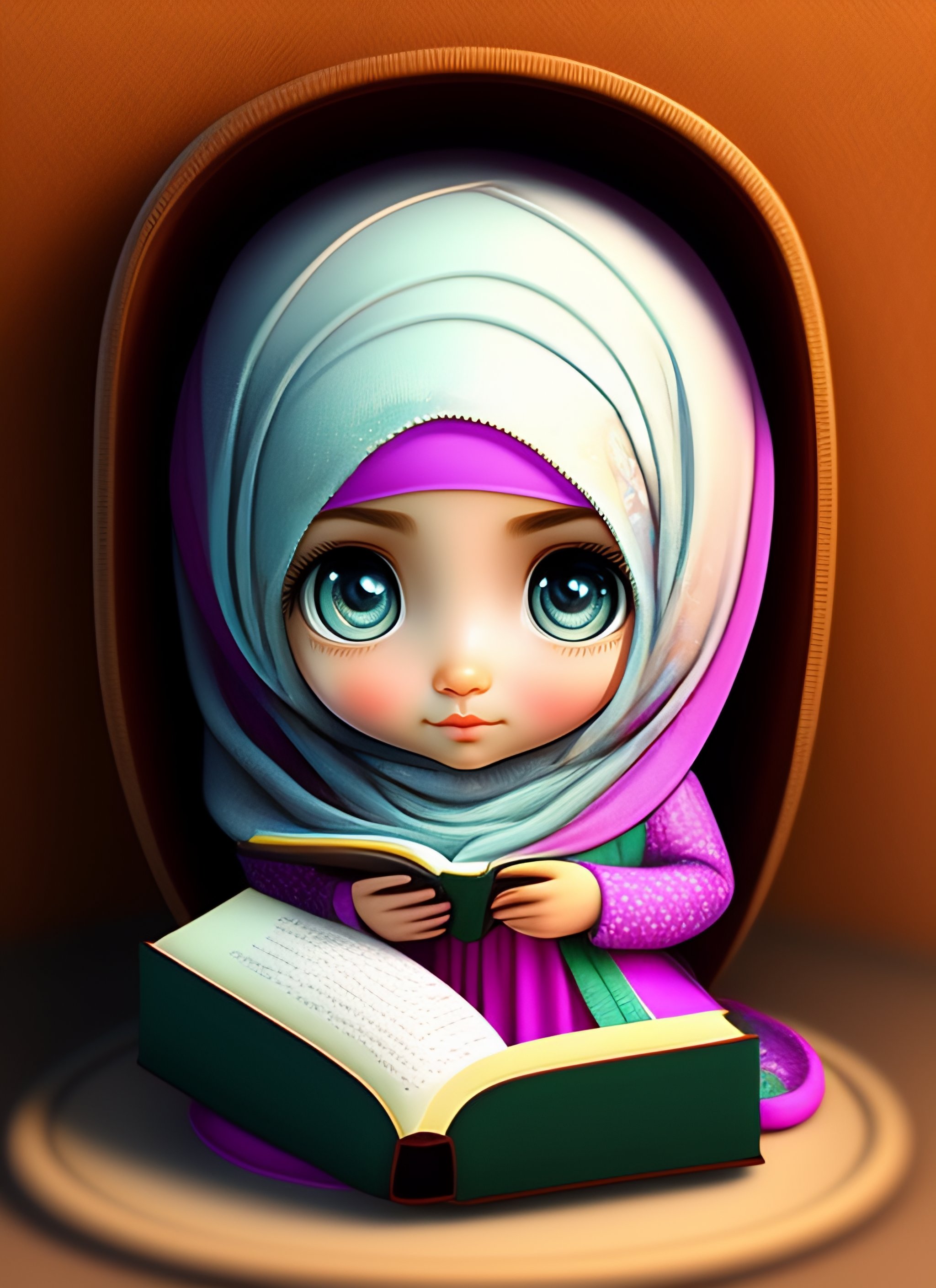Comfy elvish chibi muslim girl reading book wearing hijab