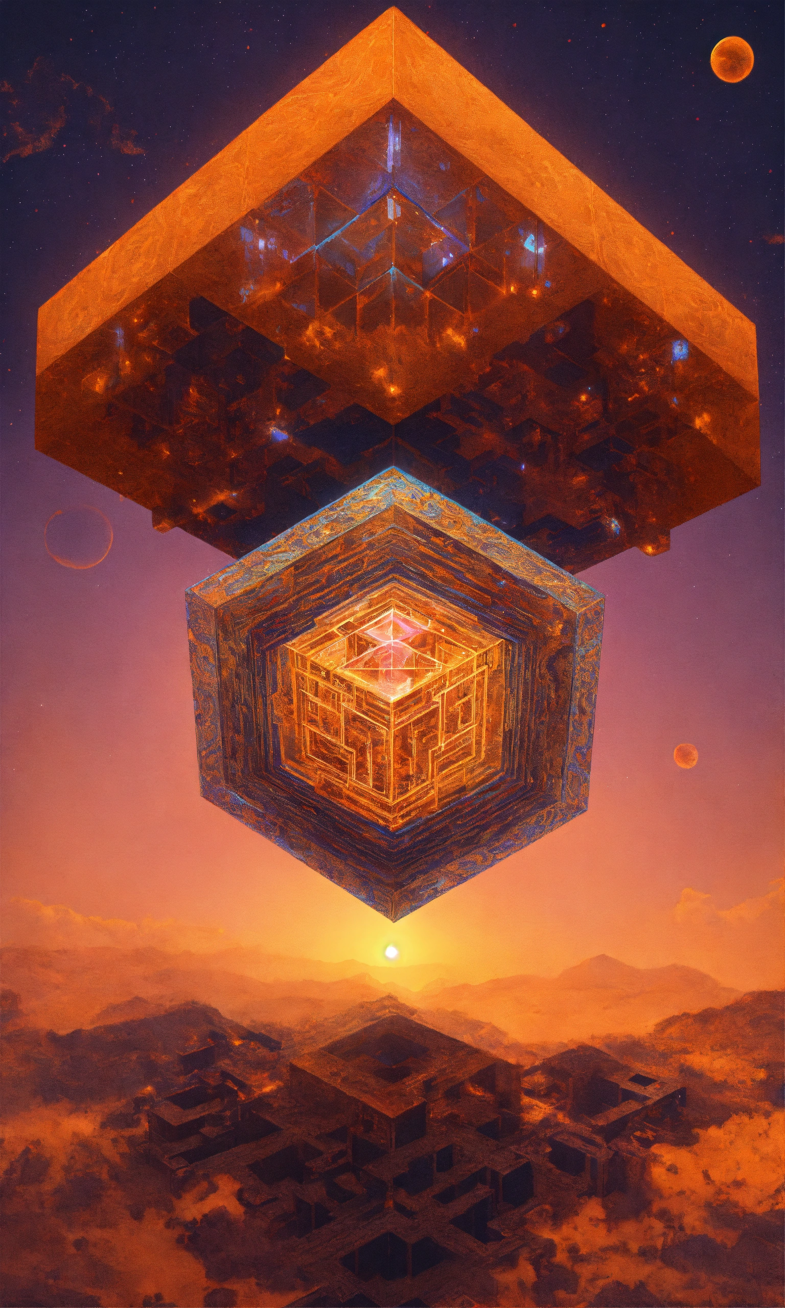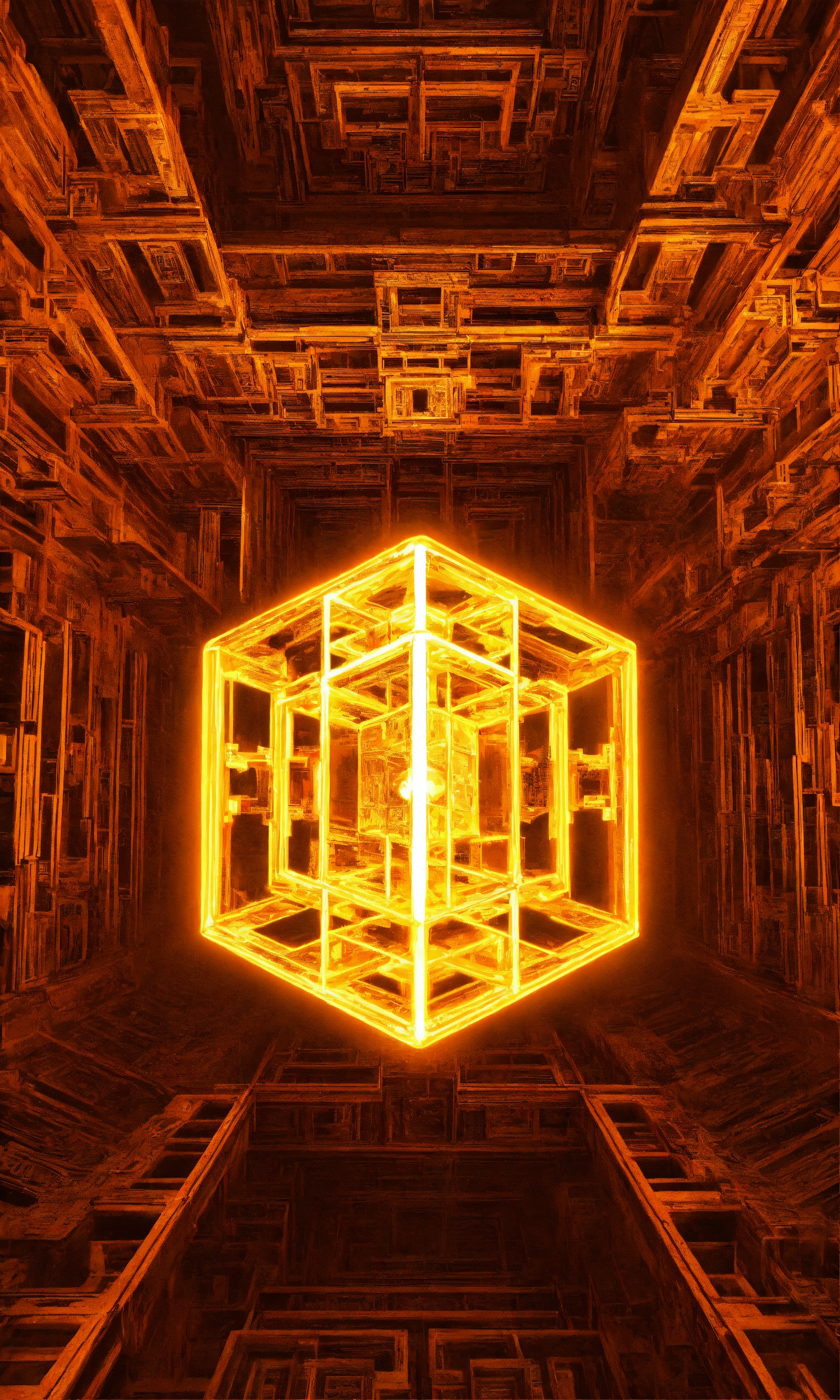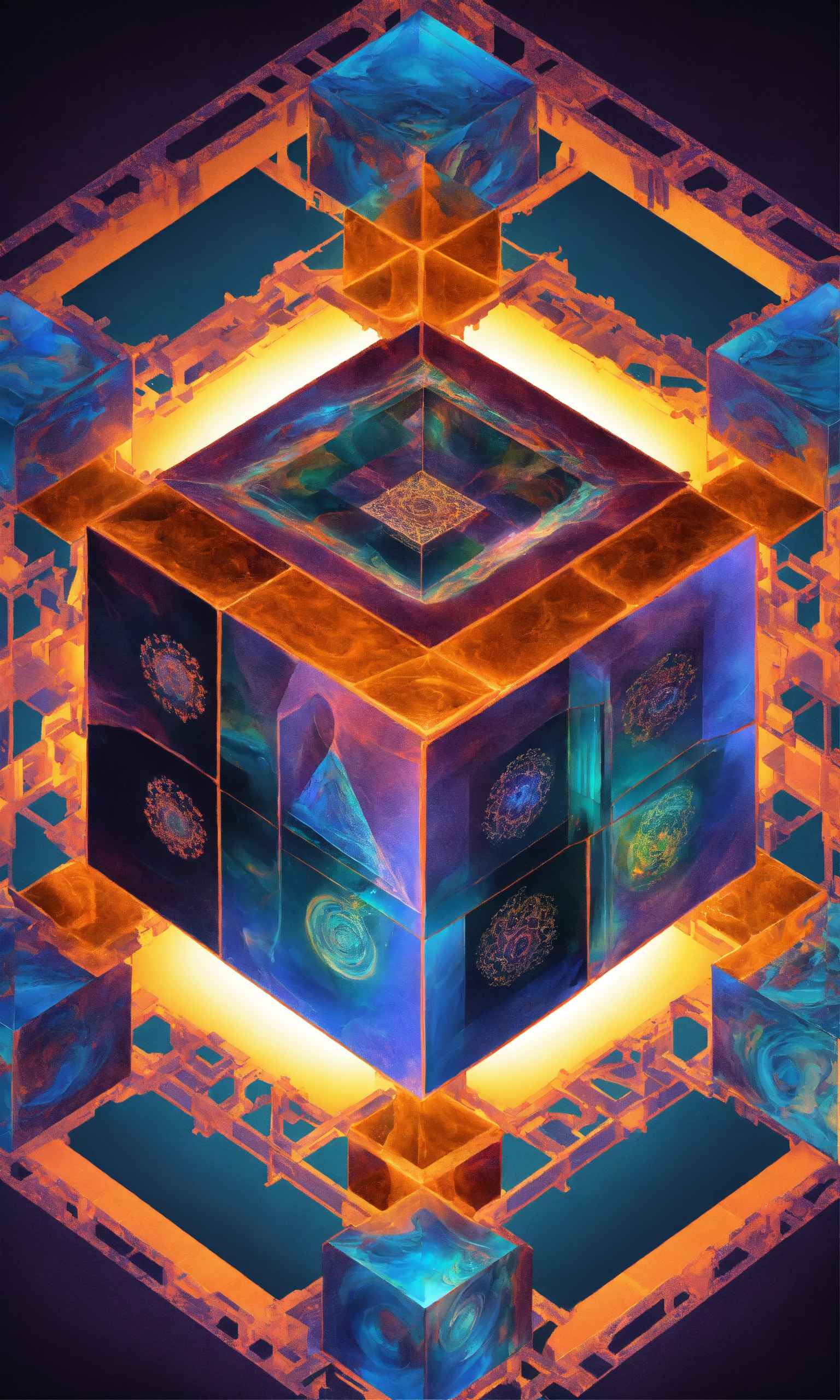 Taoist tesseract body fractal three point perspective hypercube melting mandelbrot hands