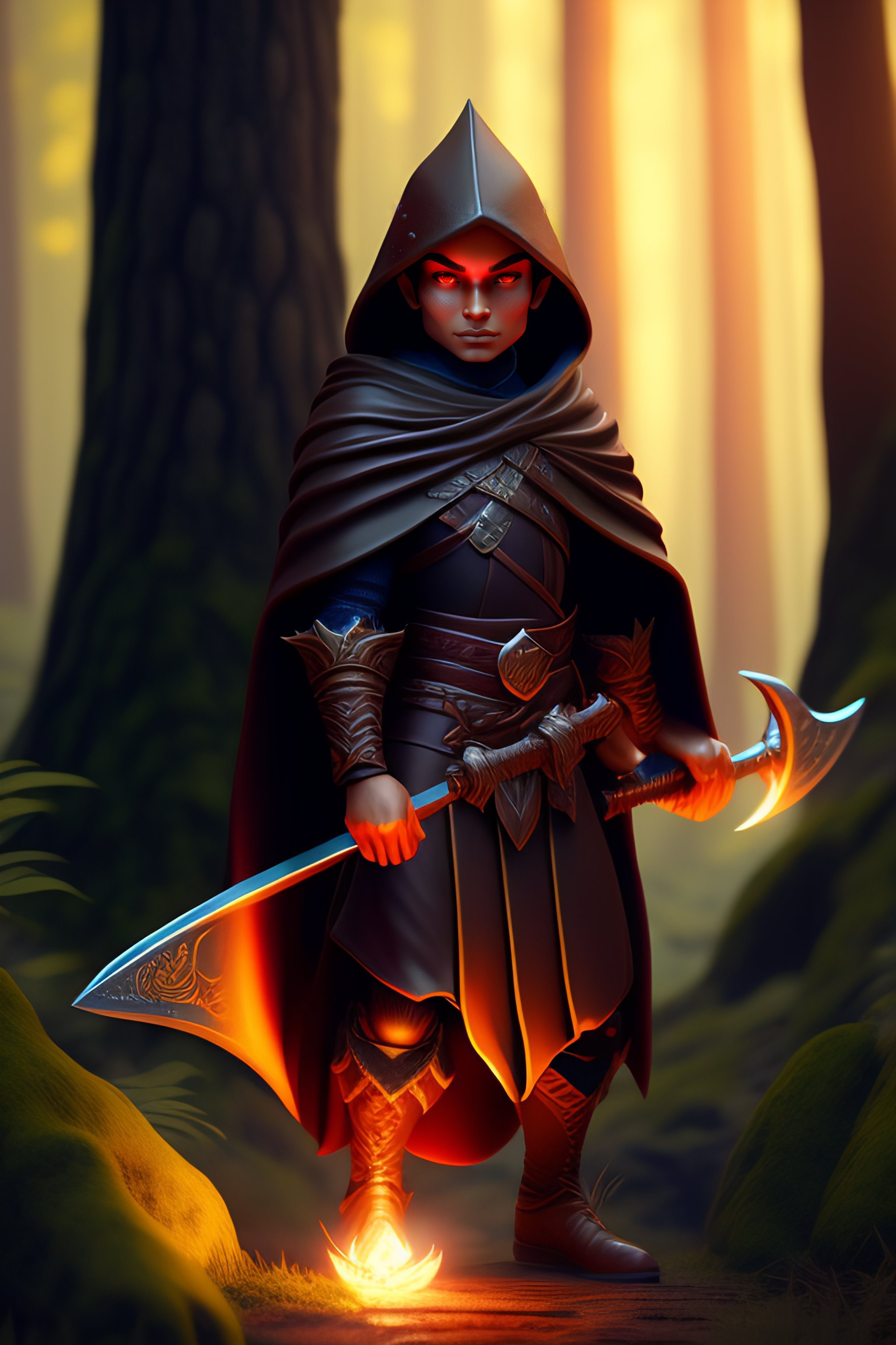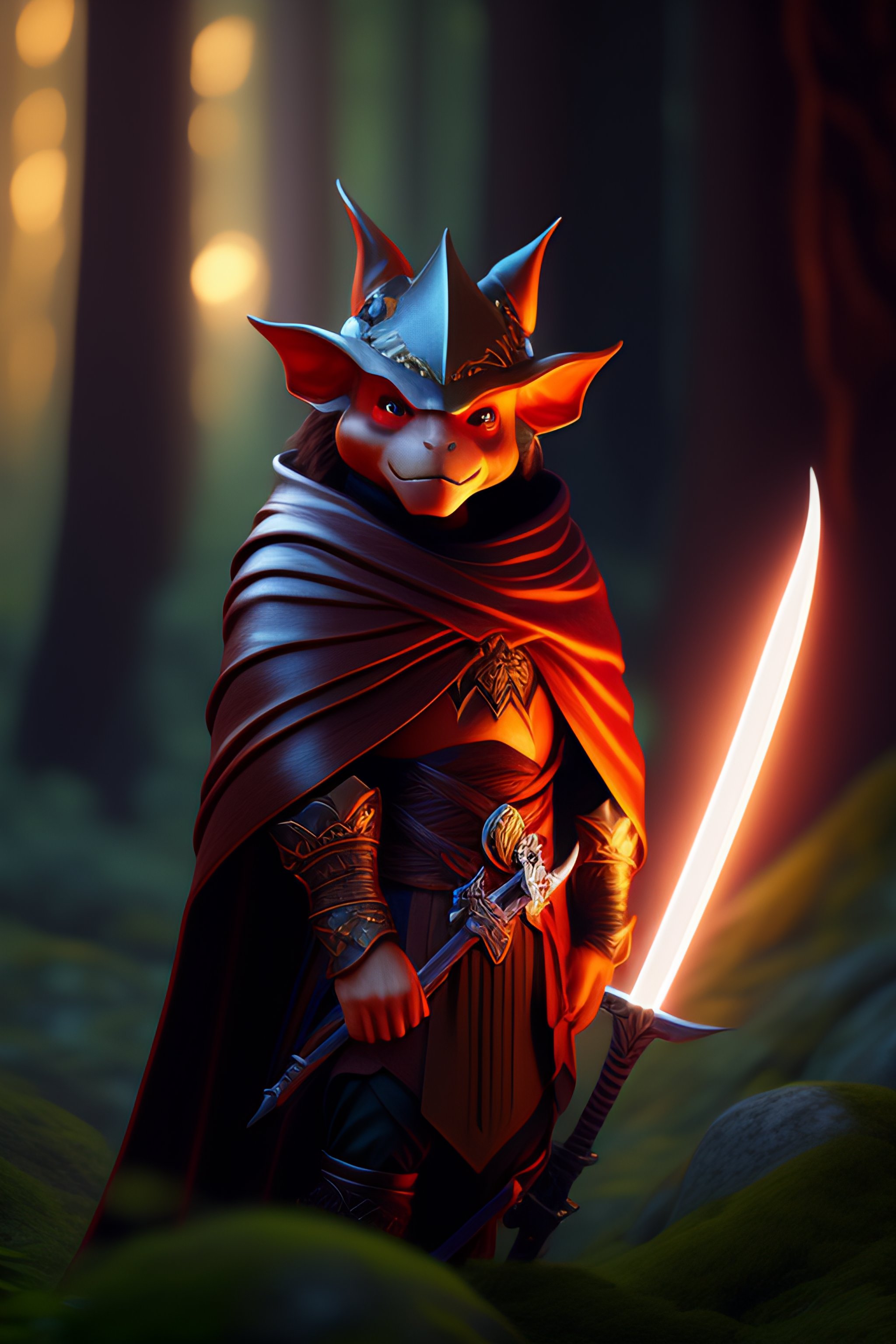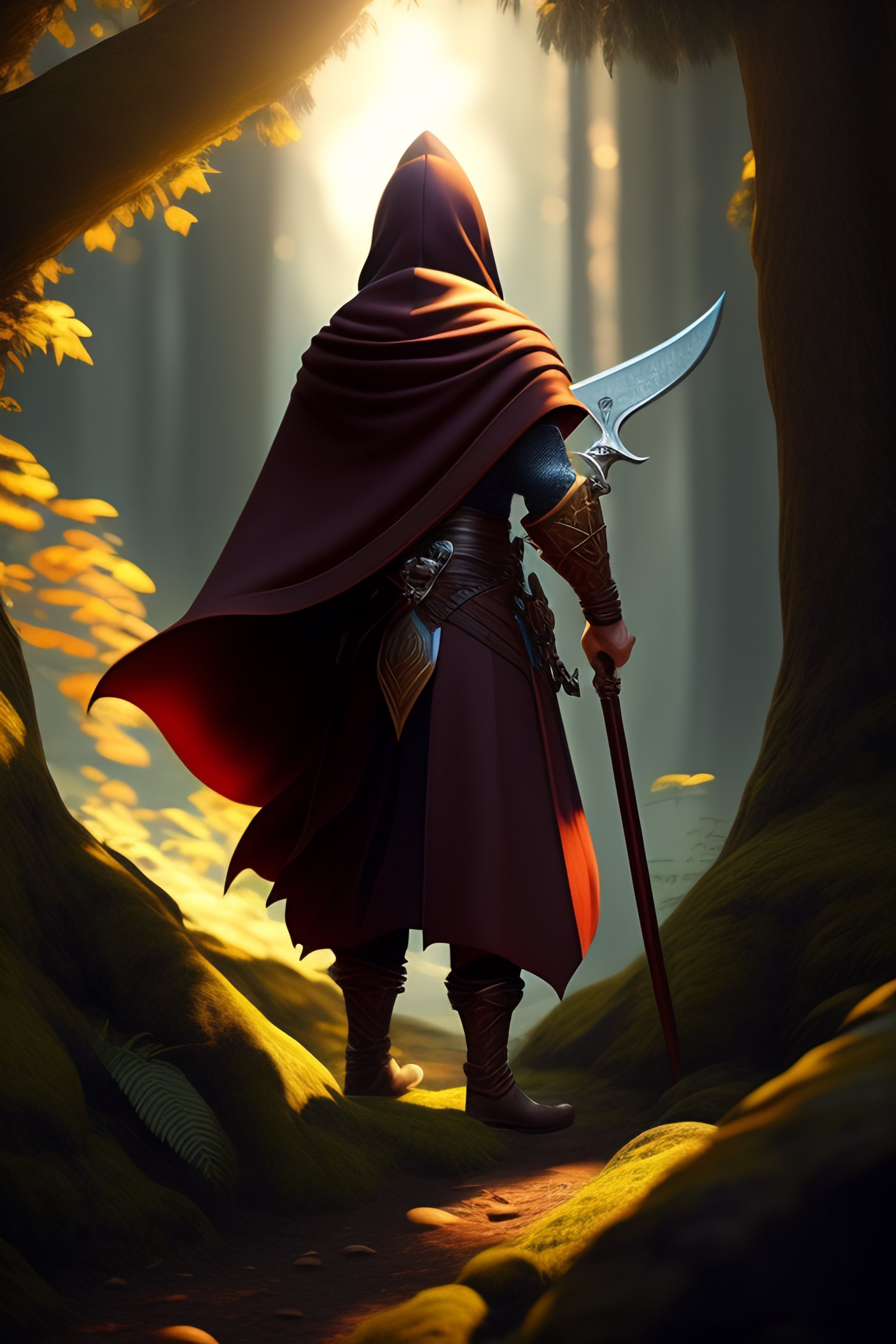 Frontside of goblin holding sword wearing a brown cloak in a forest, unreal engine, fantasy art by ilya kuvshinov, global illumination, radiant light