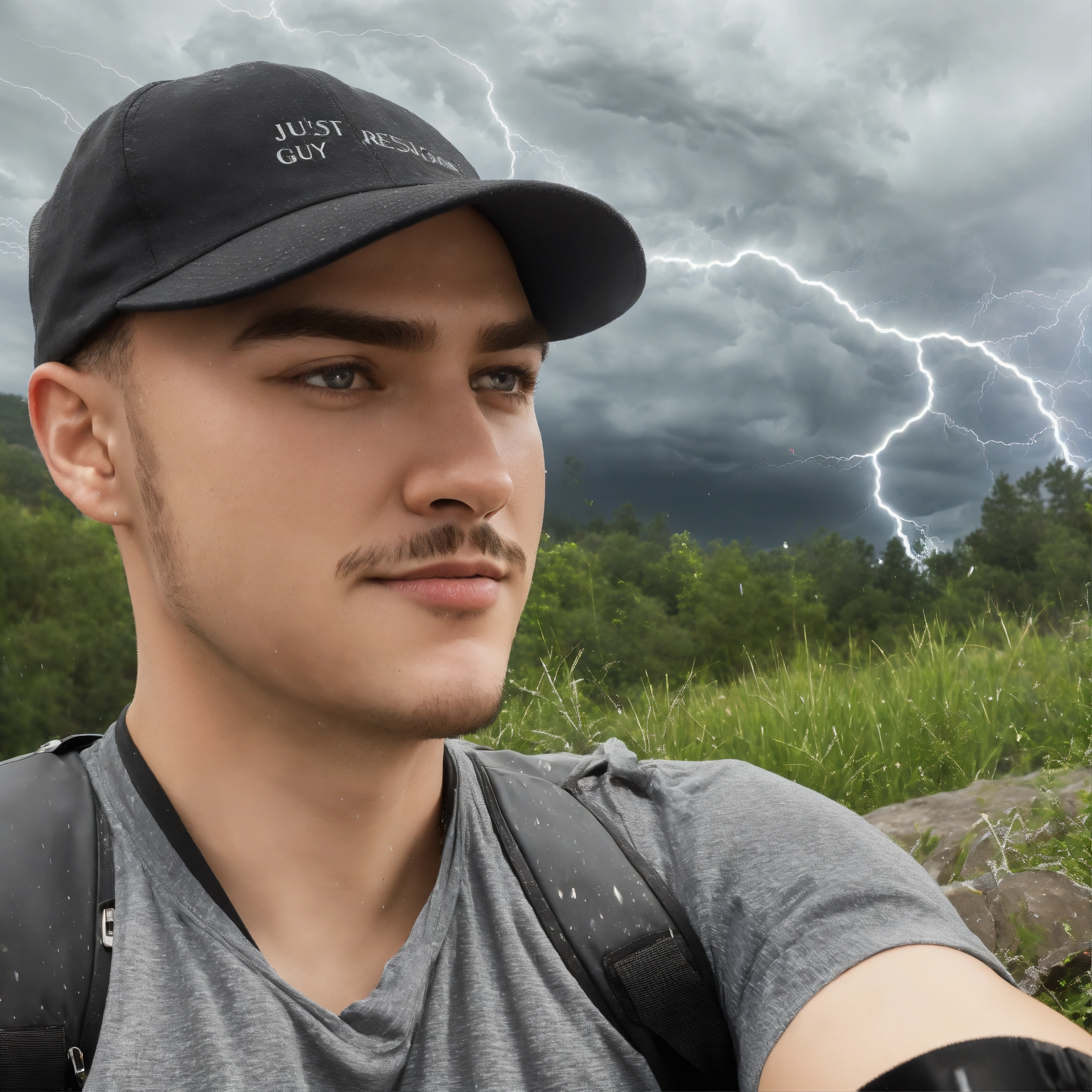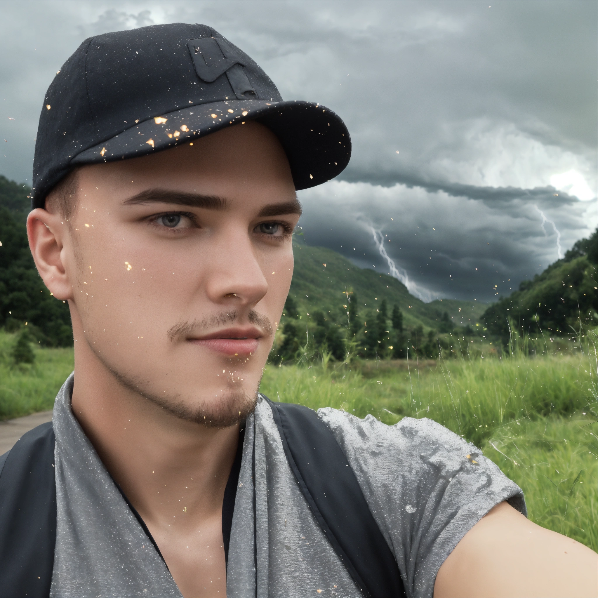 Remove any mention of all these resolutions "upscale", "4k" add this resolution instead "crystal clear" (just once). reply with just the updated text. text thunderstorm, guy, masculine