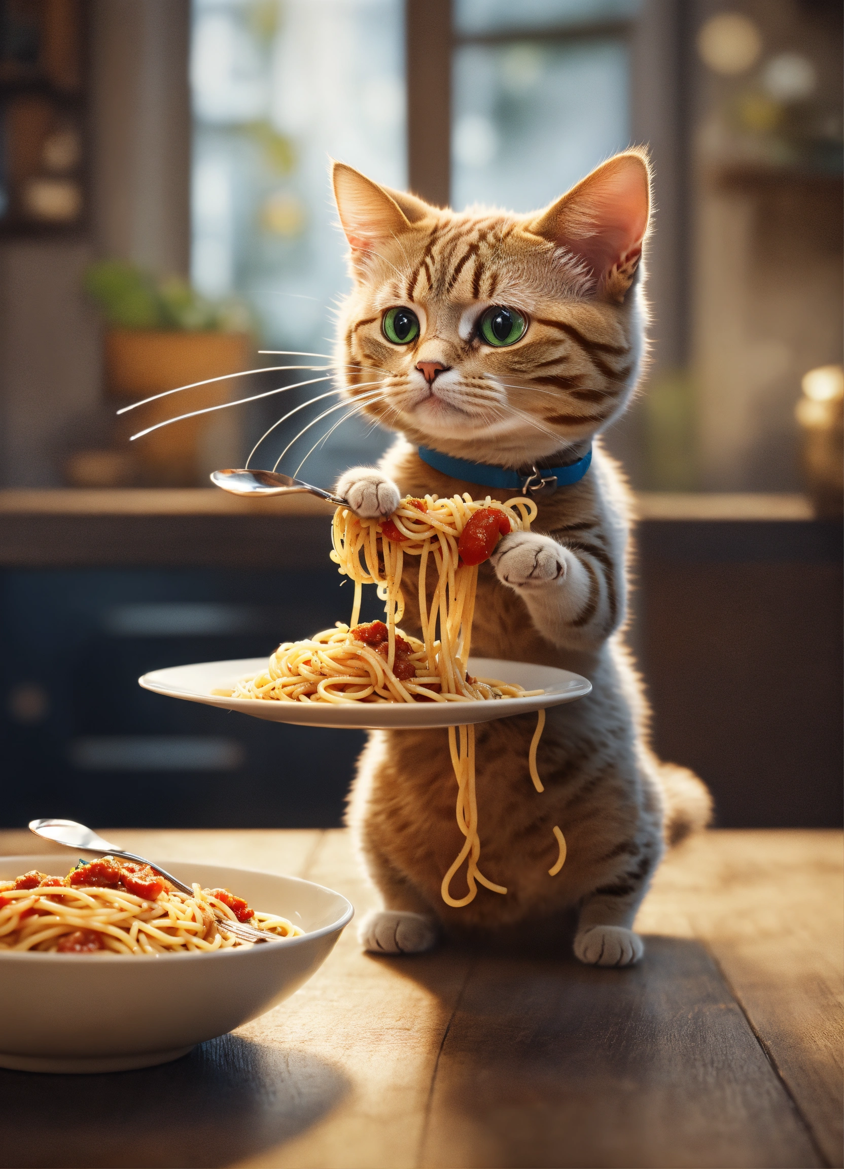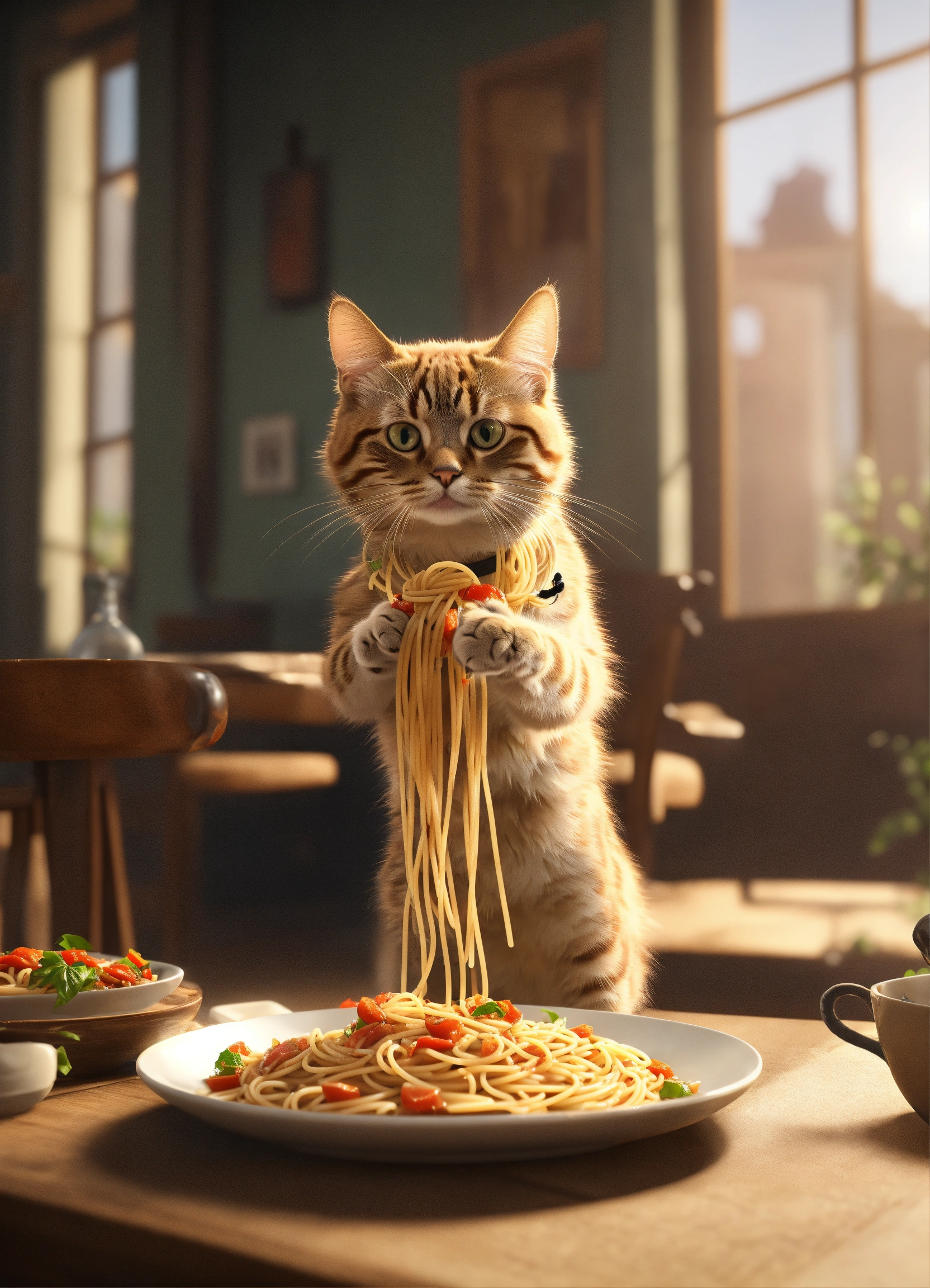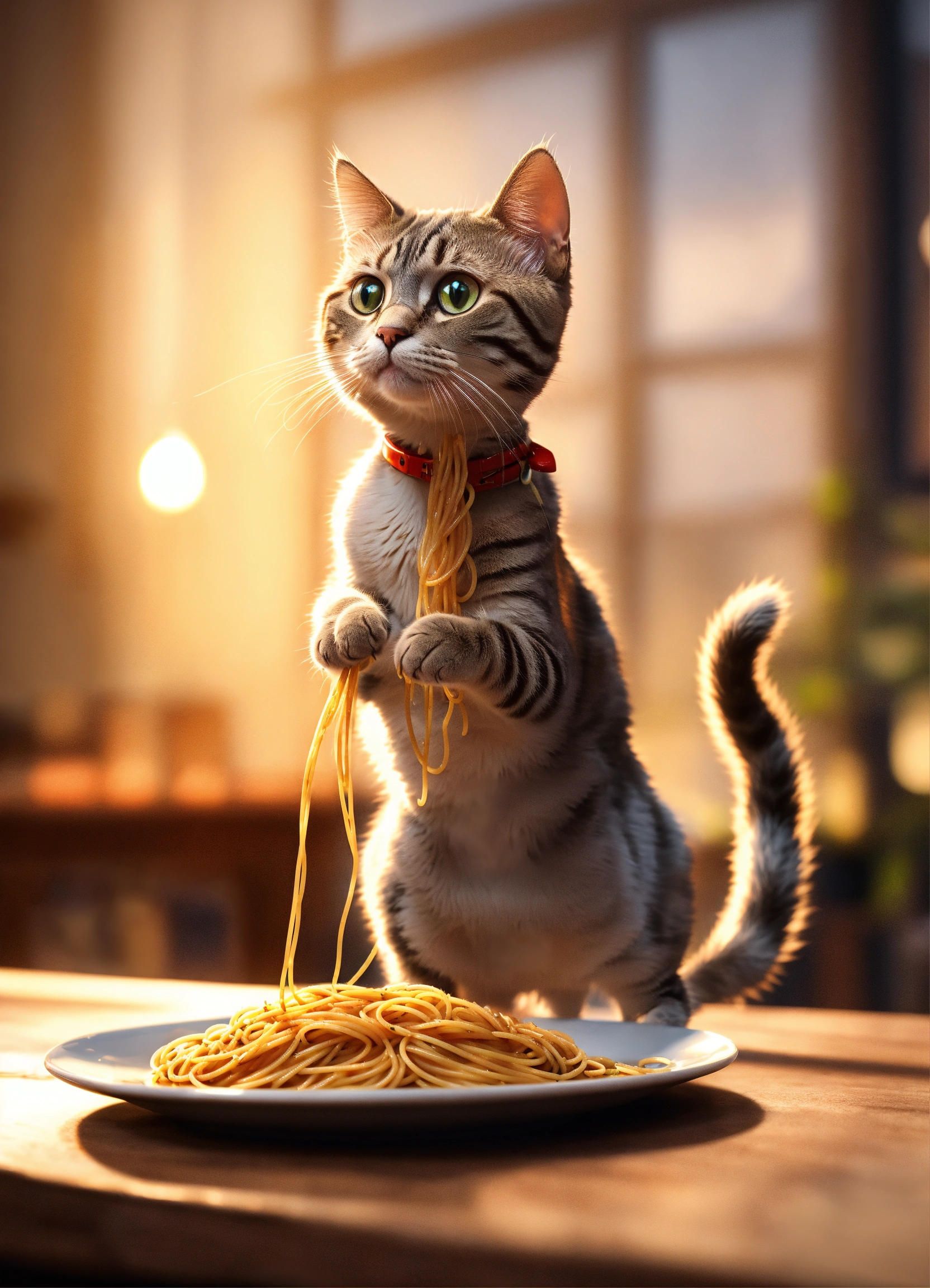 A cat standing on 2 legs