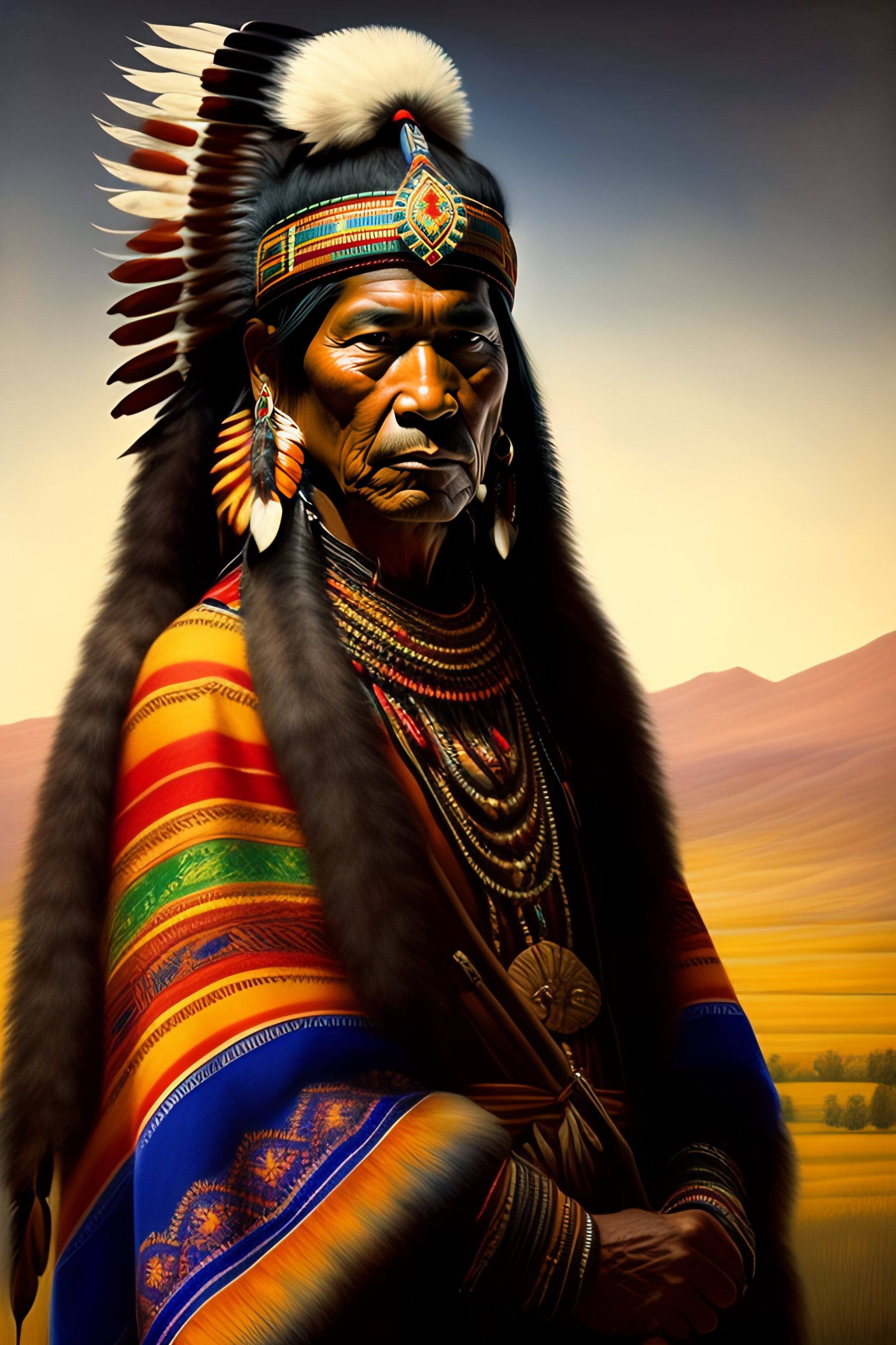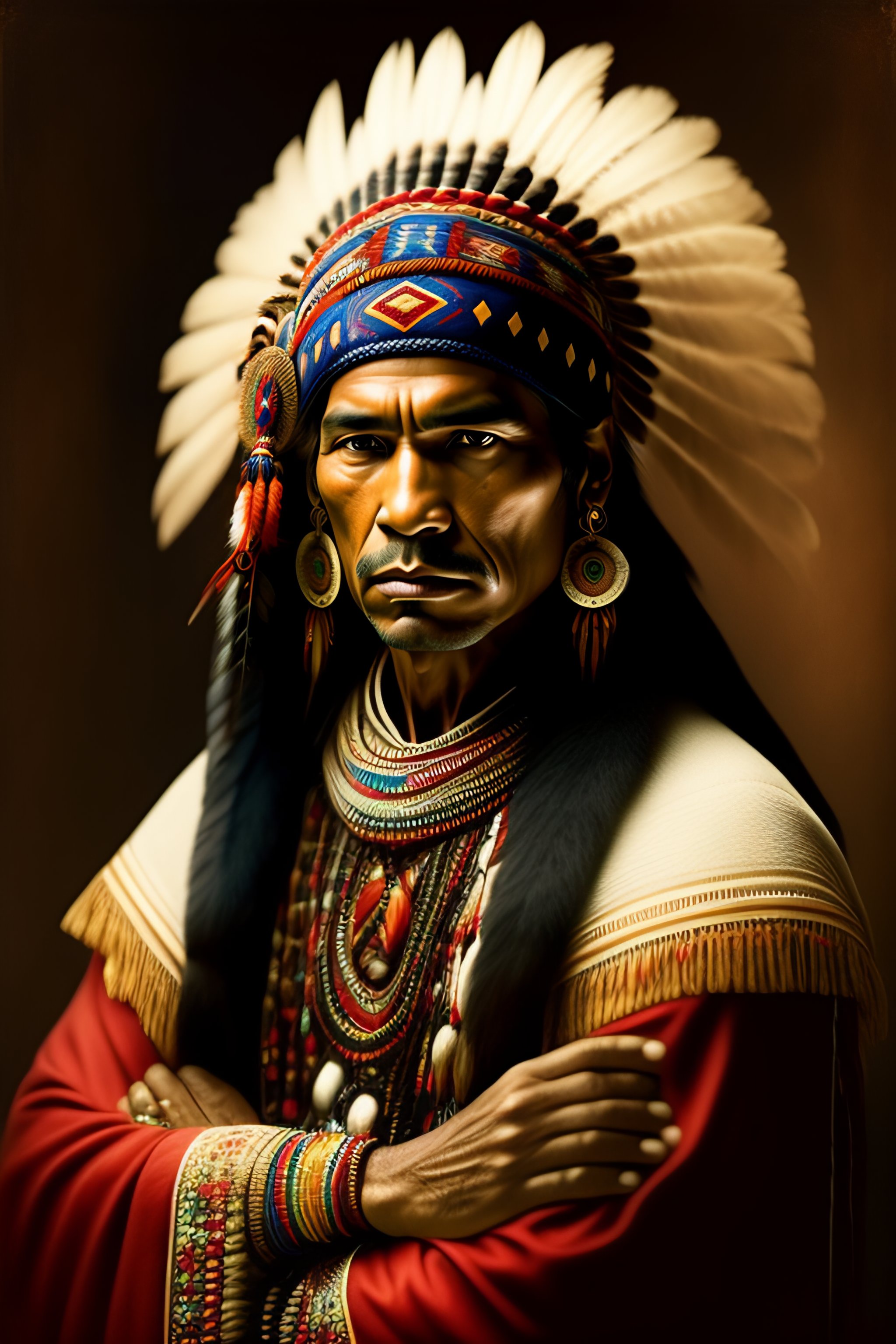 Native american in a rembrandt style with traditional native american clothing